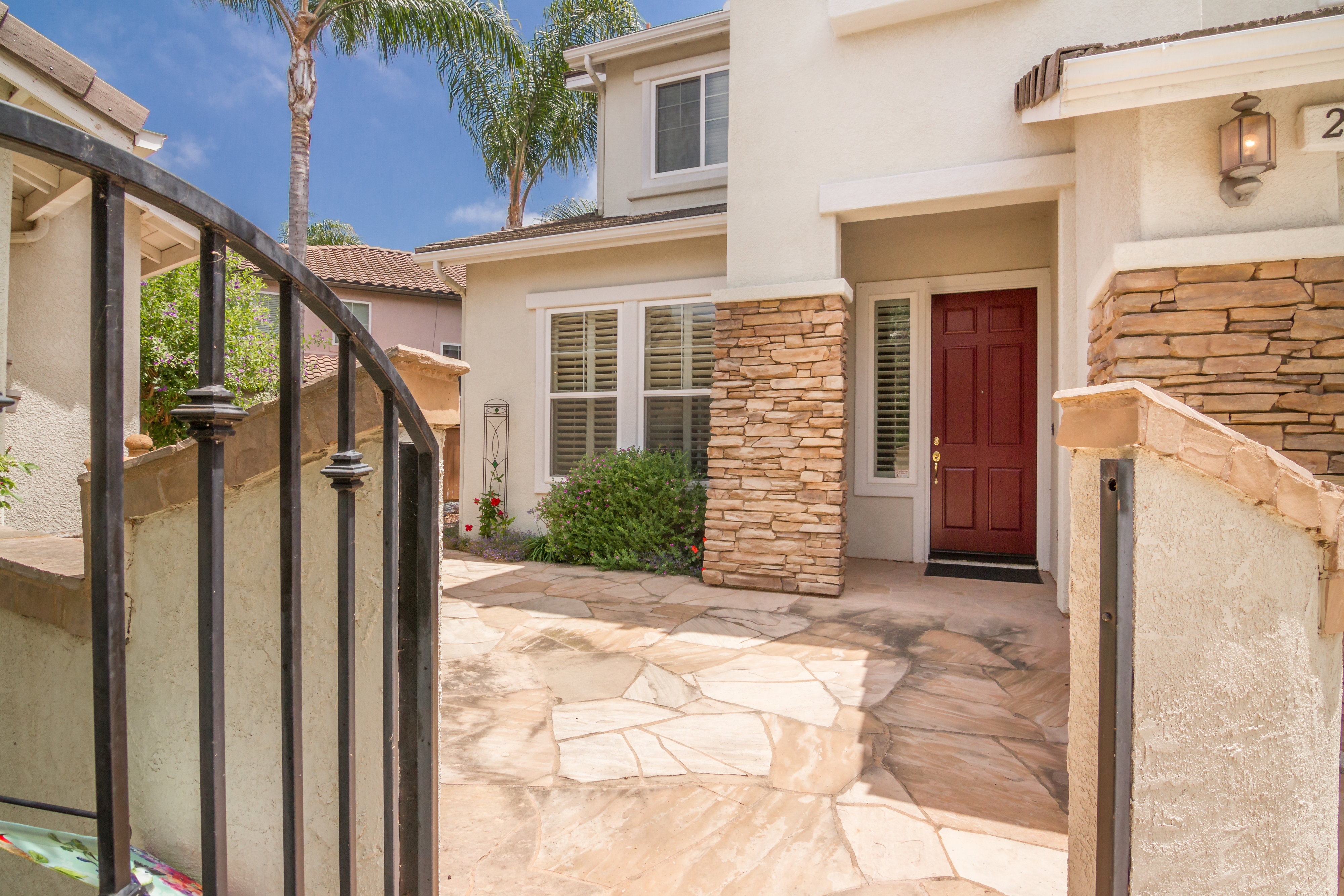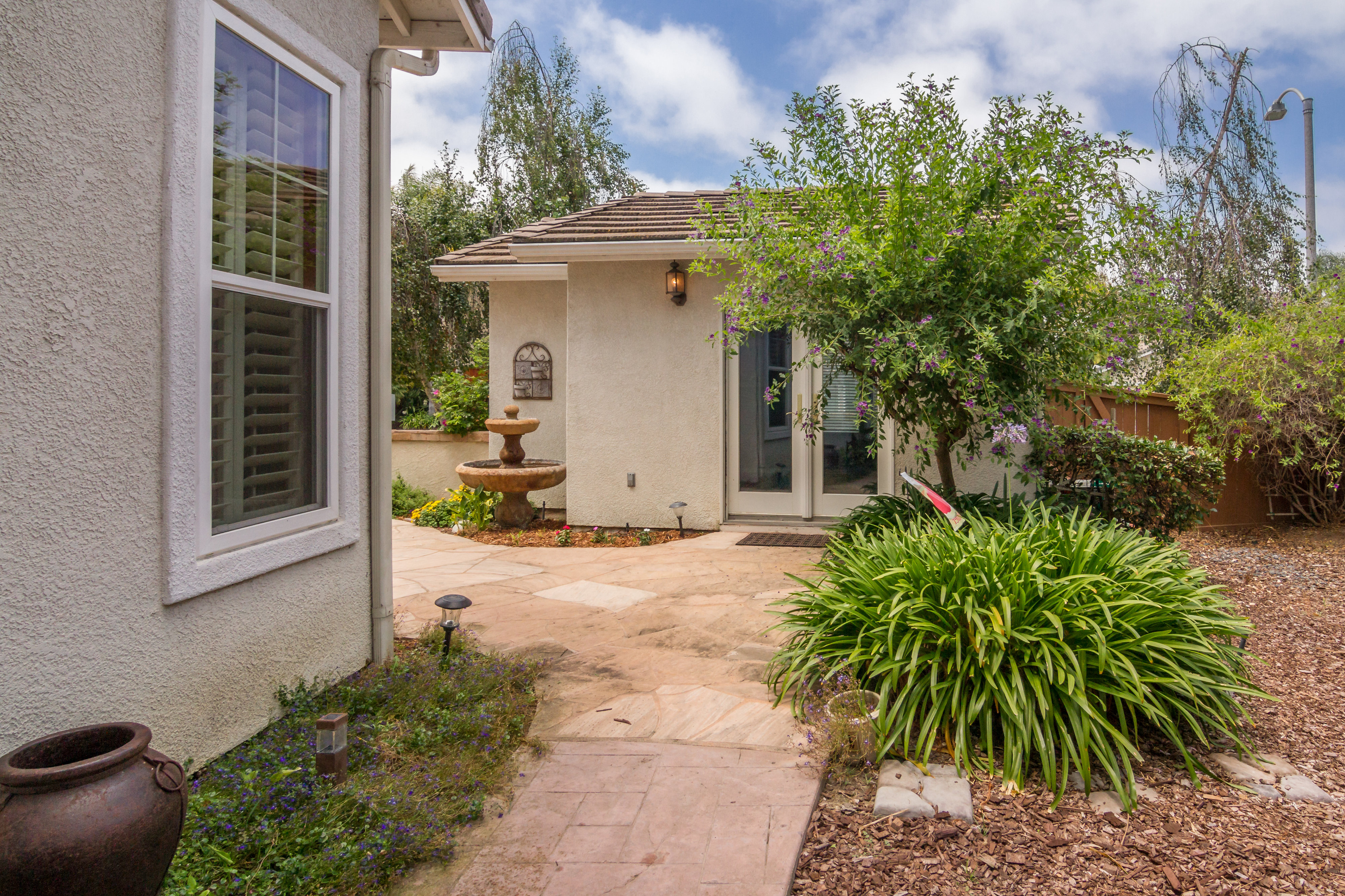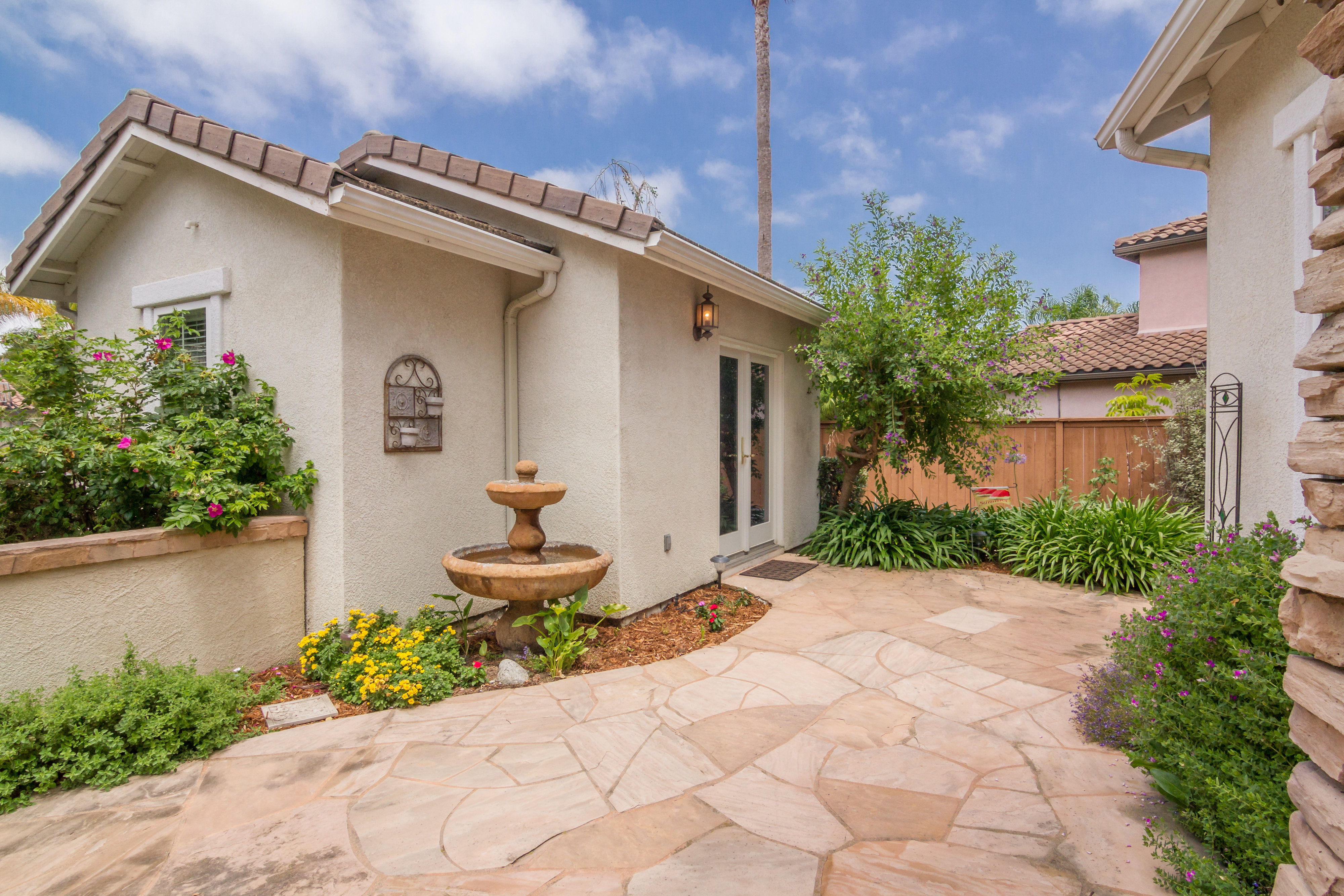 The upstairs master suite is feature-rich including fireplace, relaxation area, double walk-in closets, separate shower, tub and sinks. The upstairs also has a loft area, two more bedrooms and large laundry room including a sink and plenty of storage. This stunning home is immaculate and turnkey. The experience begins from moment of entry through the welcoming wrought iron gate that opens up to a custom landscaped flagstone courtyard leading to the front door and also the casita. The trickling fountain greets guests and leads them to a peacefully landscaped side yard and lushly landscaped backyard paradise both with patio covers and fruit trees. Equipment: Garage door opener, range/oven, and fountain. Heating: Forced air unit. Association fee includes: Common area maintenance. Market Area: Coastal north. Roofing: Tile/clay. Unit location: Detached. Sewer: Sewer connection. Water: Meter on property.