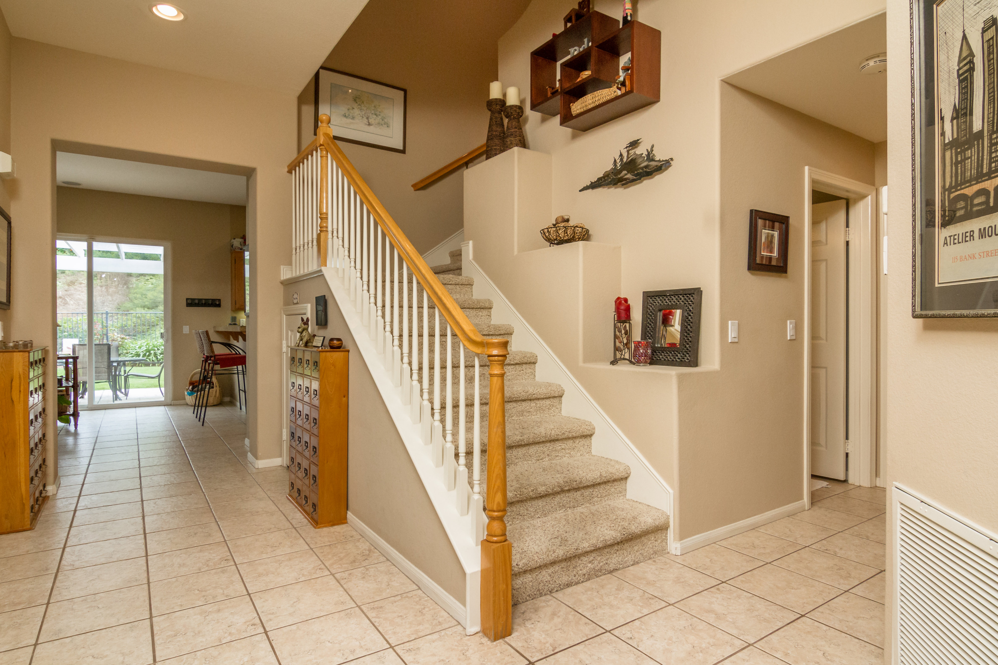 COASTAL zip code of 92008 in the highly desirable Canterbury community. No detail overlooked in this Carlsbad beauty. The generously sized gourmet eat-in kitchen comes complete with maple cabinets, granite tile counters, walk-in pantry, large center island and breakfast bar perfect for the master entertainer. The kitchen smoothly flows into the great room that is tastefully appointed with a fireplace, entertainment nook and ceiling fan in this open concept home. There is a downstairs living room, dining room, bedroom and bathroom, too.