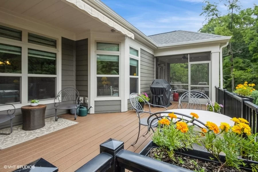 Welcome to the popular 55+ maintenance-free Epcon community of Kinnamon Park. This home sits on one of the best locations in the area. Enjoy the tranquility of owning a private, wooded condominium home nestled in at the end of a cul-de-sac. The open concept layout exudes an abundance of natural light. The upscale kitchen includes a center island, farm sink, quartz counters and stainless steel appliances. The living room has built-ins with granite counters and an inviting fireplace. There’s even a bonus suite. The primary suite (with custom closet) opens to a screened porch surrounded by nature. The porch flows effortlessly through to the private courtyard featuring Trex decking, retractable awning and view of the custom hardscape. Imagine the peacefulness of a beautiful water feature complete with 5 waterfalls! Too many upgrades to list. Community amenities include clubhouse, exercise room, pool, pickleball and bocce ball courts. Convenient to I-77, medical facilities and shopping.