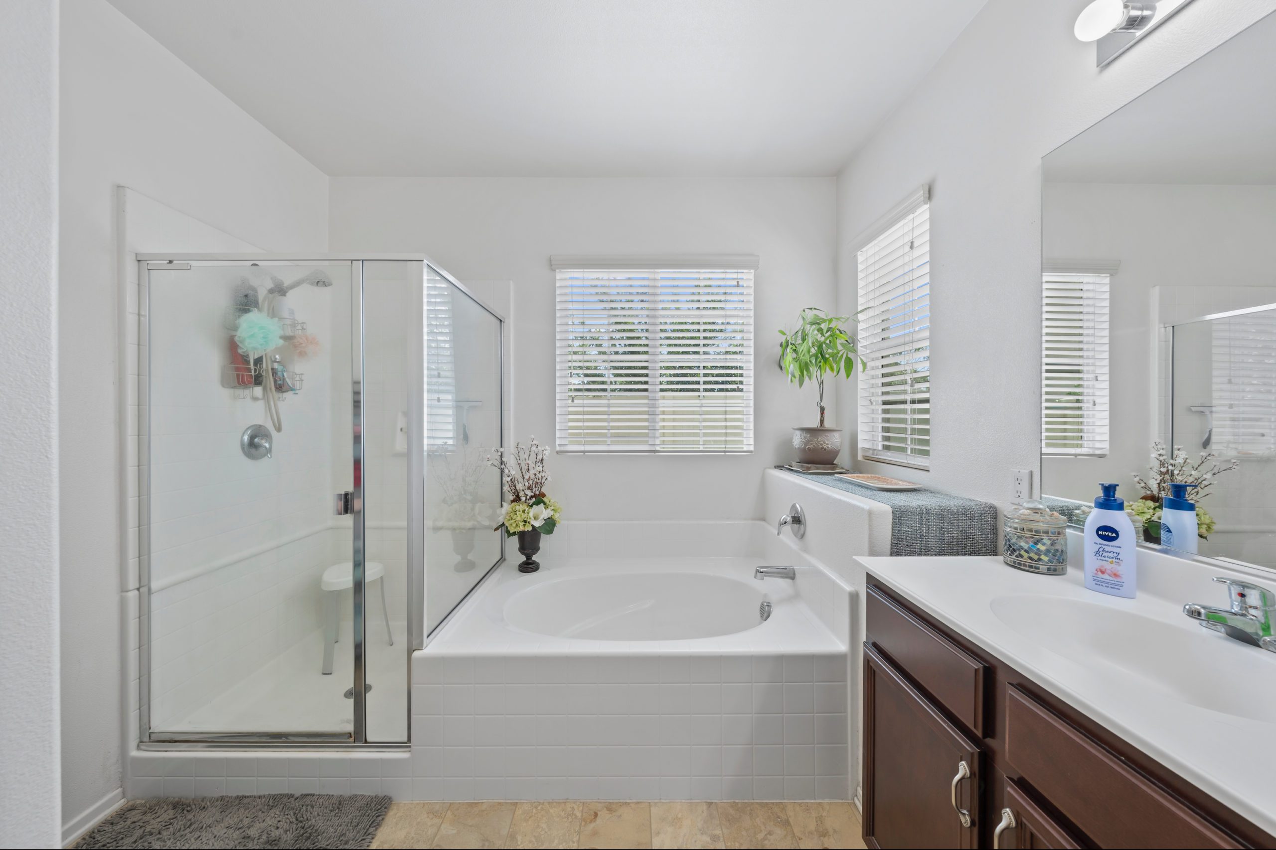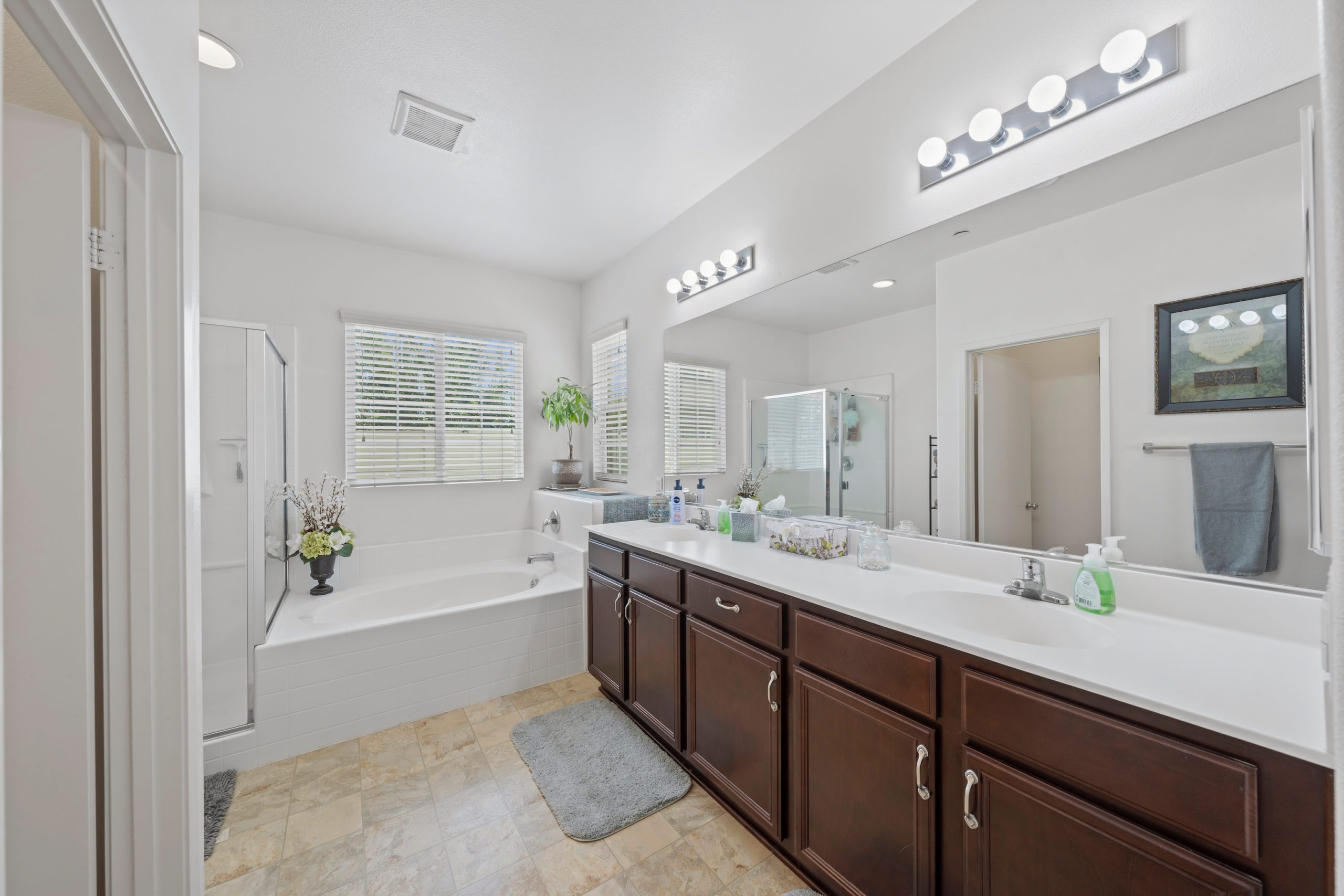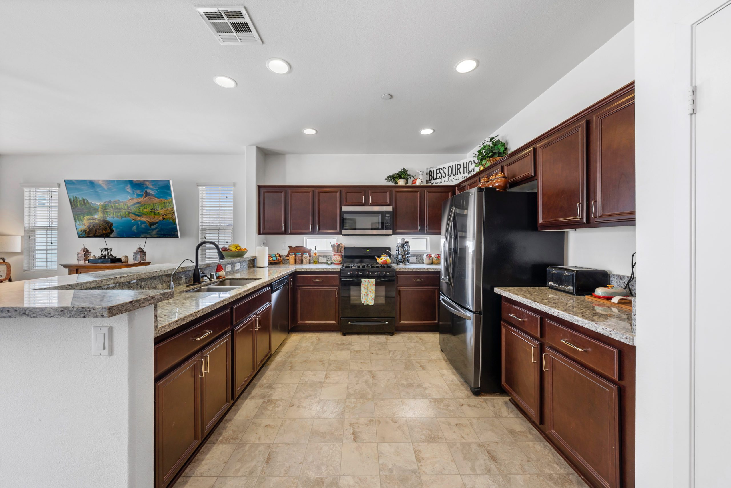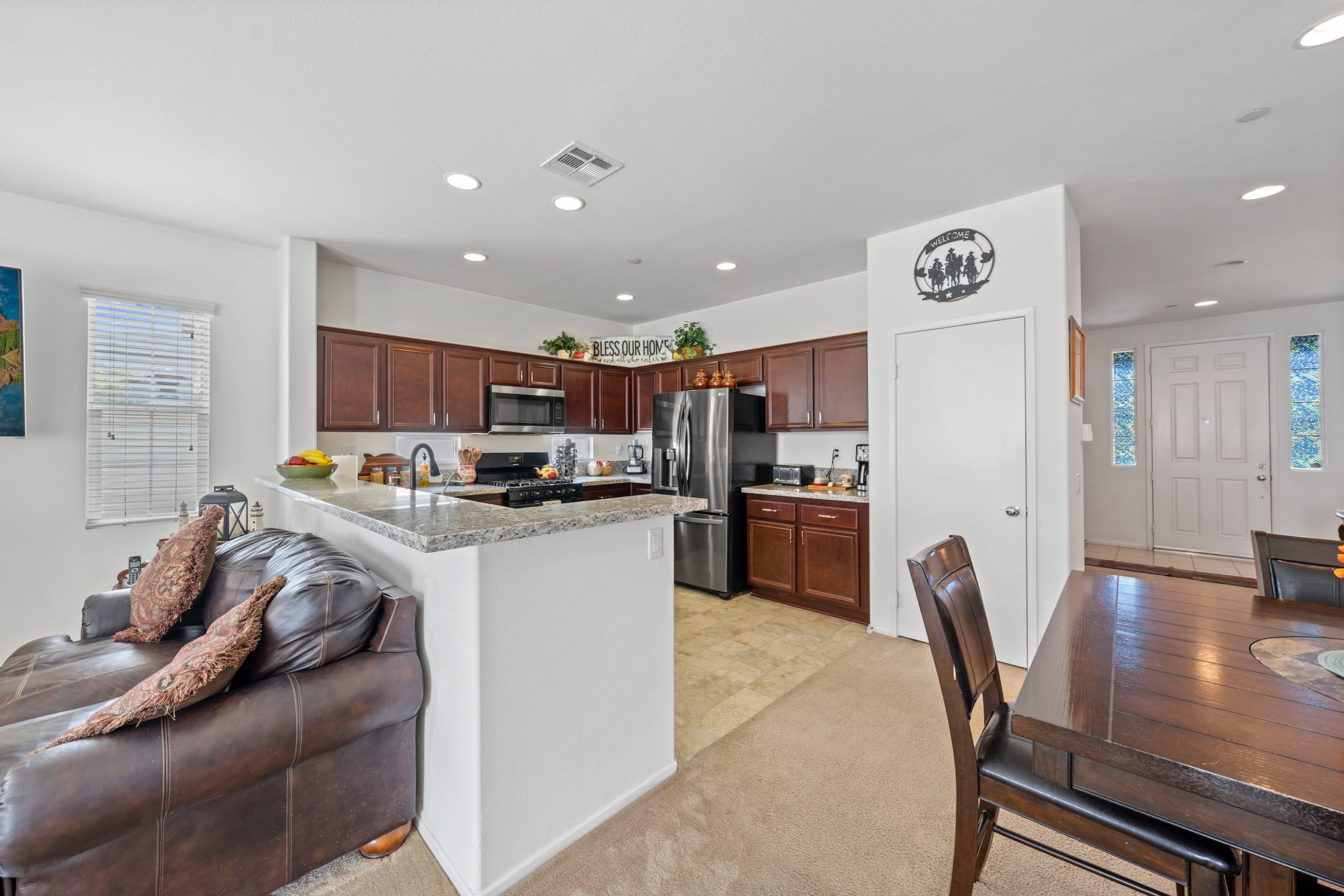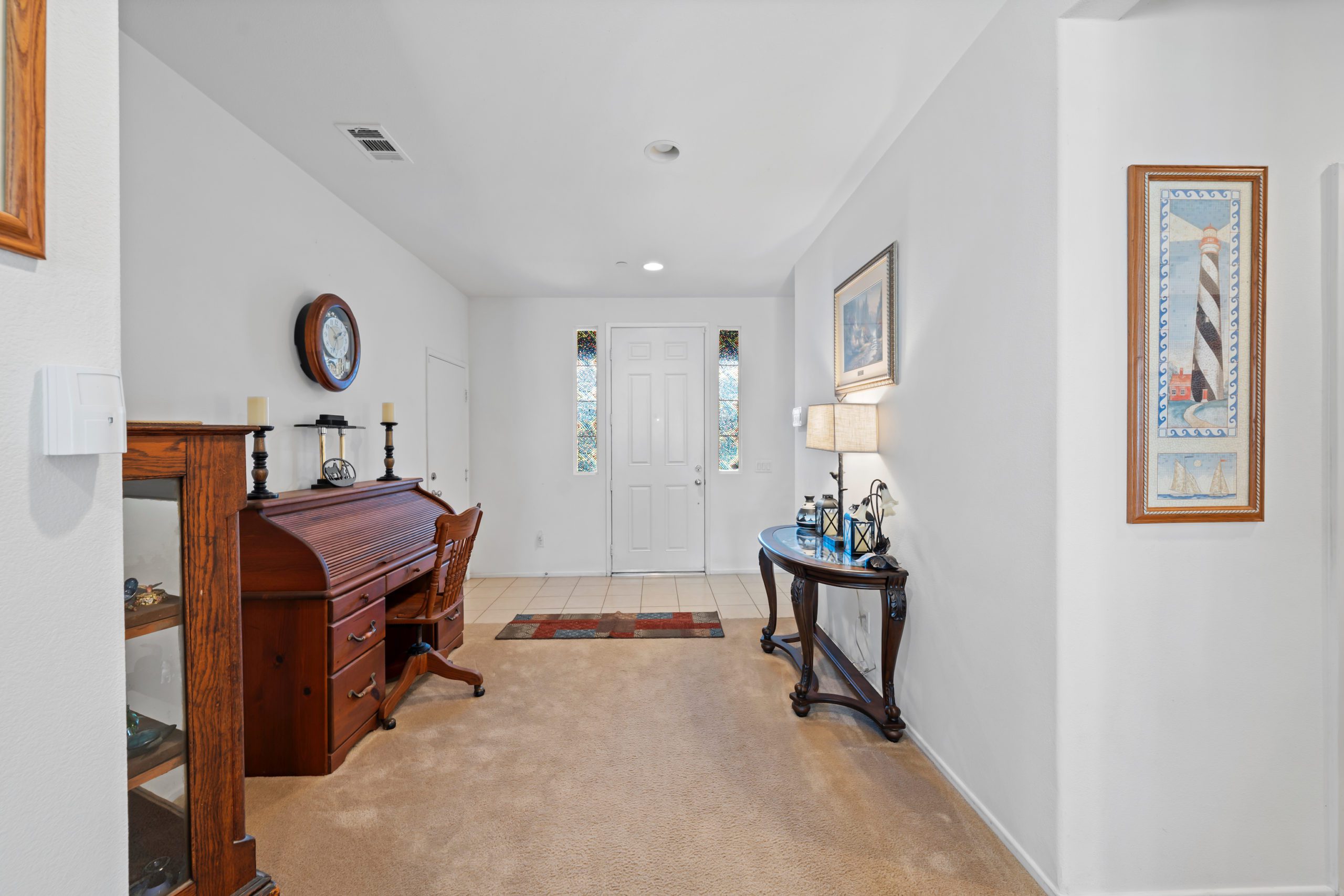 Welcome home! This beautiful four bedroom, two-bathroom, single story home features a beautiful mountainside view in the San Jacinto Valley and drought resistant landscaping. The open layout is perfect for entertaining. An optional use office may be used for extra living space, office or even a fifth bedroom. The kitchen features granite countertops, and stainless-steel appliances. From the hallway, you will find three spacious bedrooms and a primary suite that offers a spacious walk-in closet, dual vanity sinks, step- in shower and separate soaking tub. The backyard includes a lovely Alumawood patio cover with market lights, perfect for those summer nights! This home also features double panel windows, a water purification system and water softener. Located in a quiet street in a popular community with No HOA. Close to shopping and entertainment, this home wonāt last! Come and take a look.