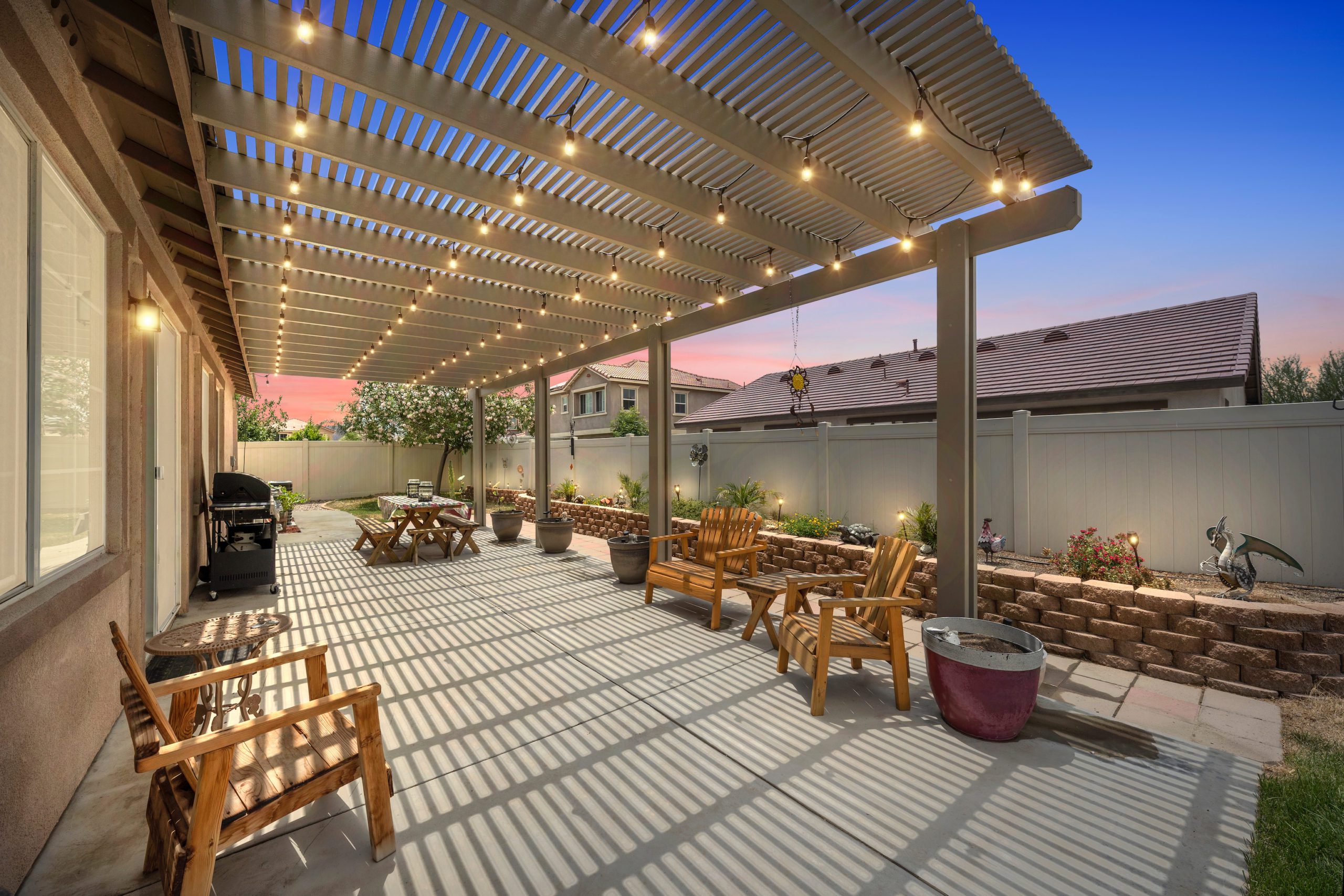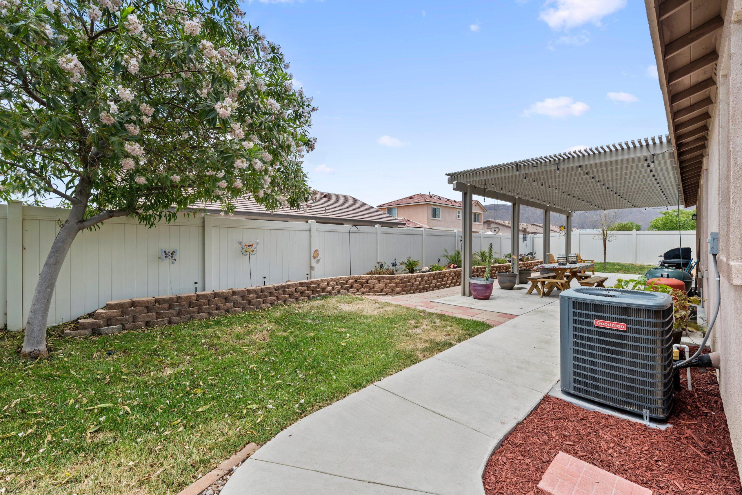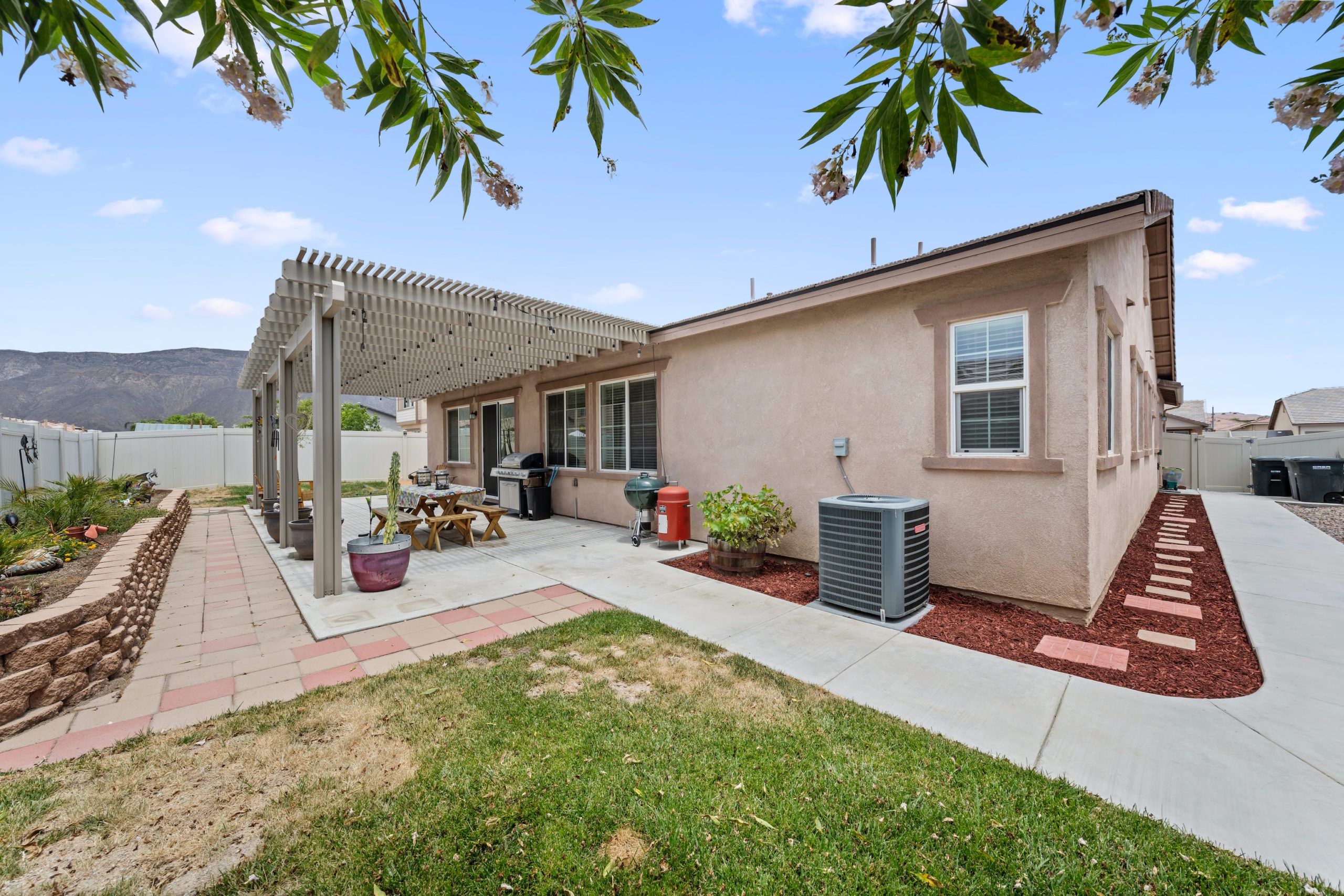 Welcome home! This beautiful four bedroom, two-bathroom, single story home features a beautiful mountainside view in the San Jacinto Valley and drought resistant landscaping. The open layout is perfect for entertaining. An optional use office may be used for extra living space, office or even a fifth bedroom. The kitchen features granite countertops, and stainless-steel appliances. From the hallway, you will find three spacious bedrooms and a primary suite that offers a spacious walk-in closet, dual vanity sinks, step- in shower and separate soaking tub. The backyard includes a lovely Alumawood patio cover with market lights, perfect for those summer nights! This home also features double panel windows, a water purification system and water softener. Located in a quiet street in a popular community with No HOA. Close to shopping and entertainment, this home wonāt last! Come and take a look.Welcome home! This beautiful four bedroom, two-bathroom, single story home features a beautiful mountainside view in the San Jacinto Valley and drought resistant landscaping.