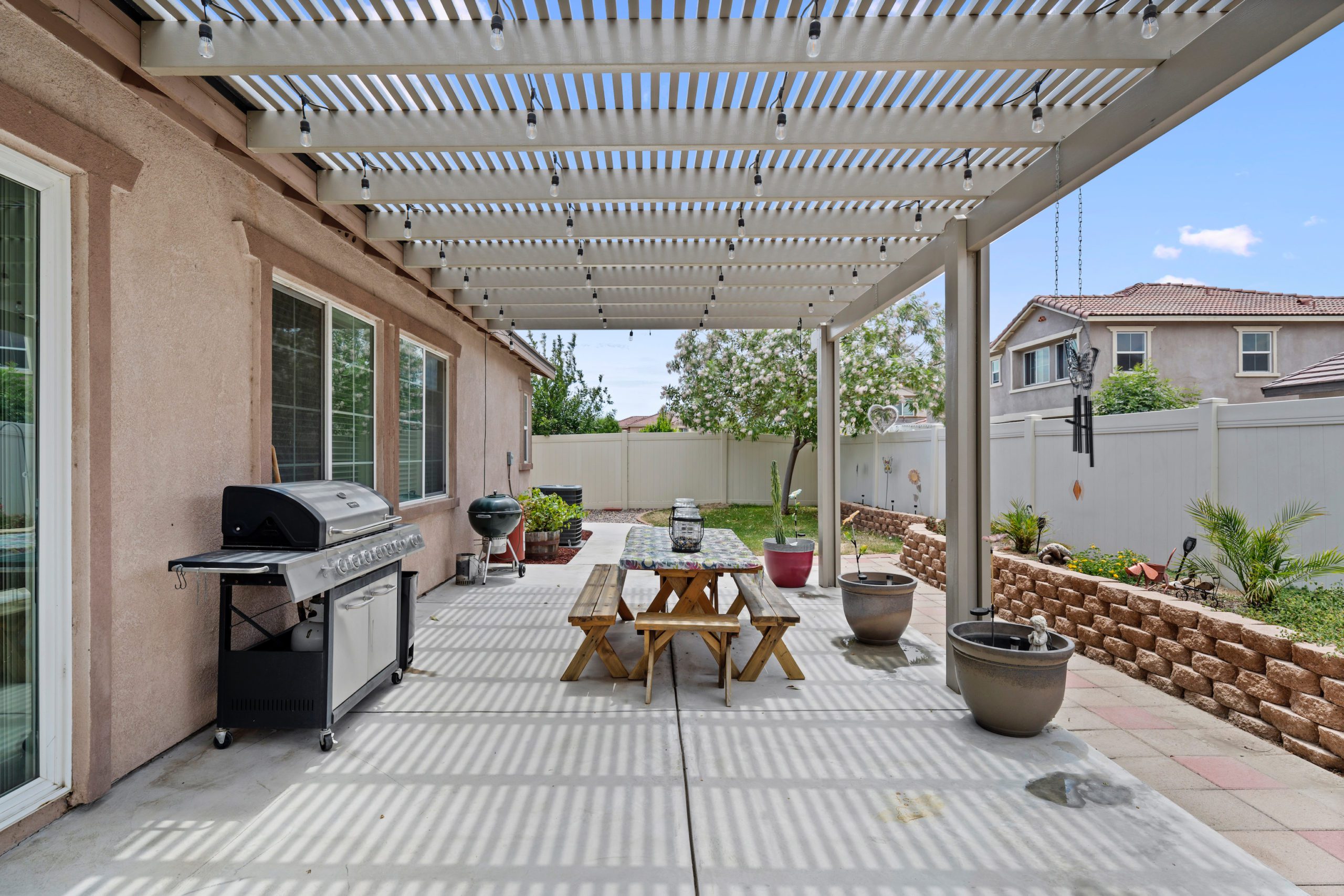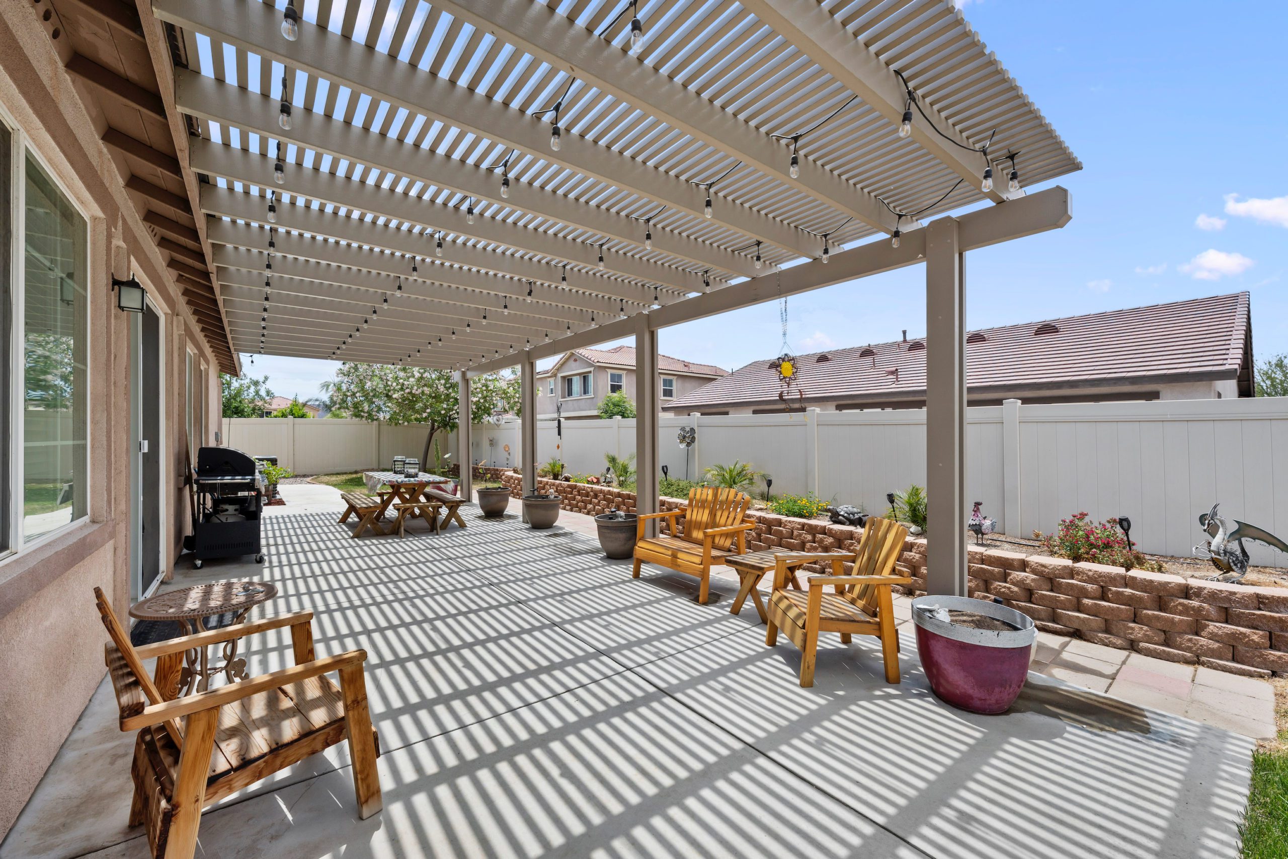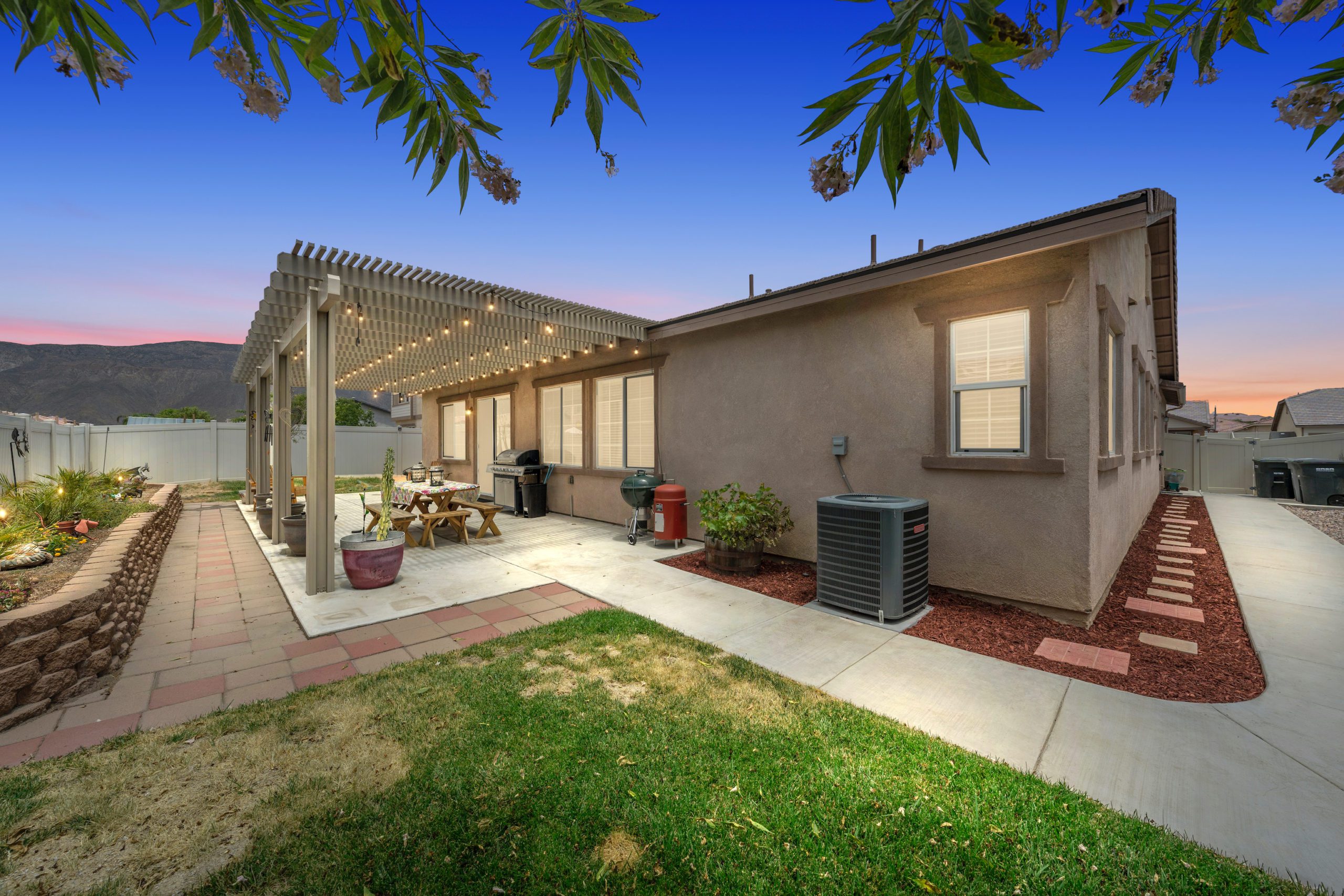 Welcome home! This beautiful four bedroom, two-bathroom, single story home features a beautiful mountainside view in the San Jacinto Valley and drought resistant landscaping. The open layout is perfect for entertaining. An optional use office may be used for extra living space, office or even a fifth bedroom. The kitchen features granite countertops, and stainless-steel appliances. From the hallway, you will find three spacious bedrooms and a primary suite that offers a spacious walk-in closet, dual vanity sinks, step- in shower and separate soaking tub. The backyard includes a lovely Alumawood patio cover with market lights, perfect for those summer nights! This home also features double panel windows, a water purification system and water softener. Located in a quiet street in a popular community with No HOA. Close to shopping and entertainment, this home wonāt last! Come and take a look.Welcome home! This beautiful four bedroom, two-bathroom, single story home features a beautiful mountainside view in the San Jacinto Valley and drought resistant landscaping.