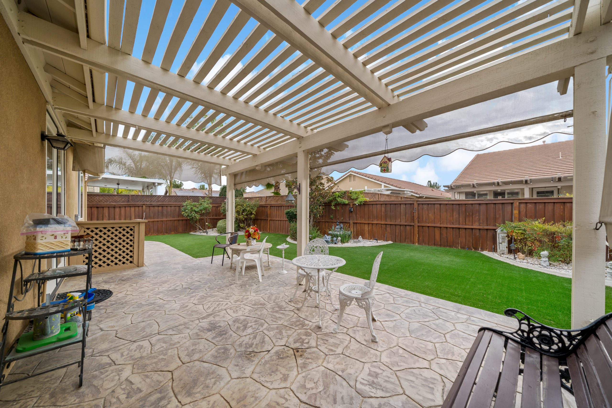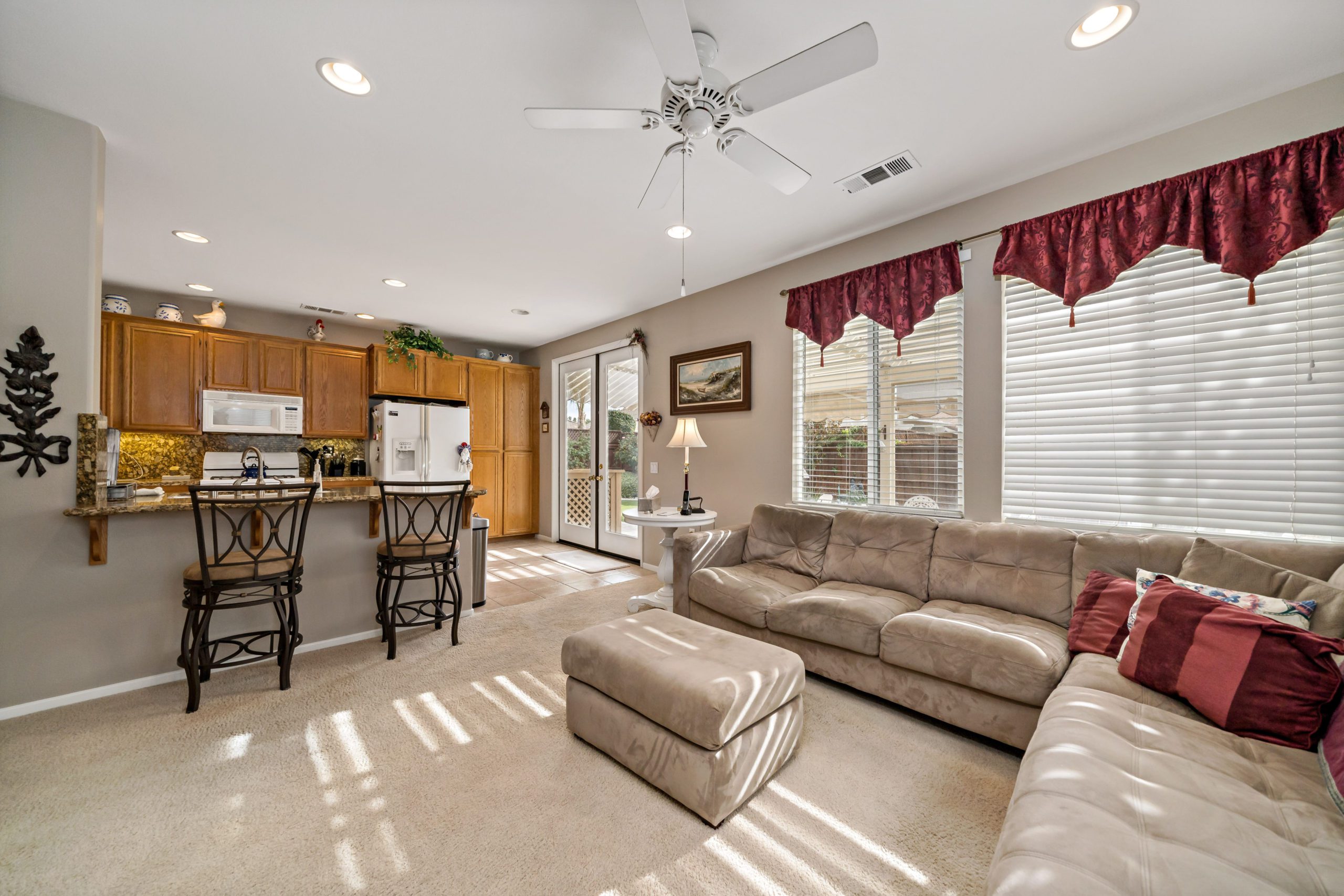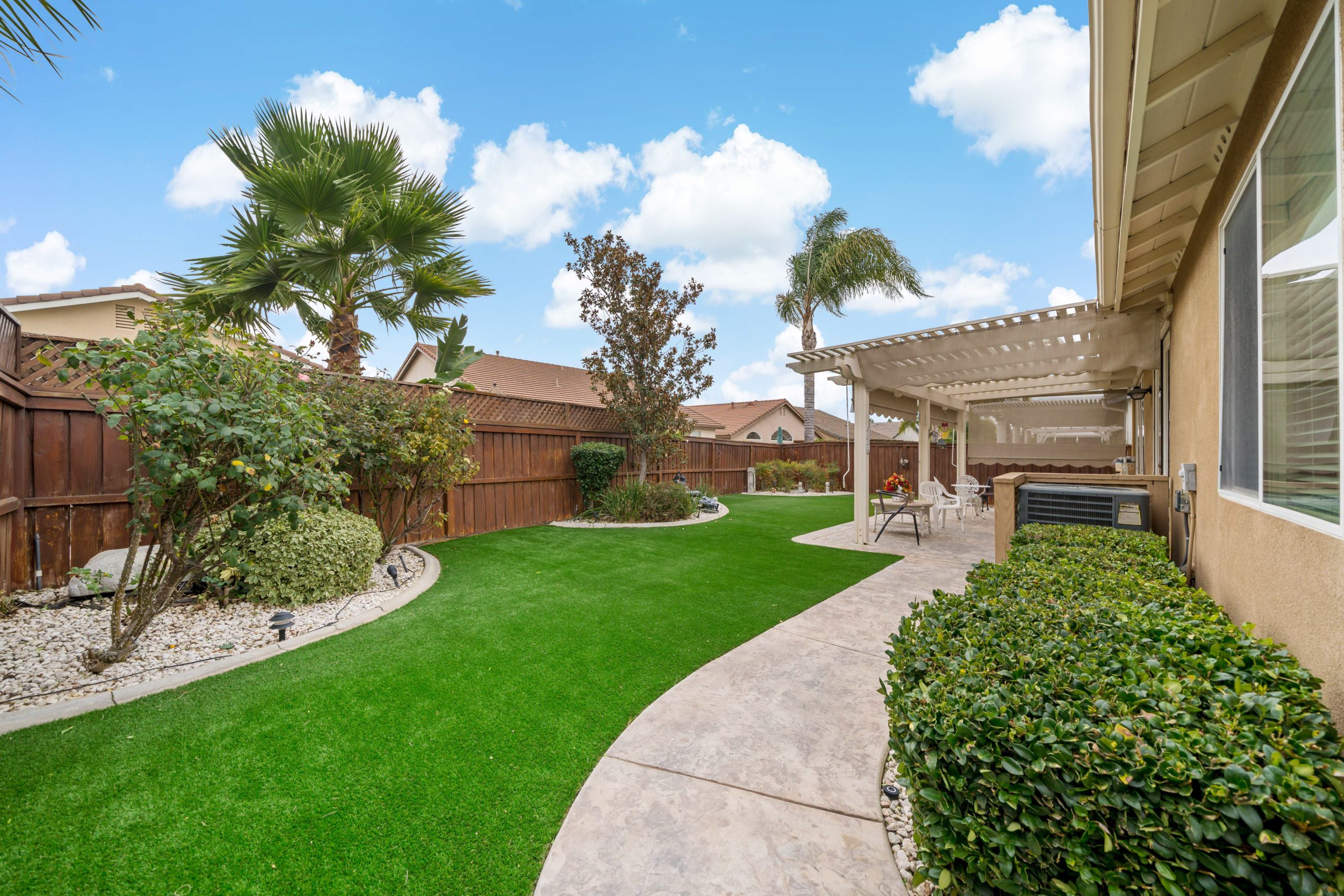 Lovely home in the highly sought after Four Seasons 55+ community. Popular floor plan – Craftsman 2 featuring 2 bedrooms plus sizeable office, 2 baths and sizeable living room. The kitchen opens up to the family room in this smooth flowing open concept beauty. Granite counters in kitchen. The master suite features jetted corner tub, two closets, dual sinks and separate walk-in shower. Freshly painted neutral interior color. This home boasts an amazing low maintenance “sanctuary” type backyard setting complete with patio cover, artificial turf, landscape curbs, stamped concrete and professional landscape design – ideal for rest and relaxation. Shelving in front office. Newer HVAC. The Lodge Clubhouse is a 10-acre recreational facility that includes a wide variety of amenities such as heated pool, spa, picnic areas, beauty salon, tennis, shuffleboard and bocce ball-just to name a few. Low taxes. Call to tour! Lovely home in the highly sought after Four Seasons 55+ community, shuffleboard and bocce ball-just to name a few. Low taxes. Call to tour!