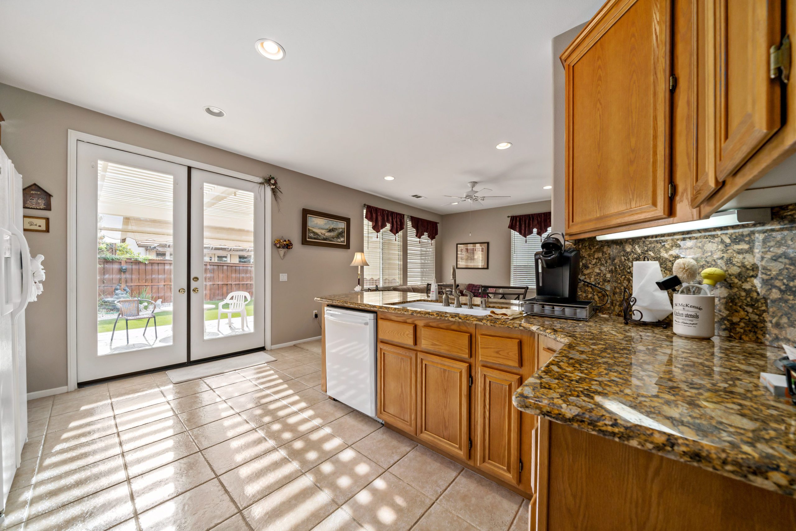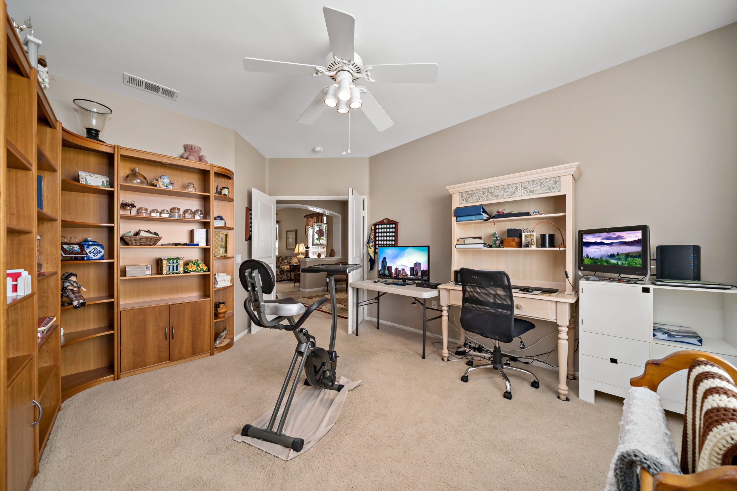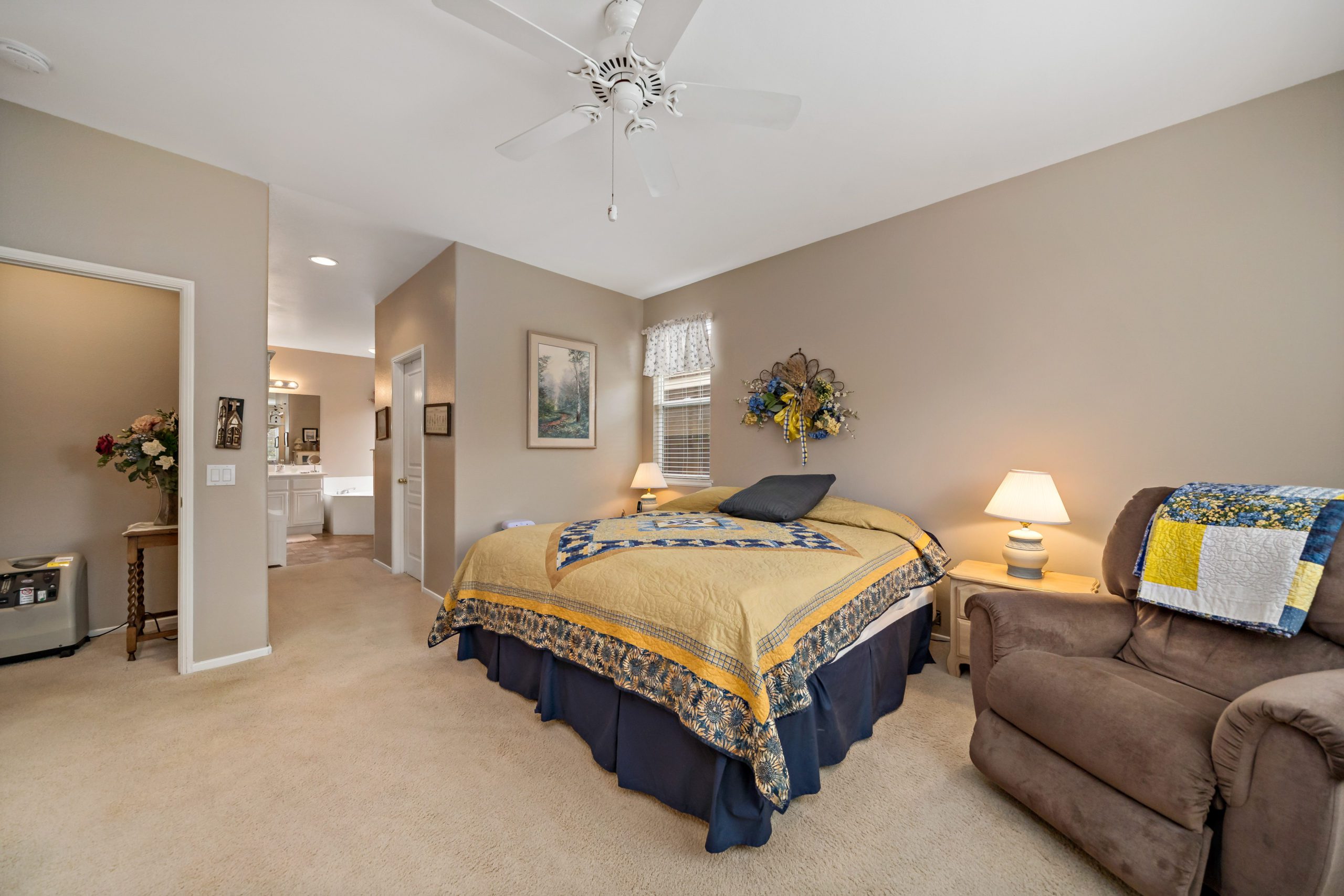 Lovely home in the highly sought after Four Seasons 55+ community. Popular floor plan – Craftsman 2 featuring 2 bedrooms plus sizeable office, 2 baths and sizeable living room. The kitchen opens up to the family room in this smooth flowing open concept beauty. Granite counters in kitchen. The master suite features jetted corner tub, two closets, dual sinks and separate walk-in shower. Freshly painted neutral interior color. This home boasts an amazing low maintenance “sanctuary” type backyard setting complete with patio cover, artificial turf, landscape curbs, stamped concrete and professional landscape design – ideal for rest and relaxation. Shelving in front office. Newer HVAC. The Lodge Clubhouse is a 10-acre recreational facility that includes a wide variety of amenities such as heated pool, spa, picnic areas, beauty salon, tennis, shuffleboard and bocce ball-just to name a few. Low taxes. Call to tour! Lovely home in the highly sought after Four Seasons 55+ community, shuffleboard and bocce ball-just to name a few. Low taxes. Call to tour!