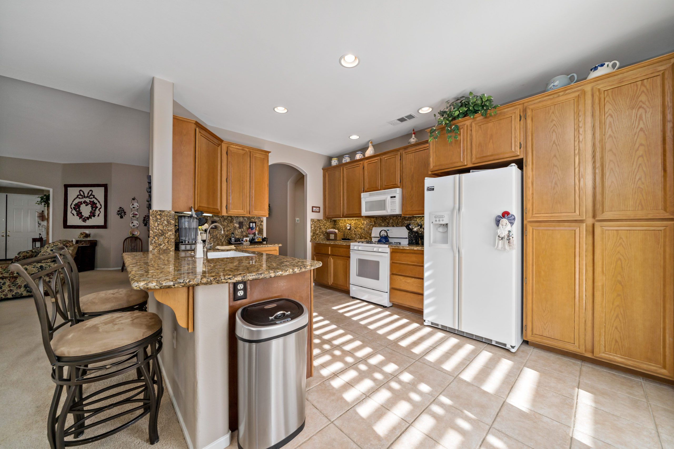 Lovely home in the highly sought after Four Seasons 55+ community. Popular floor plan – Craftsman 2 featuring 2 bedrooms plus sizeable office, 2 baths and sizeable living room. The kitchen opens up to the family room in this smooth flowing open concept beauty. Granite counters in kitchen. The master suite features jetted corner tub, two closets, dual sinks and separate walk-in shower. Freshly painted neutral interior color. This home boasts an amazing low maintenance “sanctuary” type backyard setting complete with patio cover, artificial turf, landscape curbs, stamped concrete and professional landscape design – ideal for rest and relaxation. Shelving in front office. Newer HVAC. The Lodge Clubhouse is a 10-acre recreational facility that includes a wide variety of amenities such as heated pool, spa, picnic areas, beauty salon, tennis, shuffleboard and bocce ball-just to name a few. Low taxes. Call to tour!