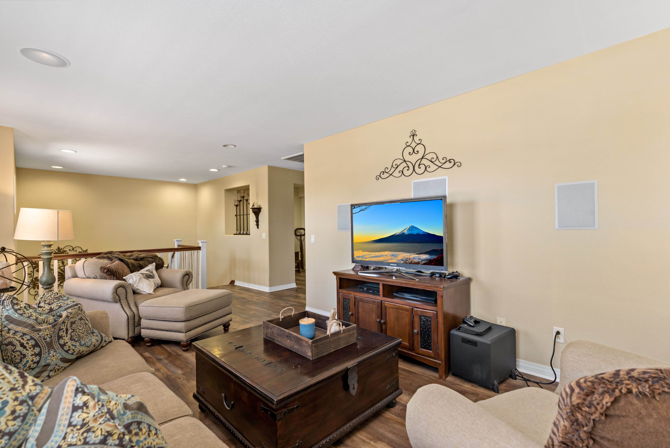 Lovely home situated in the popular Temecula Valdemosa neighborhood. Upon entry into this turnkey home, the high ceilings, tasteful downstairs wood flooring and newer upstairs LVP are likely to impress. This open-concept style flows from living room, dining room (with private french door entry and double sided fireplace) then on through to the great room and eat-in kitchen. The kitchen comes with granite counters, center island and walk-in-pantry. The additional great room fireplace is perfect for enjoying our cool Temecula winter evenings. The downstairs bedroom with full bath is ideal for Next-Gen style living or to accommodate extra guests. There is also another downstairs half-bath. Crown moulding in some rooms. The upstairs has a large loft, two additional bedrooms and a generously sized luxury master suite. The master bath includes a large walk-in closet, linen closet, dual sinks, separate shower and soaking tub.