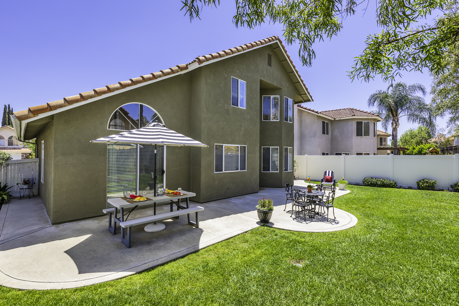 Meticulously maintained Temecula home where pride of ownership exudes! Fresh paint inside and out. Dramatic tall ceiling entry with beautifully appointed white glazed Saltillo tile flooring and new dining room/living room carpet. Lovely fireplace for enjoying the chilly Temecula winter evenings. Eat-in kitchen with nice view of the peaceful backyard that features concrete patio, green grass, sizeable trees and shrub landscaping. The upstairs master suite is generously sized with a welcoming French door entry, bay window, walk-in closet and dual sink vanity along with separate shower and tub. 3 BR/2.5 BA. Approx. 1,970 sq. ft. Temecula schools and walking distance to Chaparral High School. Close and convenient to shopping, restaurants and local wineries. Low taxes and no HOA. This home is ideal for the picky buyer! Call to tour today!
