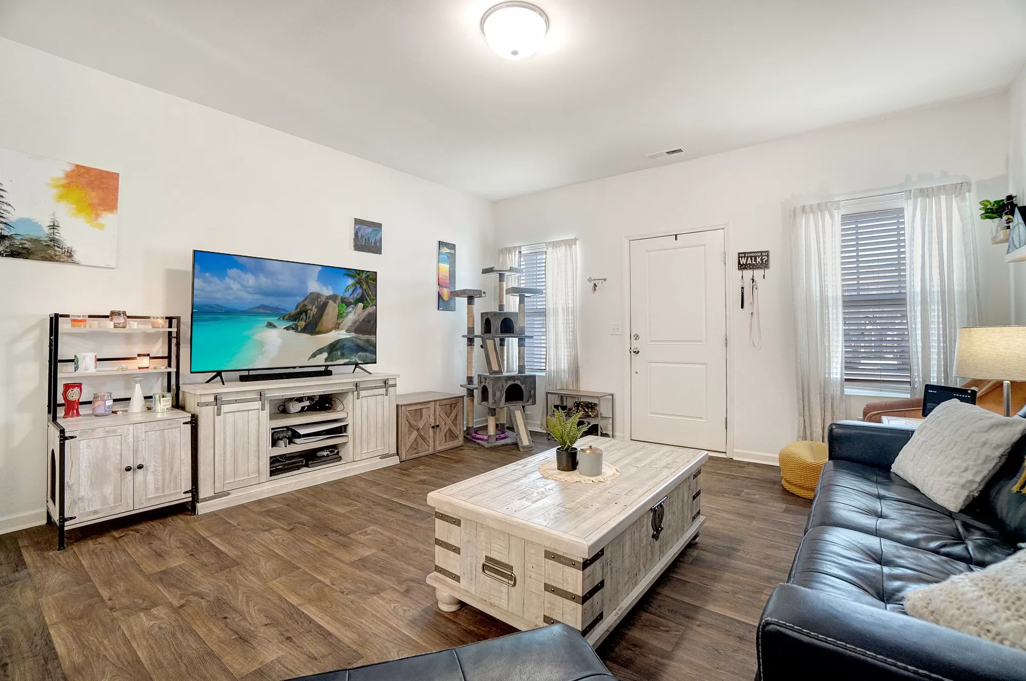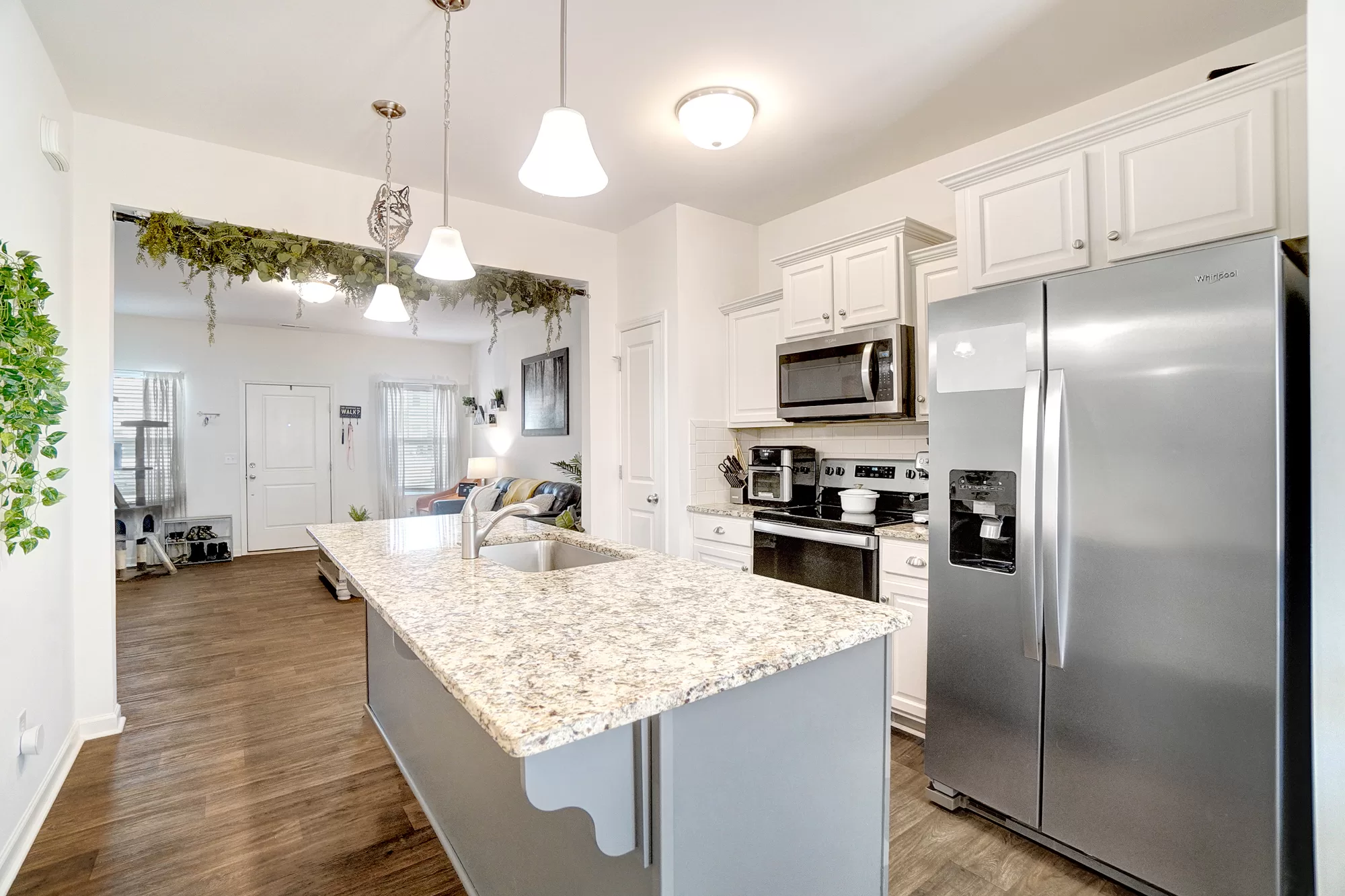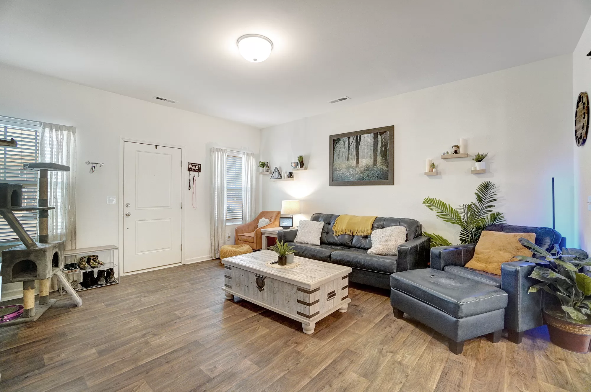 This charming townhome with open concept layout situated in the popular Wyntree community is perfect for modern living. Enjoy the welcoming entry with high ceilings that lead to an upgraded eat-in kitchen featuring a pantry, center island, granite counters and stainless steel appliances. Tastefully appointed luxury vinyl flooring throughout the downstairs. This floor plan offers spacious living creating an inviting space for gatherings and entertaining. Both bedrooms upstairs provide ensuite baths. The primary suite features an attractive cathedral ceiling, walk-in closet and step in shower. Spacious storage off of the back patio. Conveniently situated for easy access to I-485 for Charlotte commuters. Close proximity to Rob Wallace park which proudly boasts peaceful walking trails, a fishing pond, playground, picnic areas, mountain and bike trails. Water, sewer and trash are included in the monthly HOA fee. A must see and affordable opportunity!