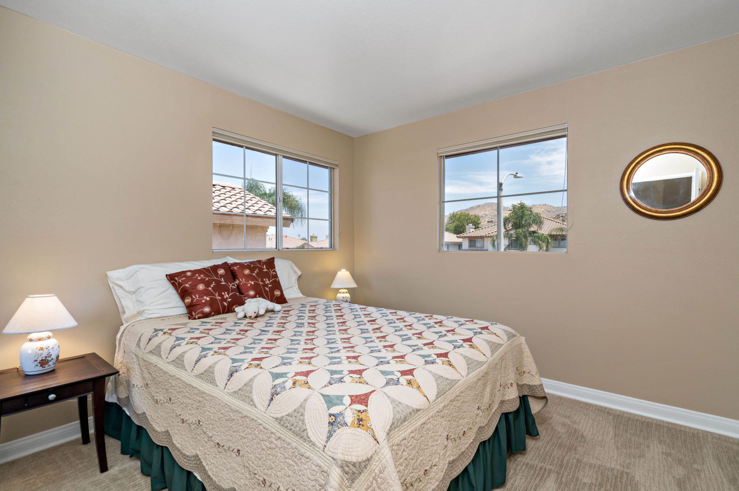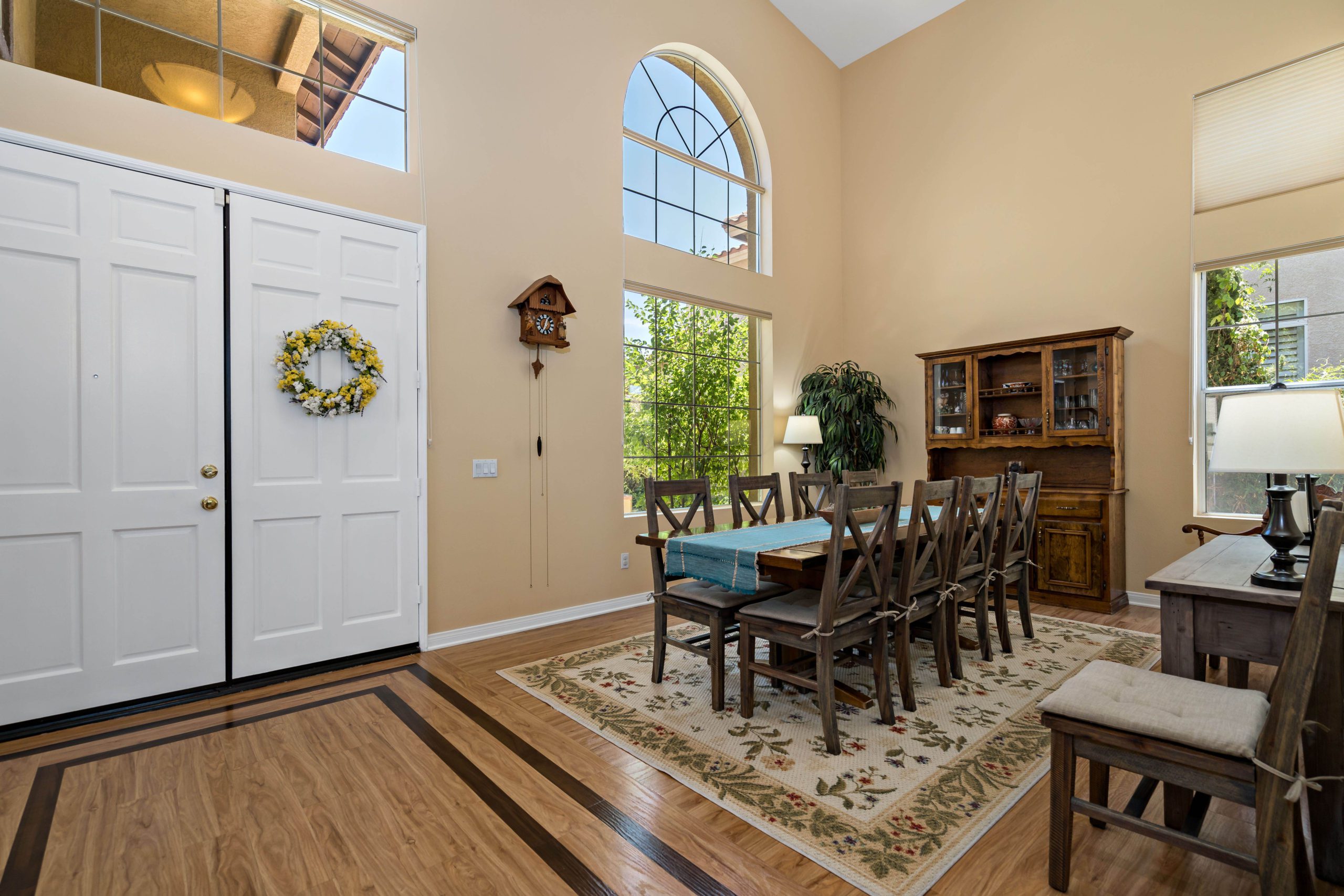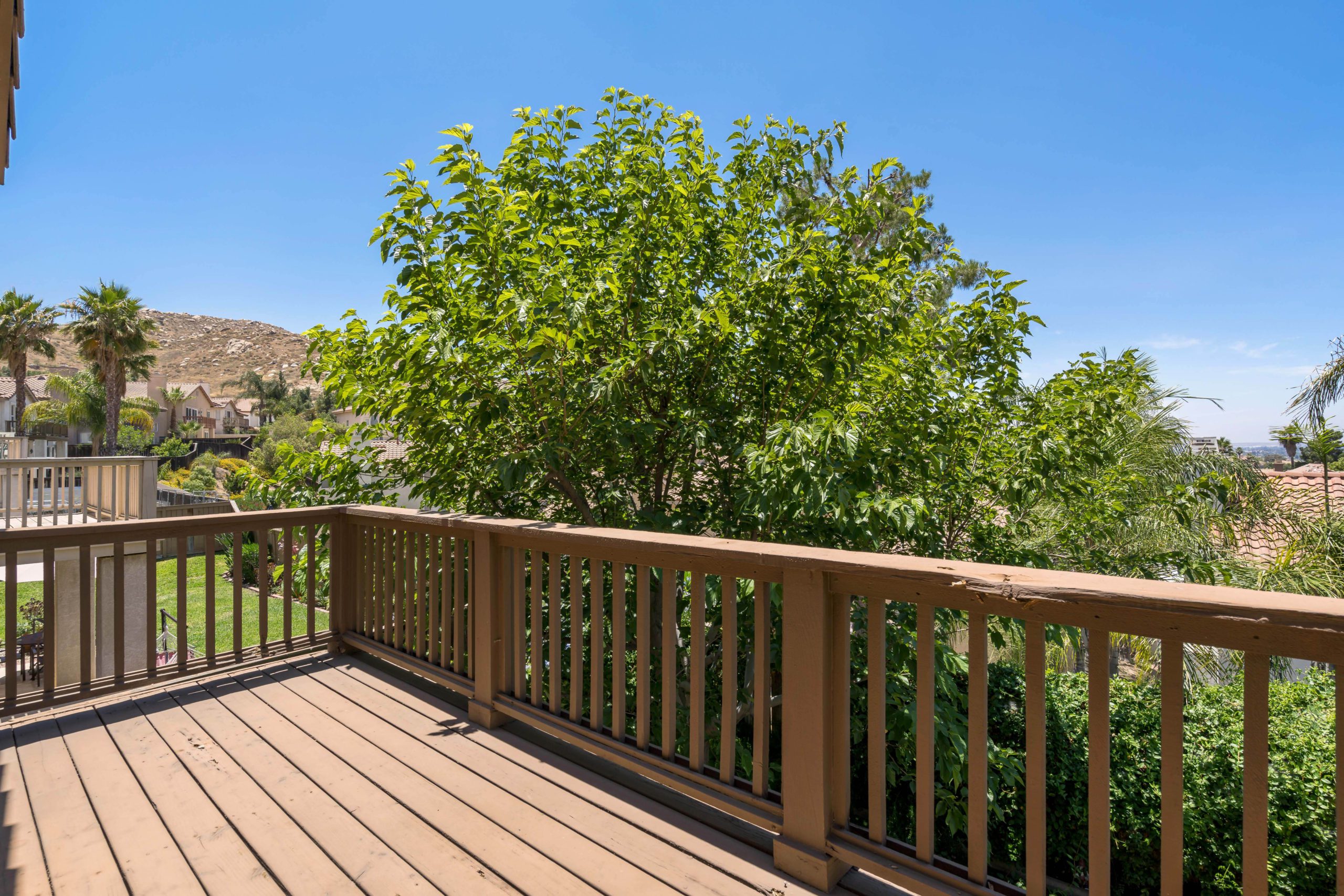 True pride of ownership in this lovely Moreno Valley home that is ready to go! Gorgeous curb appeal with artificial turf, wrought iron gate and welcoming courtyard entry. The front door opens to a 2-story ceiling that lets in plenty of natural light. Beautifully renovated eat-in kitchen complete with granite counters, center island, tile backsplash, white cabinets, can lighting, double ovens and Bosch dishwasher. Separate living and dining rooms. Generously sized master suite with walkout balcony to bask in the beautiful mountain views from all sides of this private and peaceful backyard oasis. All bathrooms recently renovated. The luxurious master bath features a frameless shower, separate soaking tub, dual vanity sinks and walk-in closet. Upgraded textured carpet (extra padding), tile flooring and wide wood looking vinyl plank flooring.
