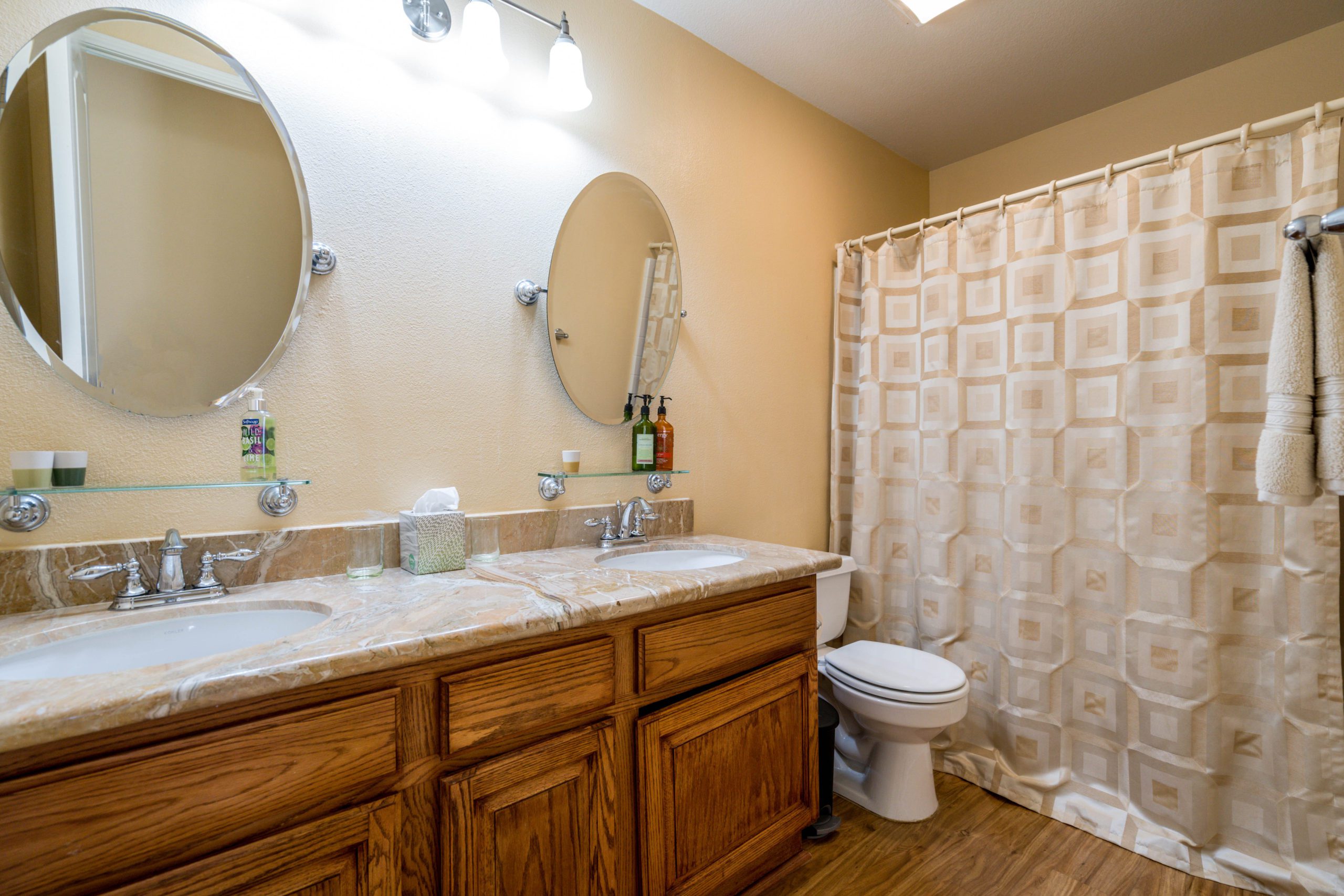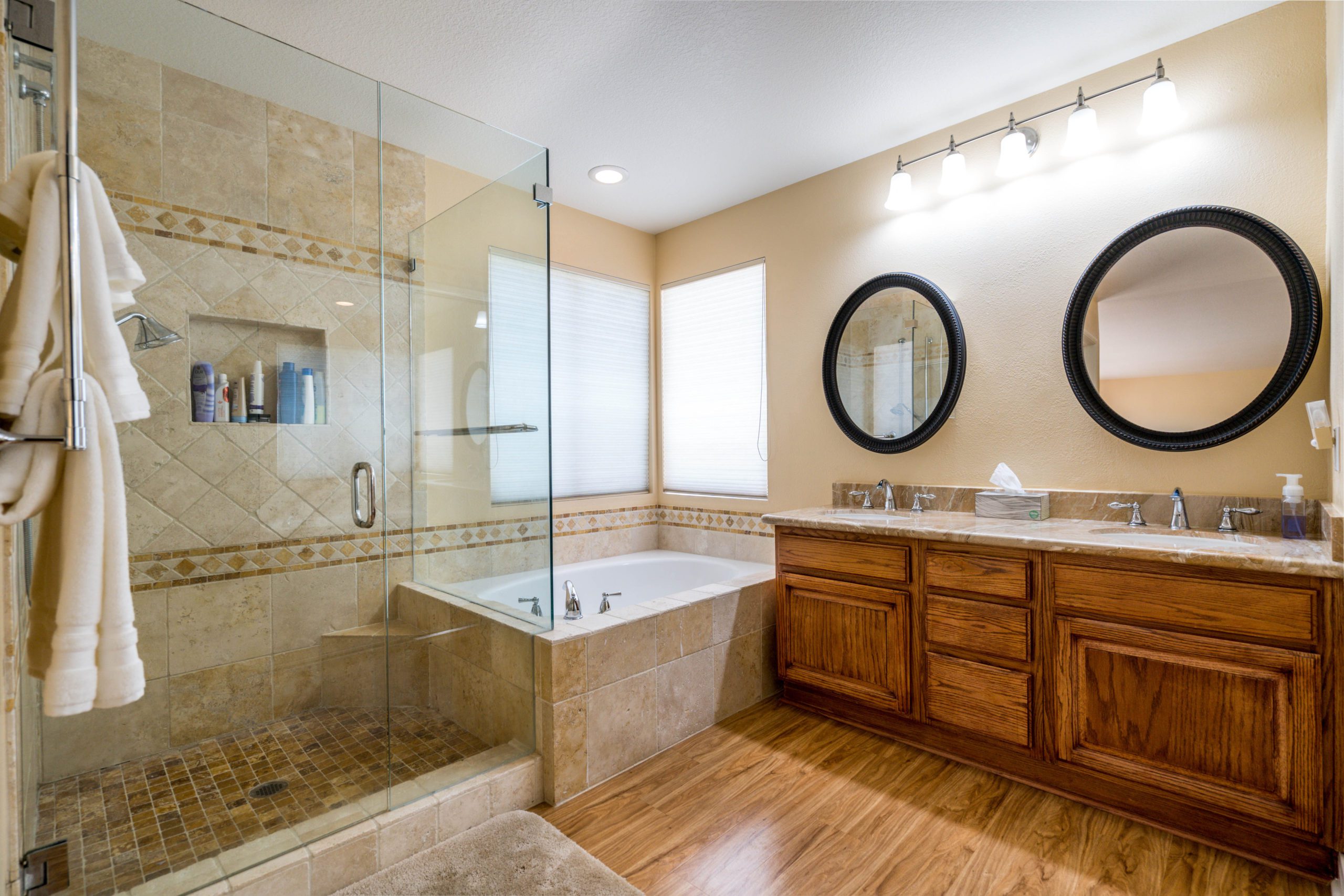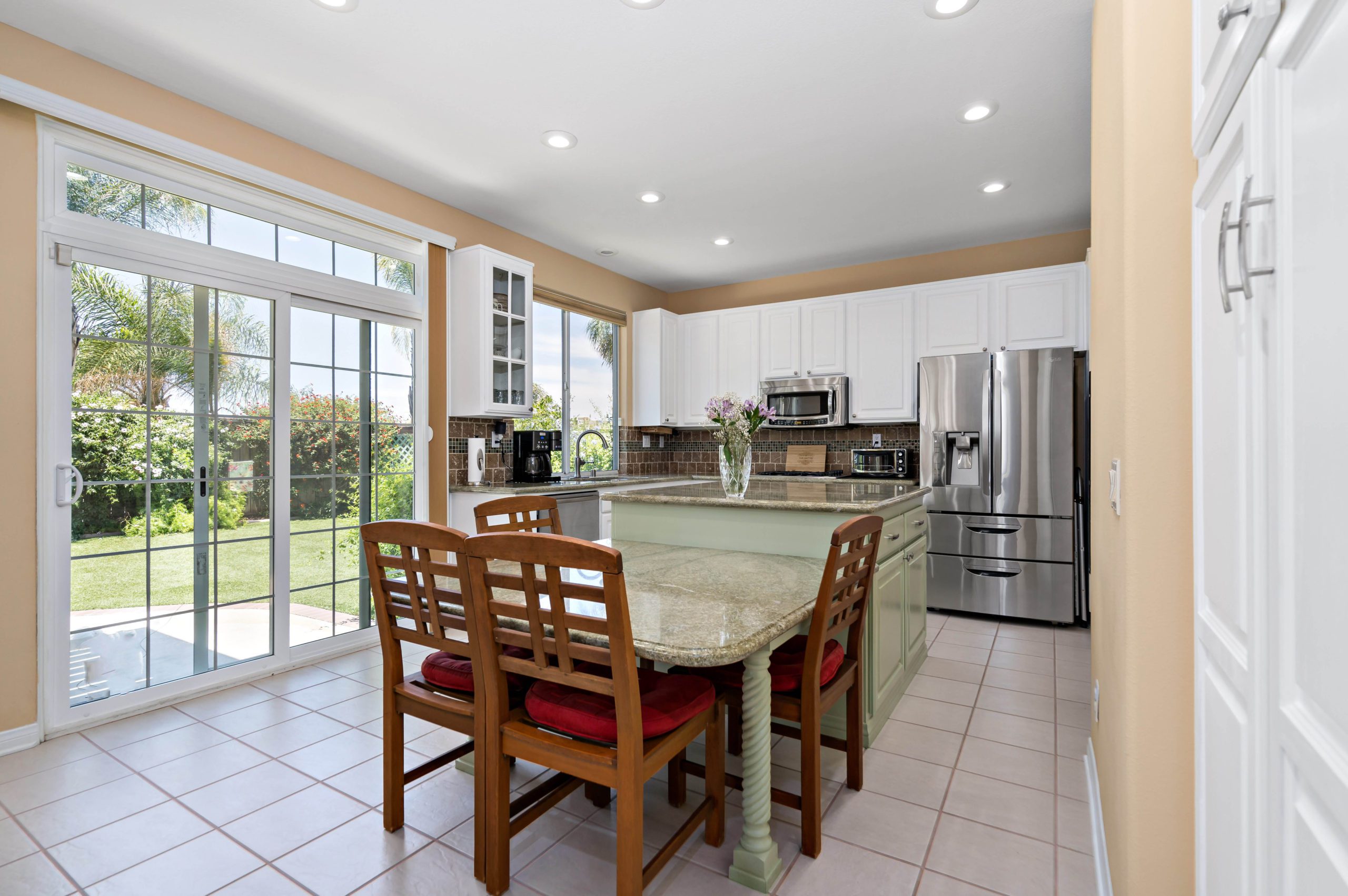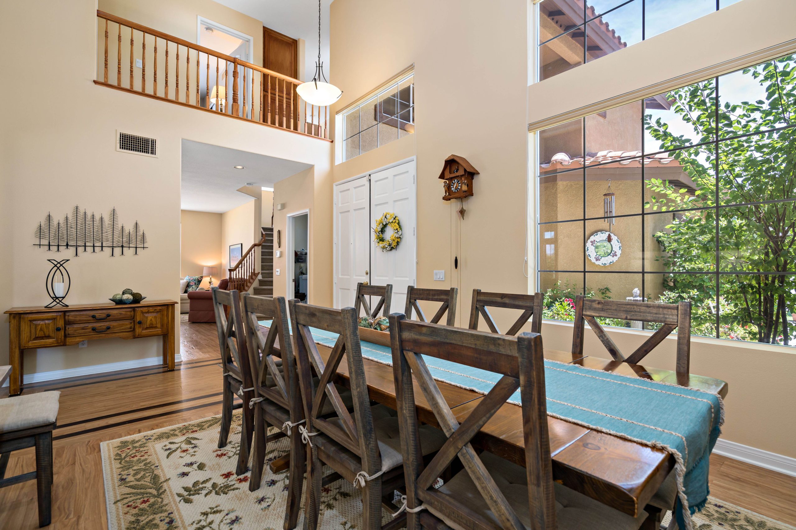 True pride of ownership in this lovely Moreno Valley home that is ready to go! Gorgeous curb appeal with artificial turf, wrought iron gate and welcoming courtyard entry. The front door opens to a 2-story ceiling that lets in plenty of natural light. Beautifully renovated eat-in kitchen complete with granite counters, center island, tile backsplash, white cabinets, can lighting, double ovens and Bosch dishwasher. Separate living and dining rooms. Generously sized master suite with walkout balcony to bask in the beautiful mountain views from all sides of this private and peaceful backyard oasis. All bathrooms recently renovated. The luxurious master bath features a frameless shower, separate soaking tub, dual vanity sinks and walk-in closet. Upgraded textured carpet (extra padding), tile flooring and wide wood looking vinyl plank flooring.