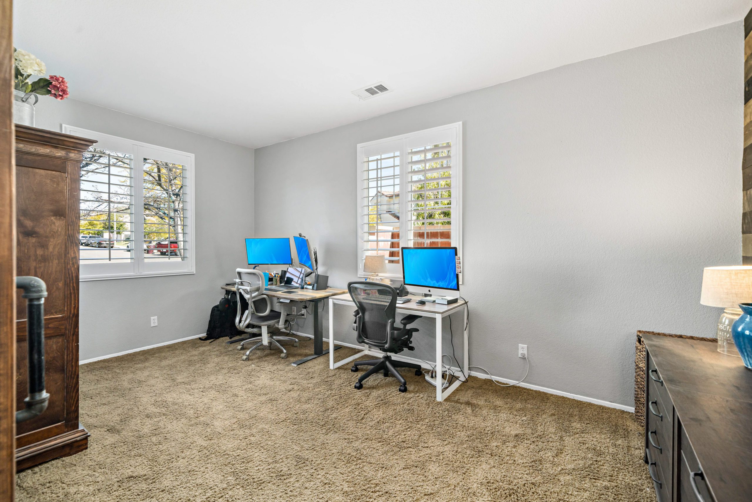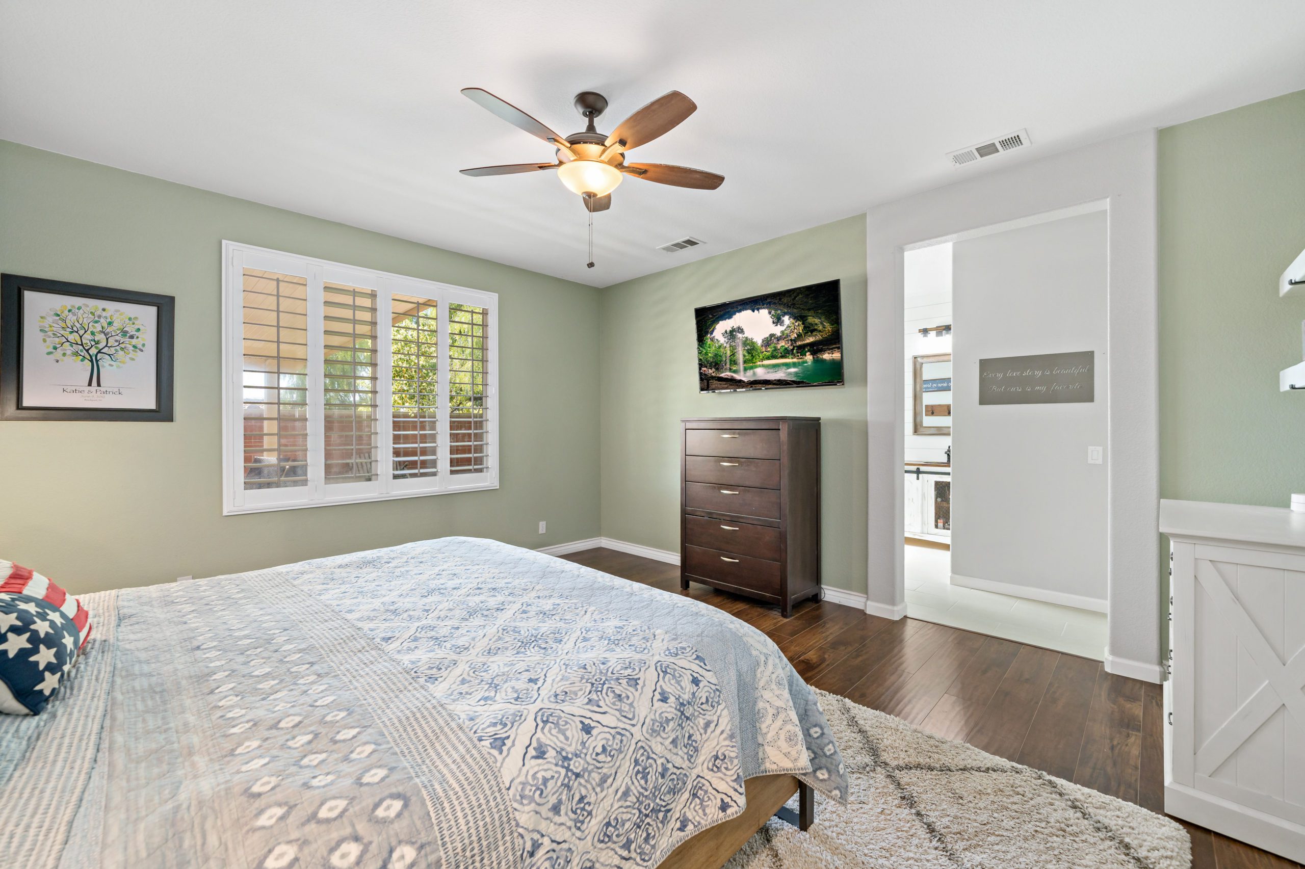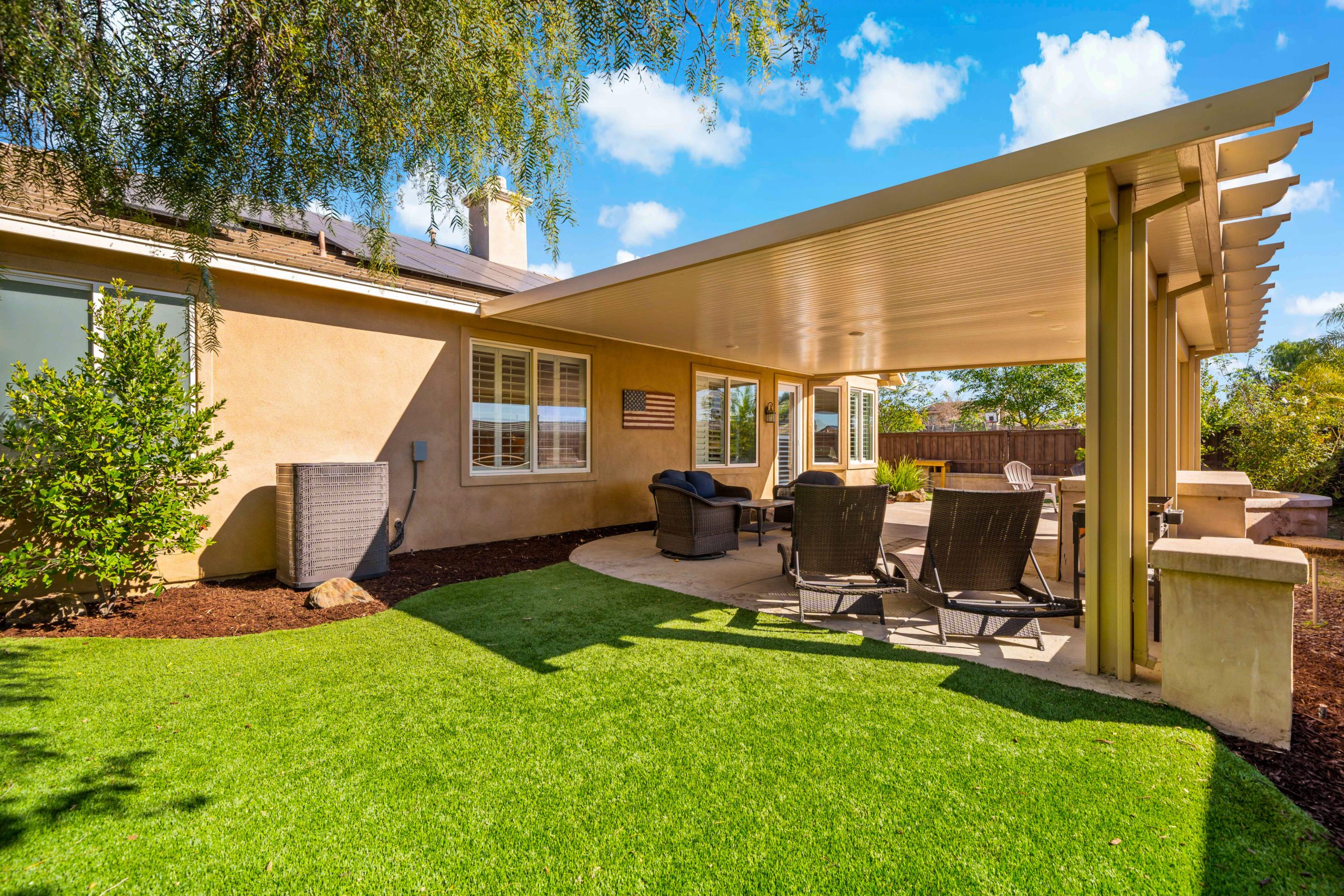 Welcome to this beautiful Pulte-built single story home situated in the highly sought after Central Park community. This home has plenty of renovations showcasing the popular farmhouse/Magnolia style which welcomes even the pickiest of buyers. Enjoy the plantation shutters, remodeled kitchen with quartz counters, walk-in pantry and upgraded baseboards. Crown molding in many rooms. The 5th office/den can easily be converted into another bedroom. The large kitchen/great room is an entertainer’s dream offering center island and inviting fireplace that is ideal for enjoying our chilly Murrieta winter evenings. The primary suite has two closets along with a highly attractive remodeled. The peaceful backyard allows for plenty of privacy and includes a relaxing firepit and Alumawood patio cover complete with lights. Newer HVAC system, transferrable solar and water halo deionization system throughout. No neighbors directly in front. Central Park has plenty of amenities including hiking trails, swimming pool, clubhouse, tennis court, basketball/sport court, volleyball, tot lots, parks and picnic areas. Low taxes and low HOA.