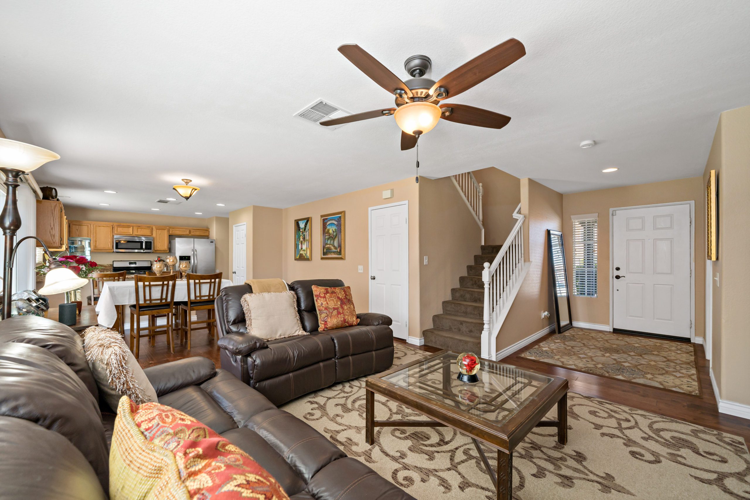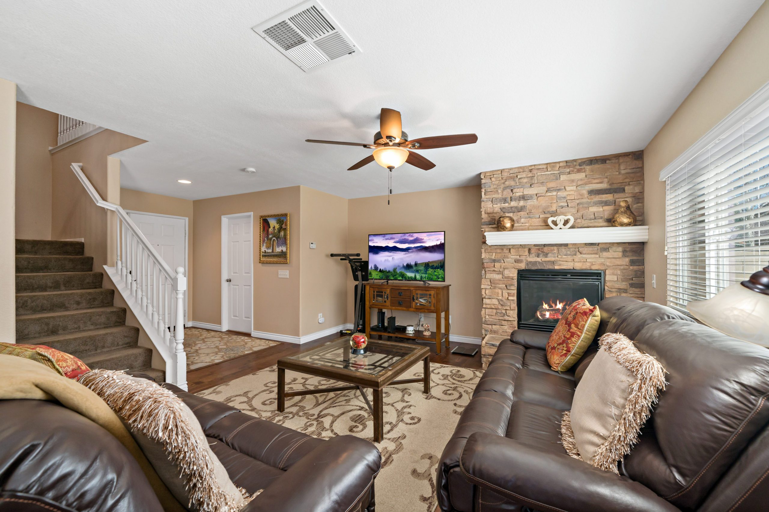 Lovely home with pride of ownership in the popular Rancho Bella Vista community. Situated on a cul-de-sac this home sits in close proximity to Alamos Elementary and Rancho Bella Vista Middle School. Plenty of upgrades including rich dark flooring downstairs, alumawood patio cover, granite kitchen counters and stainless steel appliances, newer lighting in all bedrooms and whole house fan. Gorgeous stacked stone fireplace – ideal for our chilly Murrieta winter evenings. 3 bedrooms upstairs in addition to a loft convenient for school projects or the work-at-home busy executive. The master suite is sizable, has walk-in closet, dual vanity sinks and separate tub/shower. Neutral and tasteful colors throughout. Convenient to interstates, shopping mall and local wineries. Temecula schools and low HOA. Call to tour today!