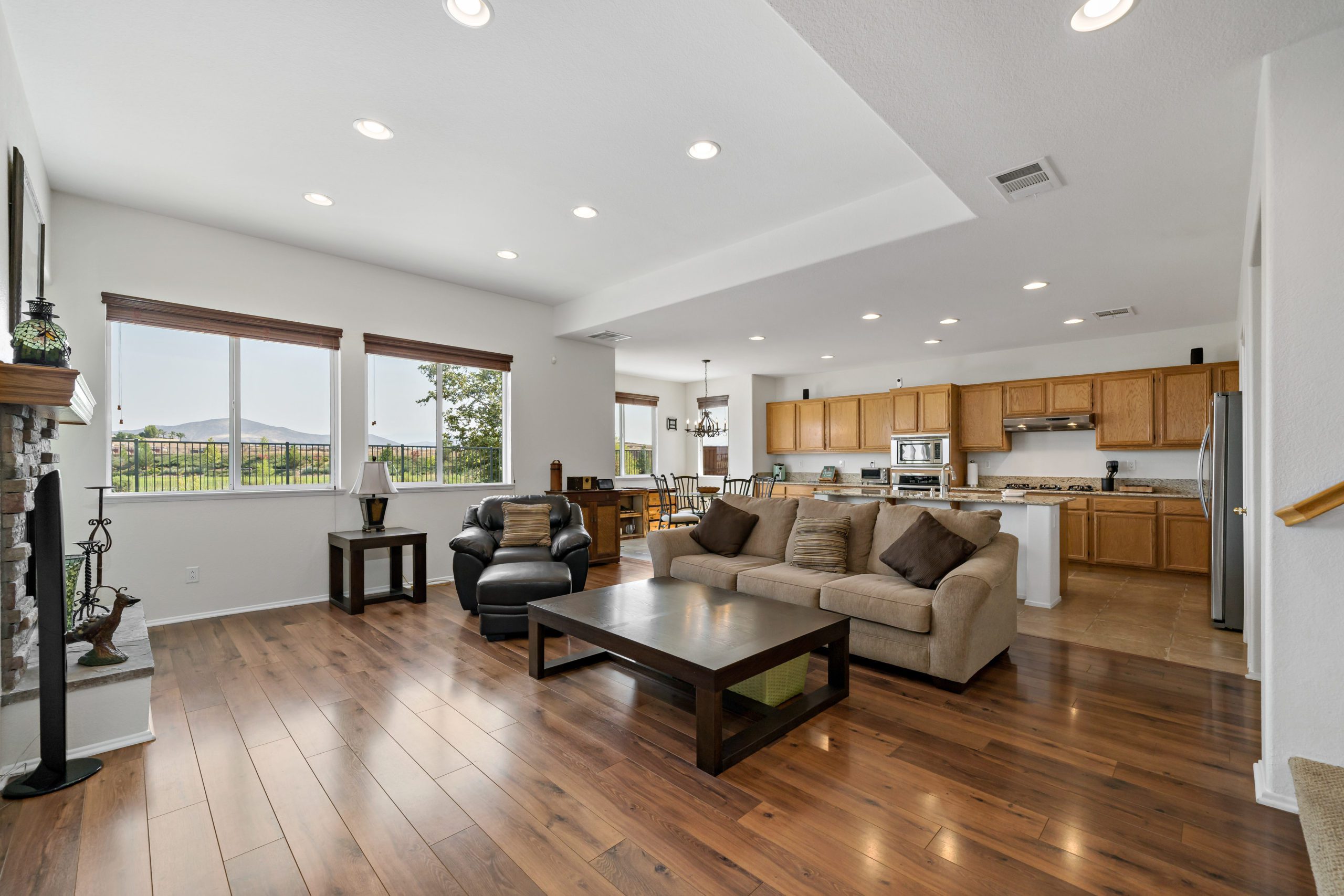 Welcome to the highly attractive community of Rancho Bella Vista. Lovely VIEW home overlooking Tucalota Park with no rear neighbors. Freshly painted interior awaits upon entry with this popular floor plan that flows smoothly throughout. The welcoming and sizable kitchen features plenty of extras including granite counters, upgraded large tile flooring, center island, eat-in kitchen and pantry. Enjoy the open flow from kitchen to the great room including tasteful stacked stone fireplace and built-ins with soft close drawers. The master suite includes a step-up retreat-ideal for the perfect relaxation “escape” to enjoy a moment of cherished down time, reading, sipping coffee or simply an overdue movie watching experience.