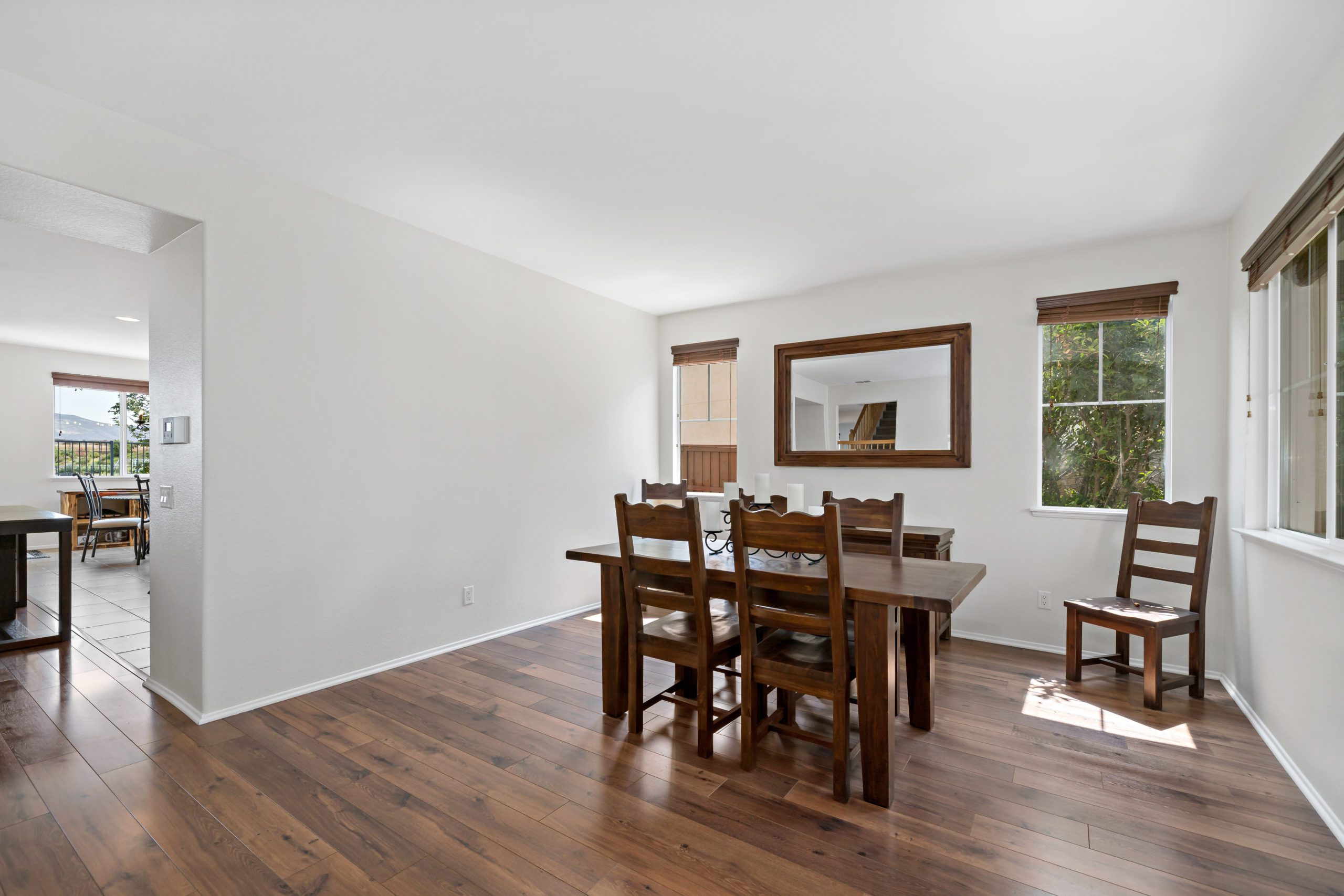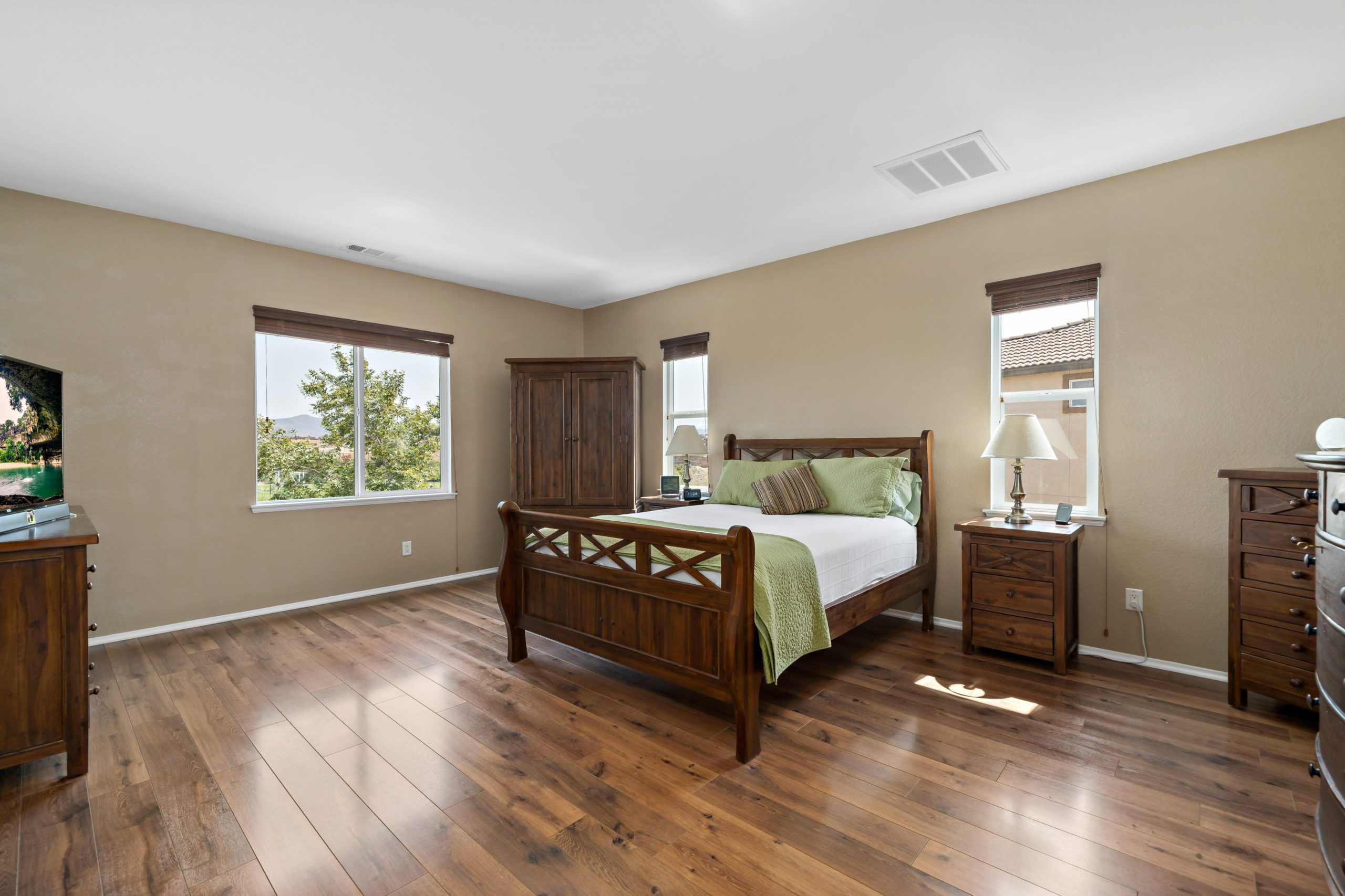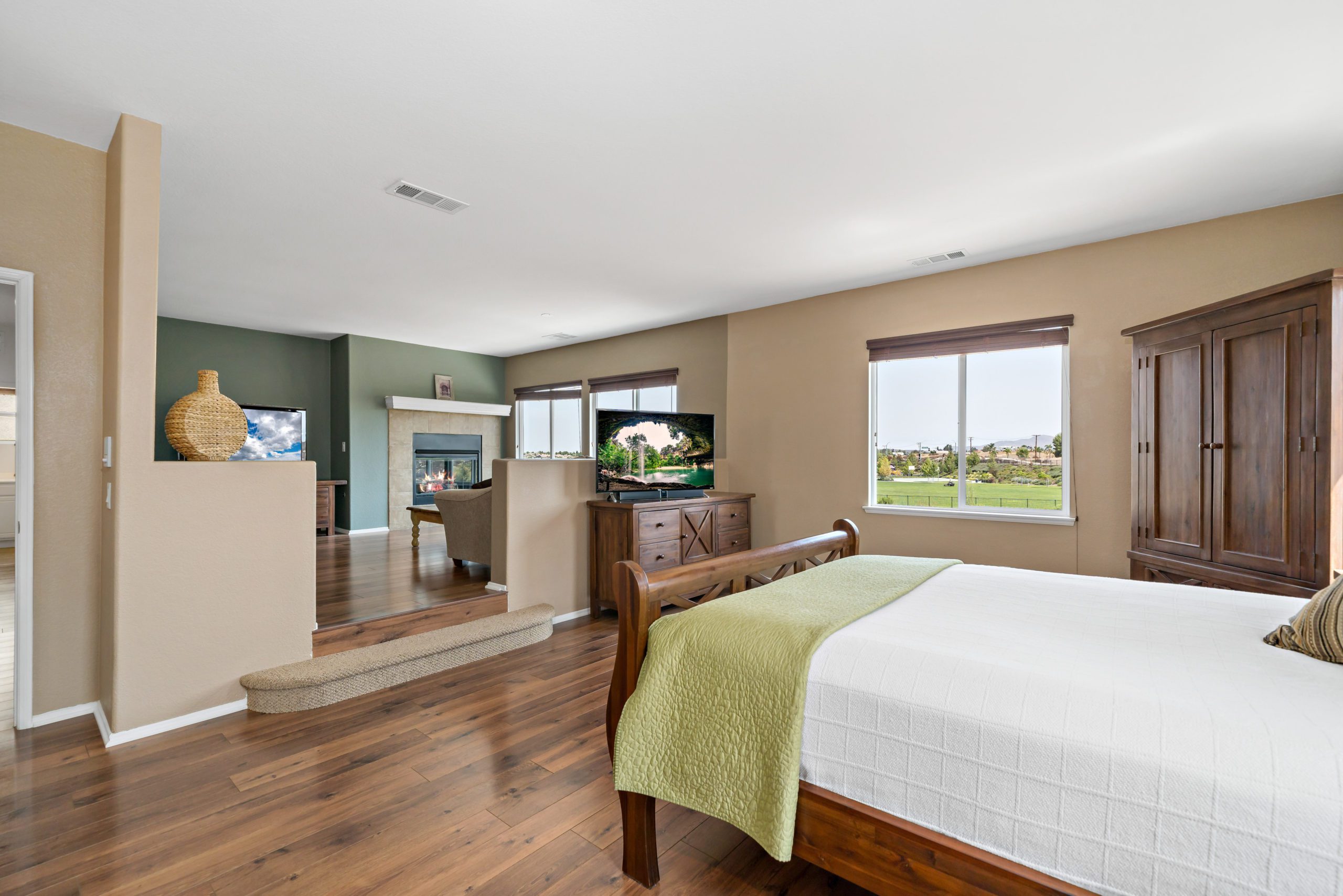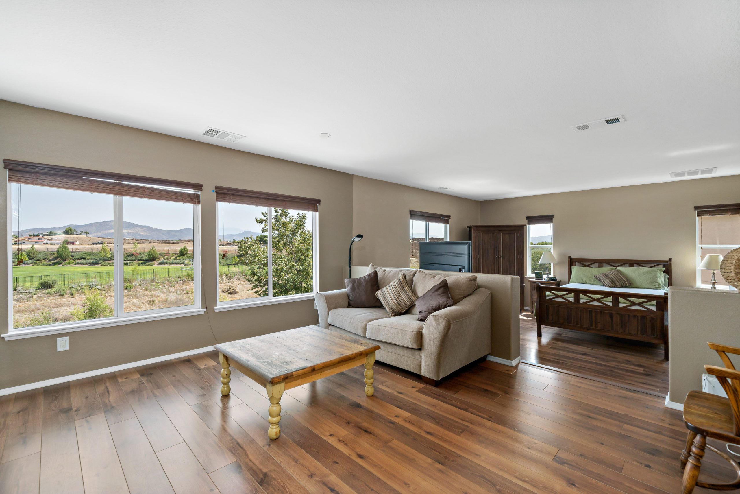 Welcome to the highly attractive community of Rancho Bella Vista. Lovely VIEW home overlooking Tucalota Park with no rear neighbors. Freshly painted interior awaits upon entry with this popular floor plan that flows smoothly throughout. The welcoming and sizable kitchen features plenty of extras including granite counters, upgraded large tile flooring, center island, eat-in kitchen and pantry. Enjoy the open flow from kitchen to the great room including tasteful stacked stone fireplace and built-ins with soft close drawers. The master suite includes a step-up retreat-ideal for the perfect relaxation “escape” to enjoy a moment of cherished down time, reading, sipping coffee or simply an overdue movie watching experience. The master ensuite bath is complete with walk-in closet, separate soaking tub, walk-in shower, linen storage cabinetry and dual vanity sinks. There are 4 bedrooms upstairs, a loft and laundry room with sink. The generously sized downstairs room (converts easily to a bedroom) also has an adjacent bathroom with step-in shower. Berber carpet with upgraded padding upstairs, tasteful laminate flooring in entry dining room and living room. Newer water heater, whole house fan (Comfort Air), freshly painted exterior fence, wired for alarm system and whole house intercom. Rancho Bella Vista is situated in close proximity to award-winning Temecula schools including Alamos Elementary and Bella Vista Middle School. Close and convenient to sports park, recreation center, interstates, local wineries and dining. Low taxes and low HOA. Call to schedule your tour today!