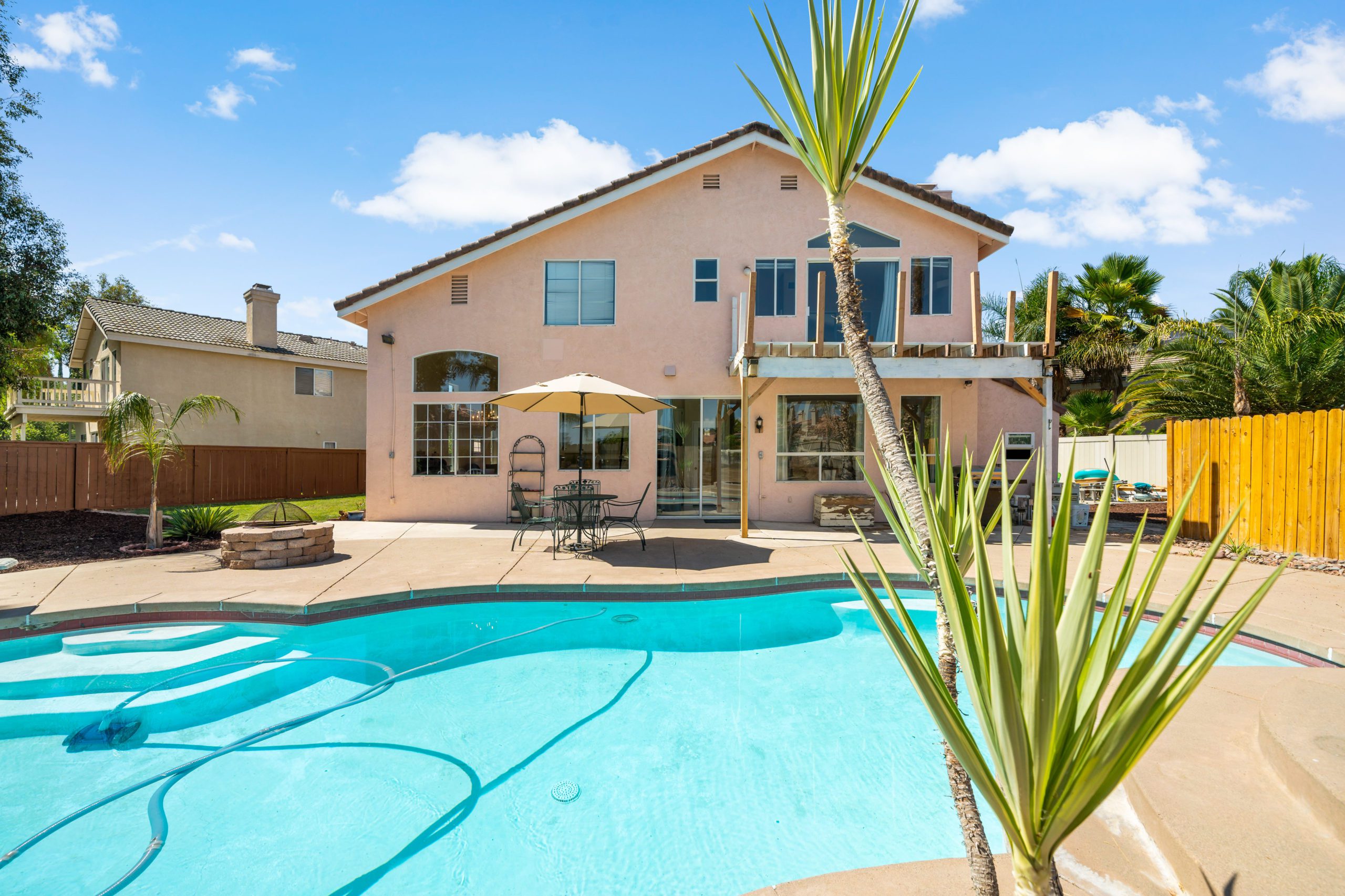 Redhawk Pool Home Redhawk Pool Home Welcome to the highly sought after Redhawk community featuring top rated schools (including Great Oak High School), low taxes and low HOA. This lovely POOL home situated on a cul-de-sac features nearly 1/2 an acre of usable land. Just imagine morning coffee from your upstairs deck basking in the gorgeous VIEW of Palomar Mountain in the distance! Enjoy the freshly painted exterior and interior of this home, too. White kitchen cabinets and walk-in pantry. Guests will enjoy the downstairs bedroom this home offers including tasteful glass French door entry. There is also a downstairs bath with step-in shower. Impressively open, tall ceilings at point of entry. The great room fireplace is ideal for enjoying our chilly TEMECULA winter evenings. The sizable primary suite includes walk-in closet, dual vanity sinks, separate soaking tub and shower. The pool was resurfaced and refreshed just a couple of years ago. Plenty of side and backyard space so bring your toys! 3-car garage. Conveniently located near TEMECULA wineries, restaurants and interstates. Call today to schedule your tour!