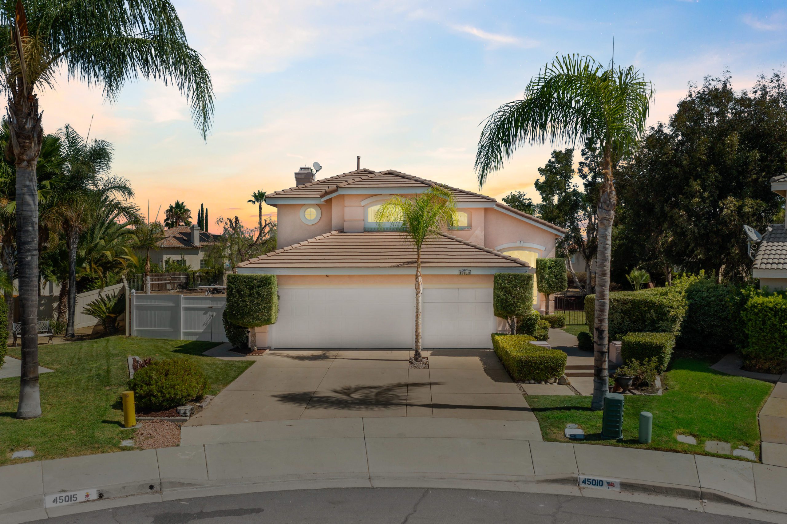 Welcome to the highly sought after Redhawk community featuring top rated schools (including Great Oak High School), low taxes and low HOA. This lovely POOL home situated on a cul-de-sac features nearly 1/2 an acre of usable land. Just imagine morning coffee from your upstairs deck basking in the gorgeous VIEW of Palomar Mountain in the distance! Enjoy the freshly painted exterior and interior of this home, too. White kitchen cabinets and walk-in pantry. Guests will enjoy the downstairs bedroom this home offers including tasteful glass French door entry. There is also a downstairs bath with step-in shower. Impressively open, tall ceilings at point of entry. The great room fireplace is ideal for enjoying our chilly TEMECULA winter evenings. The sizable primary suite includes walk-in closet, dual vanity sinks, separate soaking tub and shower. The pool was resurfaced and refreshed just a couple of years ago. Plenty of side and backyard space so bring your toys! 3-car garage. Conveniently located near TEMECULA wineries, restaurants and interstates. Call today to schedule your tour!