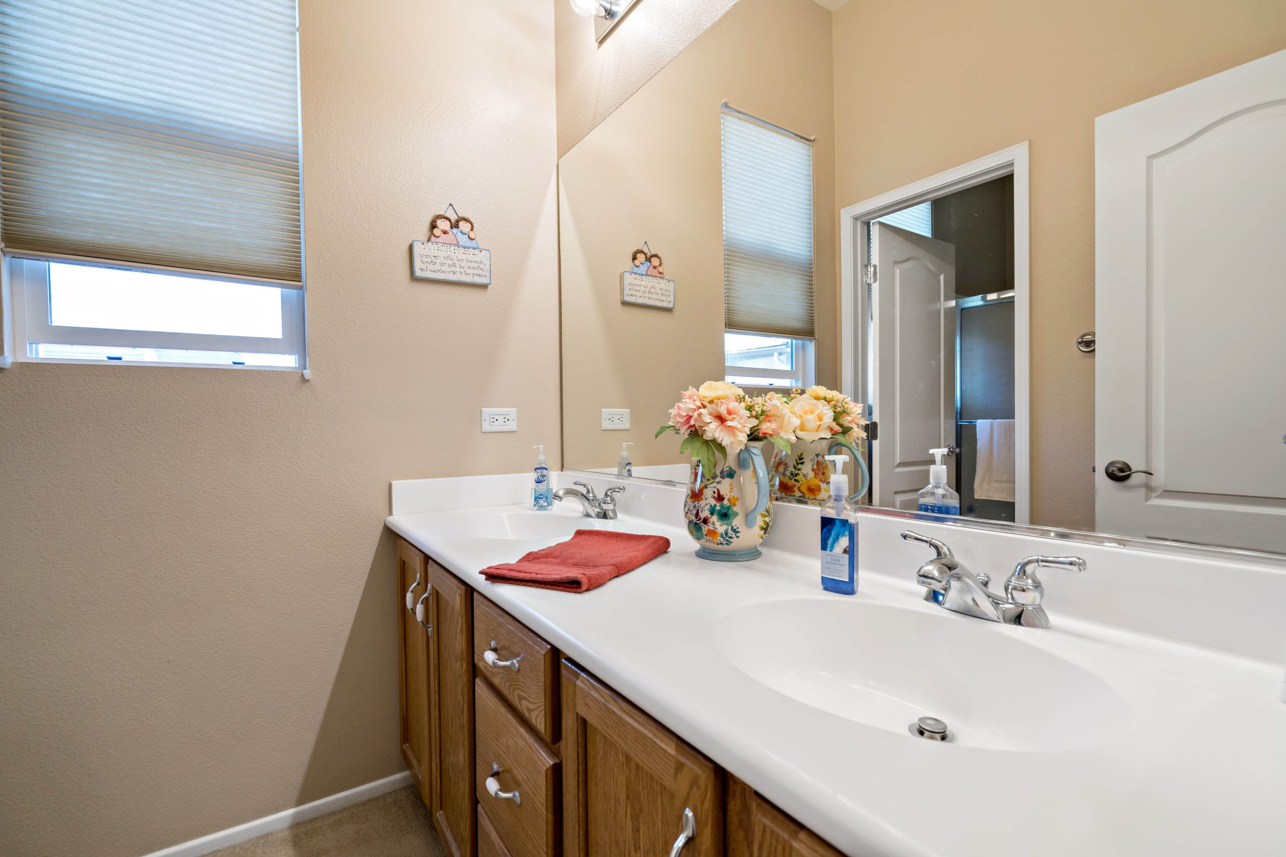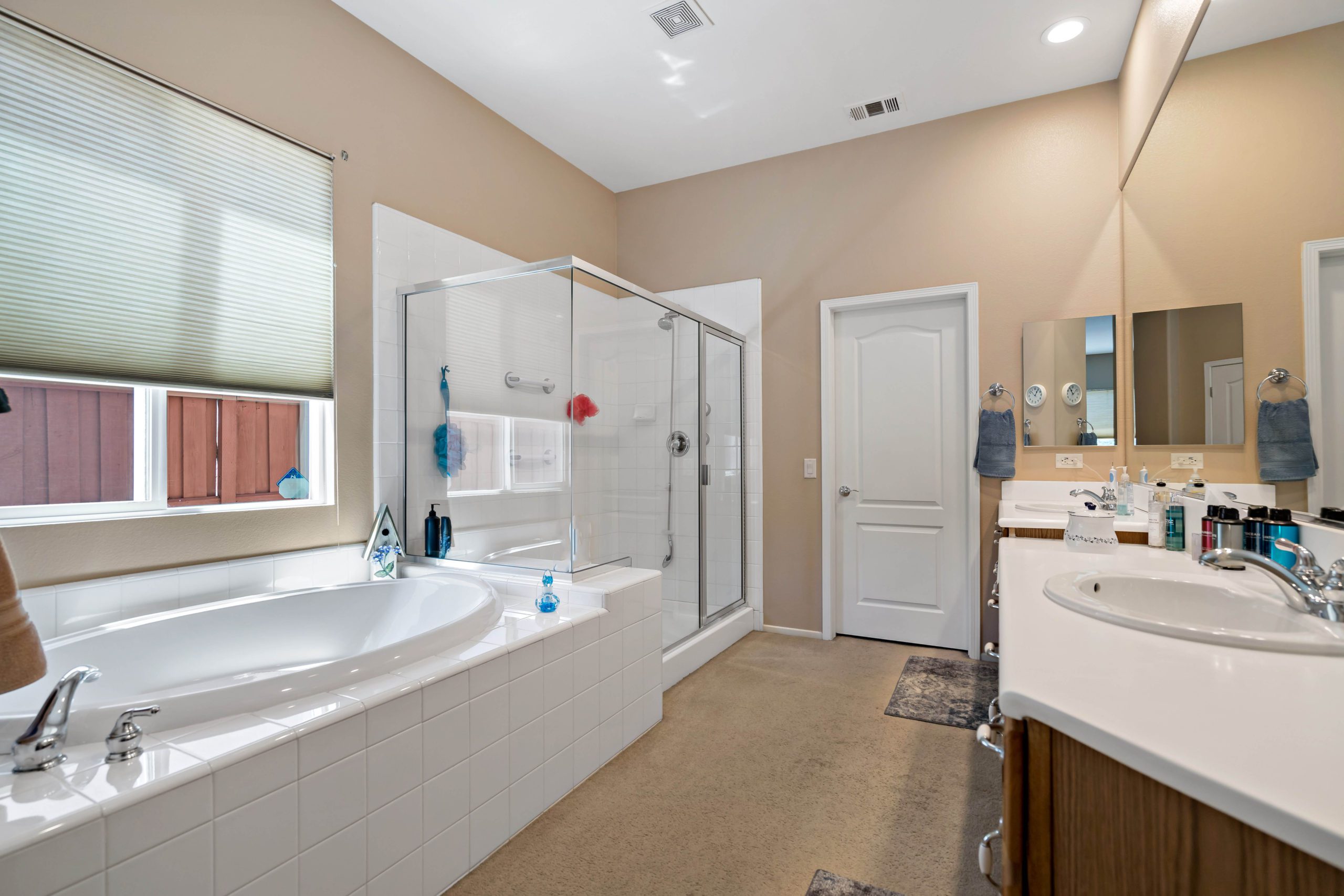 Location! Location! Location! Single story gem situated in the popular Central Park community. This Pulte-built beauty is a rare floor plan and is the largest single story this neighborhood has to offer. An entertainer’s dream ready for the gourmet cook in a kitchen featuring dramatically tall ceilings, oversized quartz island/breakfast bar, tasteful quartz backsplash, eat-in kitchen and walk-in pantry. The kitchen is fully open to the great room that includes an inviting fireplace which is ideal for enjoying our chilly Murrieta evenings. The ADA compliant master suite flows nicely on through to a separate tub, walk-in shower, dual vanity sinks and sizeable walk-in closet. 4 more bedrooms. Separate living room and dining room. The tranquil backyard allows for added privacy and relaxation. Newer HVAC and LED recessed lighting. Solar system (23 panels) is fully transferrable. 3-car (split) garage. Conveniently located close to award winning Temecula schools, interstates, restaurants, shopping and local wineries. Low taxes/low HOA. Call to tour today!