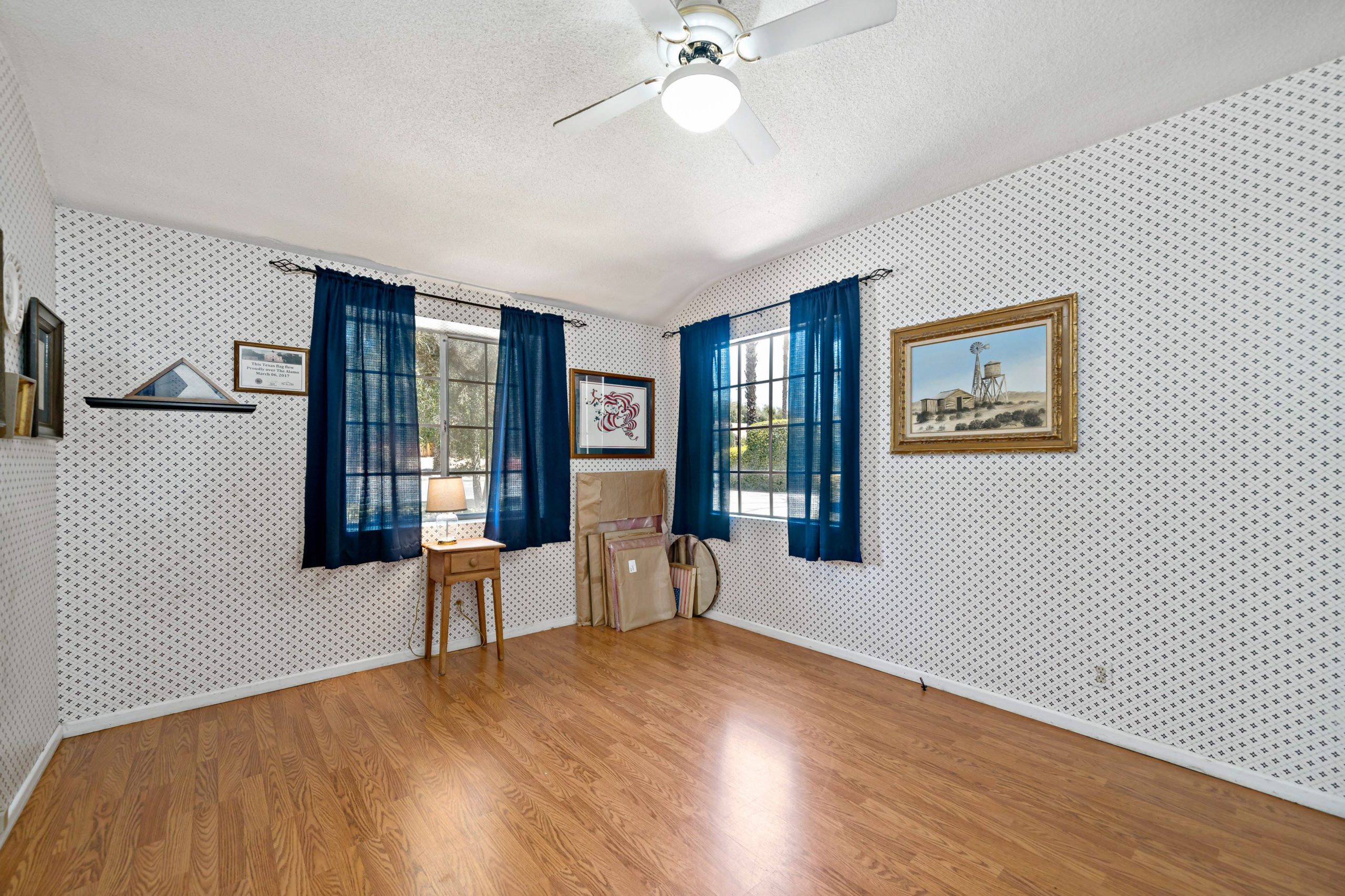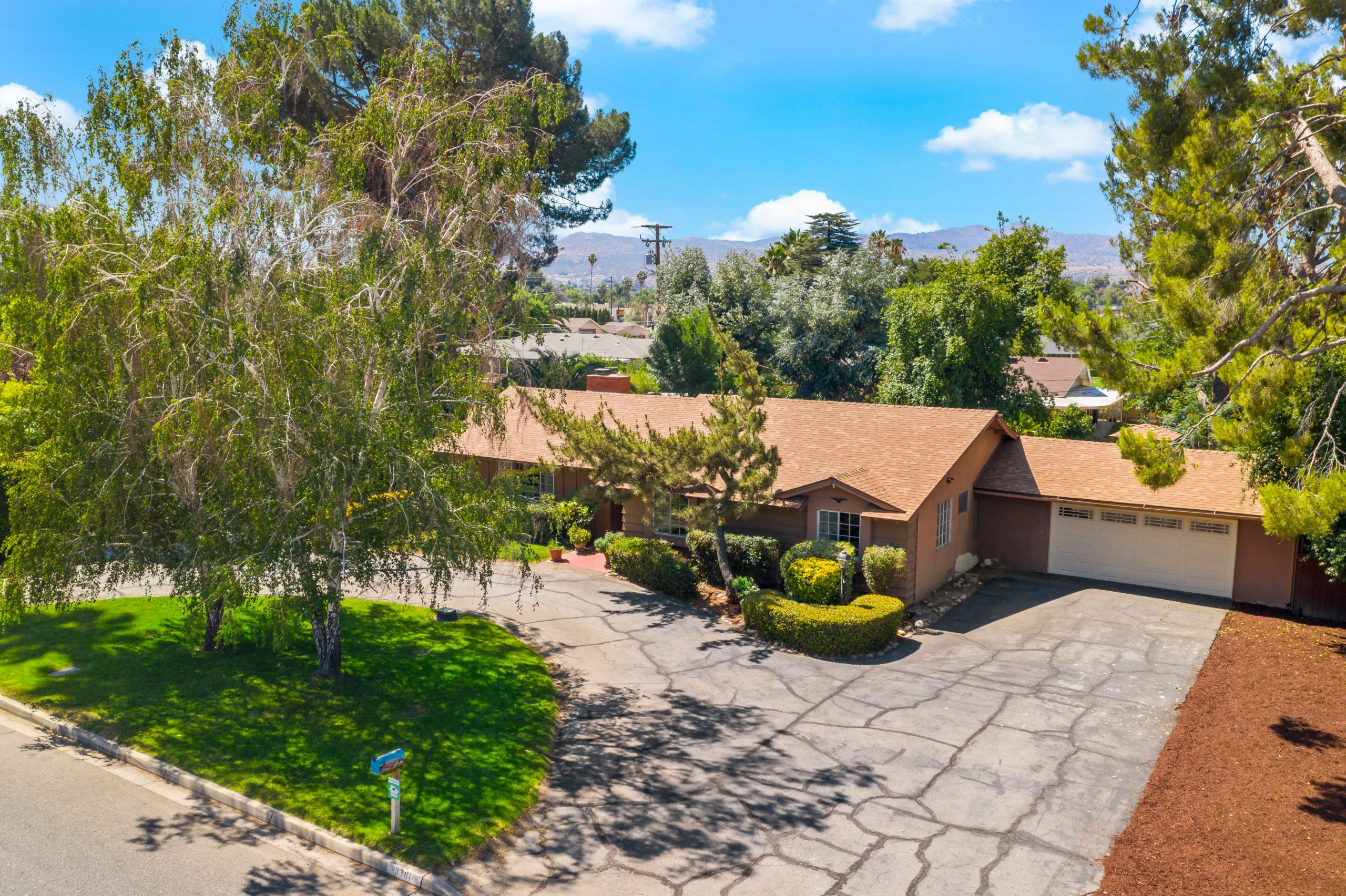 Gorgeous SINGLE STORY GEM situated in East Hemet is ready to go! From the moment the welcoming circular driveway greets you, you’ll know this is the one you’ve been waiting for. True pride of ownership exudes in this beauty which-ideal for the master entertainer seeking one of the most unique backyard sanctuaries in the area. Imagine the approximate 50′ shady pine tree, birds chirping, fruit trees, attractive pergola and an unfinished art studio on your very own property. The kitchen has been recently renovated including self closing drawers, double ovens, glass tile backsplash and Corian counters. No carpet in this home-laminate and tile flooring throughout. 2 cozy fireplaces in which the family room is wood burning. Ceiling fans in all bedrooms. Newer roof, HVAC and fencing. This lot is over-sized and can easily accommodate a pool, too. You can even store your own RV on property behind the gated, sizeable side yard which comes complete with plumbing access valve, electricity and dump. Solar nearly paid off. Top schools and small zoo within close proximity. Front yard VIEW of the orange groves. Low taxes, too. This one won’t last. Call today!