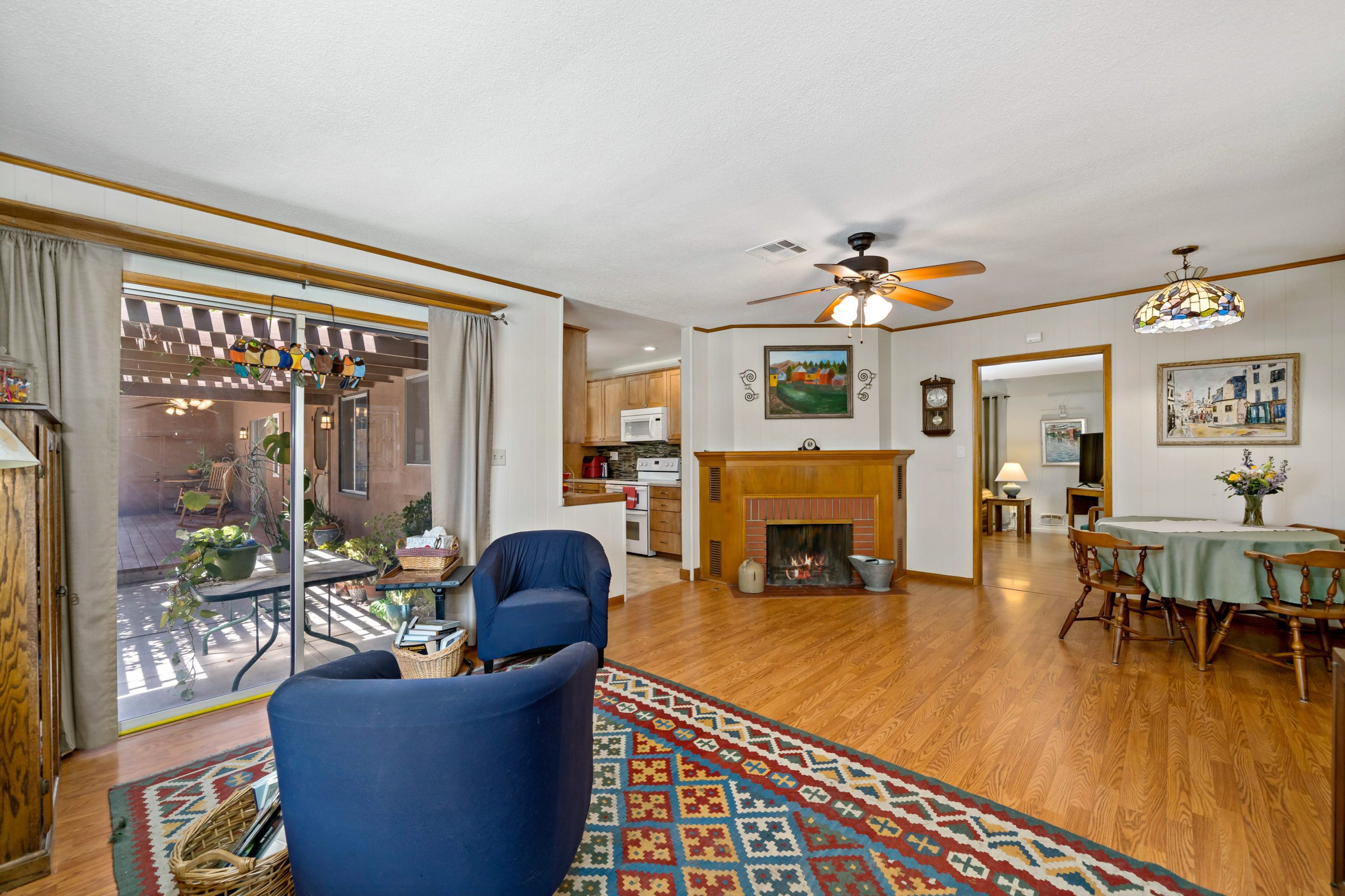 Gorgeous SINGLE STORY GEM situated in East Hemet is ready to go! From the moment the welcoming circular driveway greets you, you’ll know this is the one you’ve been waiting for. True pride of ownership exudes in this beauty which-ideal for the master entertainer seeking one of the most unique backyard sanctuaries in the area. Imagine the approximate 50′ shady pine tree, birds chirping, fruit trees, attractive pergola and an unfinished art studio on your very own property. The kitchen has been recently renovated including self closing drawers, double ovens, glass tile backsplash and Corian counters. No carpet in this home-laminate and tile flooring throughout. 2 cozy fireplaces in which the family room is wood burning. Ceiling fans in all bedrooms. Newer roof, HVAC and fencing. This lot is over-sized and can easily accommodate a pool, too. You can even store your own RV on property behind the gated, sizeable side yard which comes complete with plumbing access valve, electricity and dump. Solar nearly paid off. Top schools and small zoo within close proximity. Front yard VIEW of the orange groves. Low taxes, too.