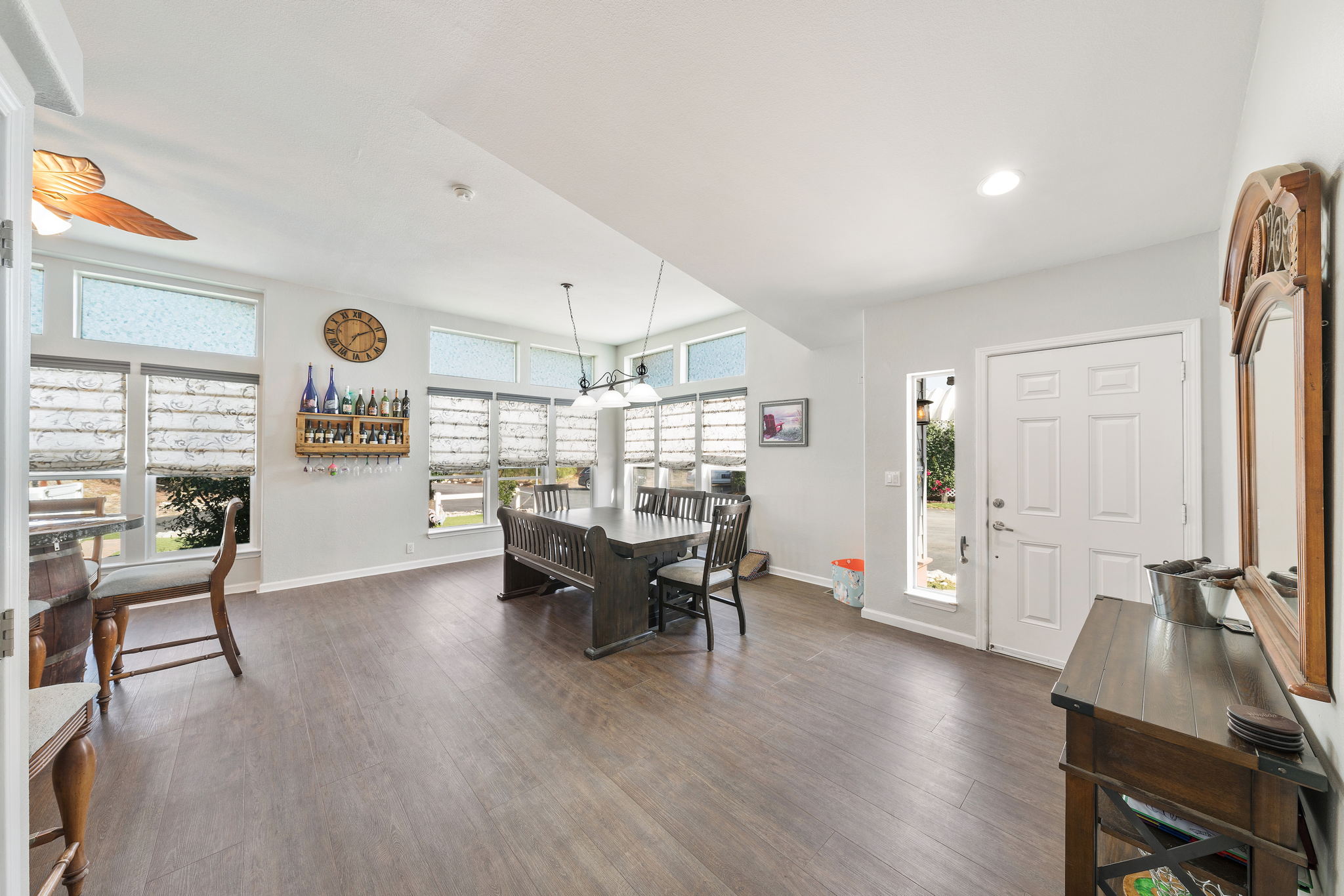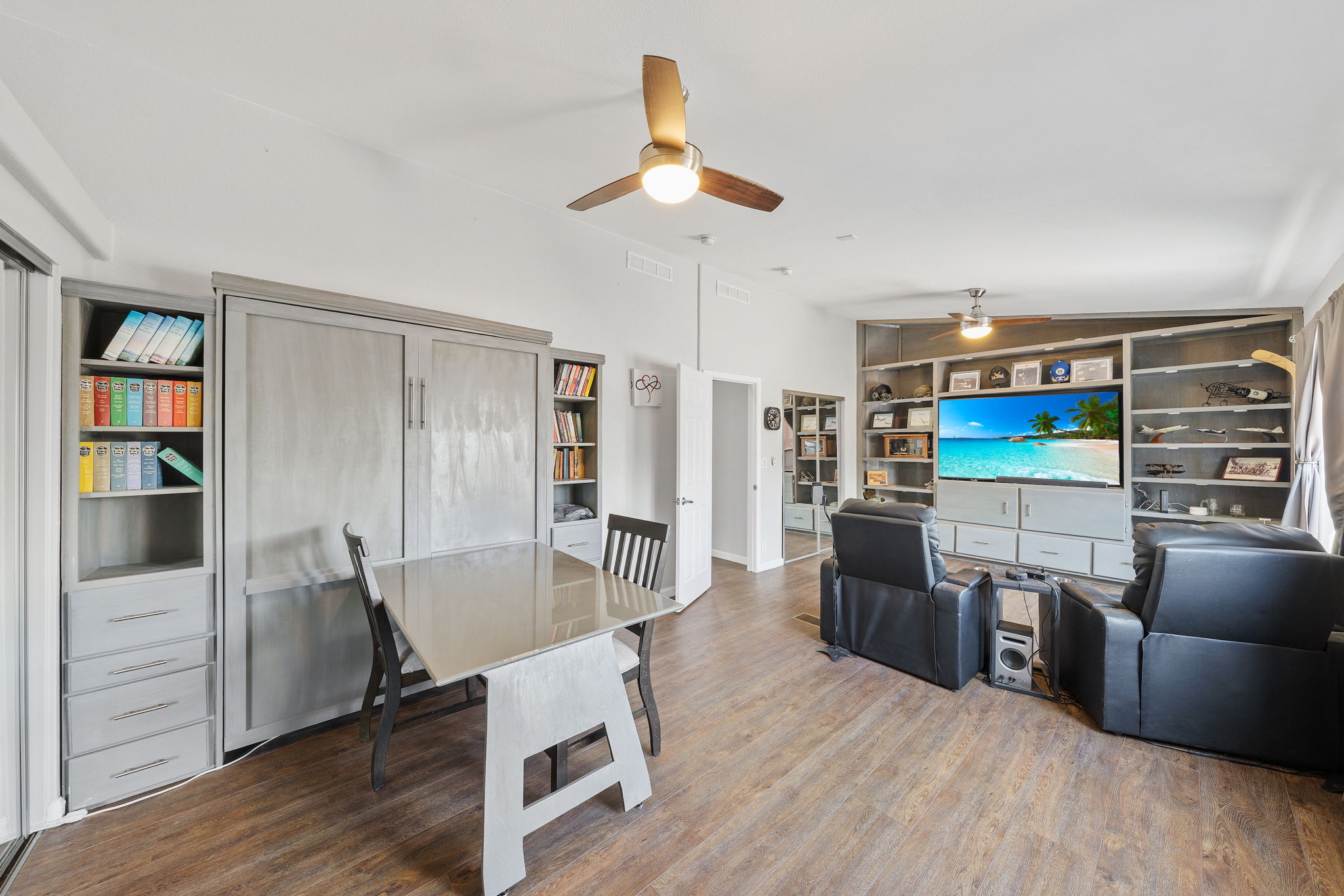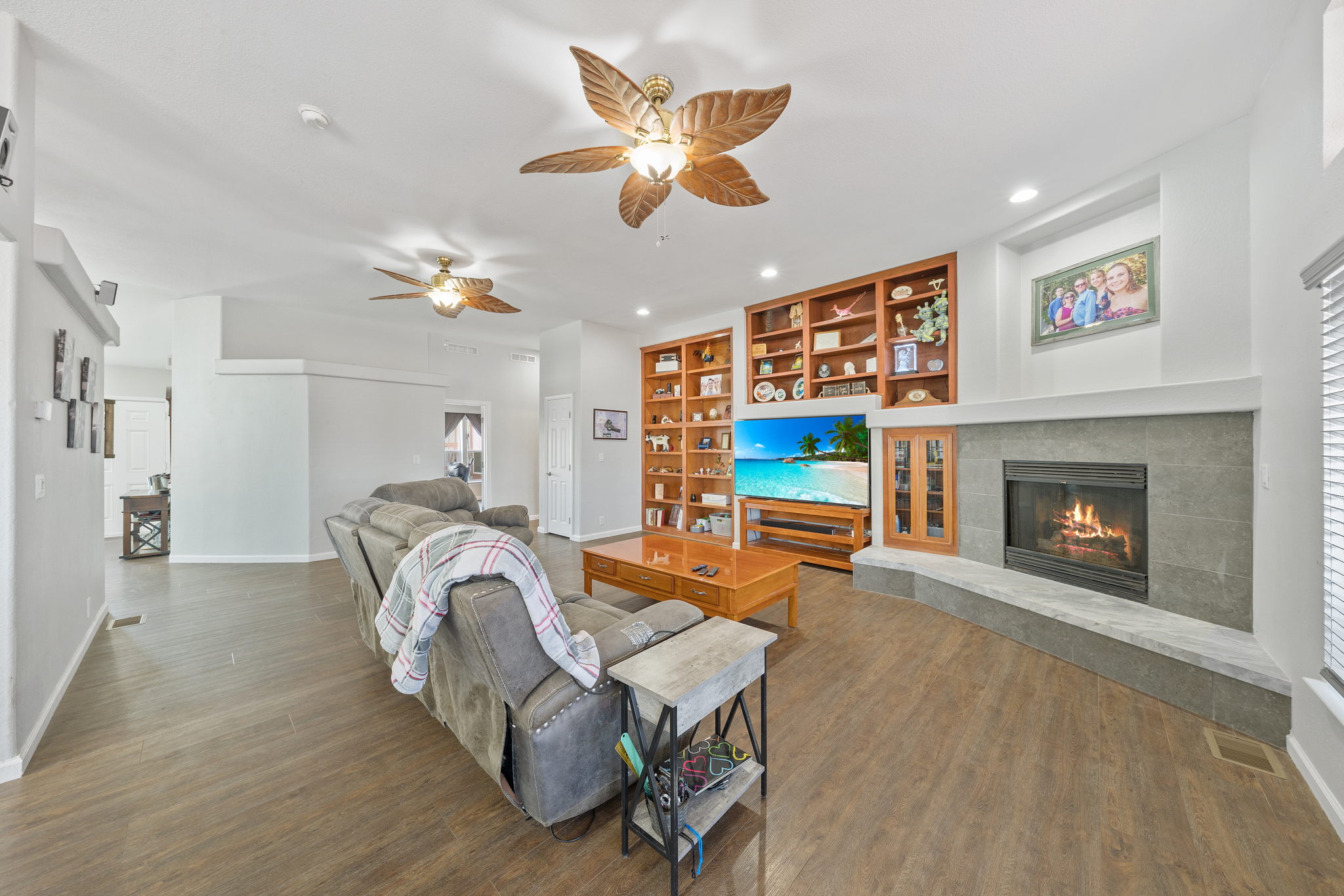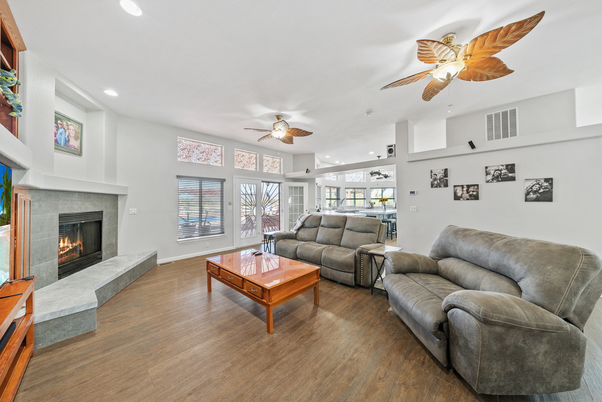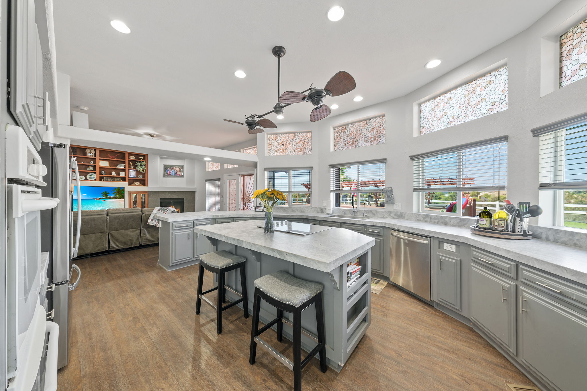 The spectacular panoramic view home you’ve been waiting for-this is it! Imagine looking at snow capped mountains in the winter while taking in the breathtaking spectacular panoramic VIEWS! This recently renovated SINGLE STORY beauty is everything an owner seeking substantial land with gated entry could dream of! From point of living room entry, you’ll fall in love with the newer wide vinyl plank flooring which opens up to the sizable great room which then flows into the upgraded kitchen featuring large center island, double ovens, farmhouse sink, custom walk-in pantry with counters and views of those amazing mountains. The owner’s retreat is generously sized and has a built-in dresser, walk-in closet, corner soaking tub, separate step-in shower with 2 heads and dual vanity sinks. All baths have been renovated over the past couple years. Fresh interior paint in most rooms, too. The great room with custom built-ins and an relaxing fireplace creates that perfect ambiance for enjoying our chilly Temecula Valley evenings. Imagine having your own pool, Trex decking, above ground spa, kennels, artificial turf, airplane hangar (with 30X50′ doors opening on each end) along with an RV garage complete with full hook ups. The “extra” are endless including Bocce ball court, firepit, built-in barbeque and there’s even a fruit tree orchard. This home also has a whole house fan and 30 solar panels under a Power Purchase Agreement. Imagine no sewer bill, no water bill and reduced electricity bills. This home is move in ready and ready for it’s right fit buyer who needs plenty of space to expand, play and entertain. Conveniently located near award-winning Temecula schools, interstates and popular wineries. Call to schedule to your tour today!