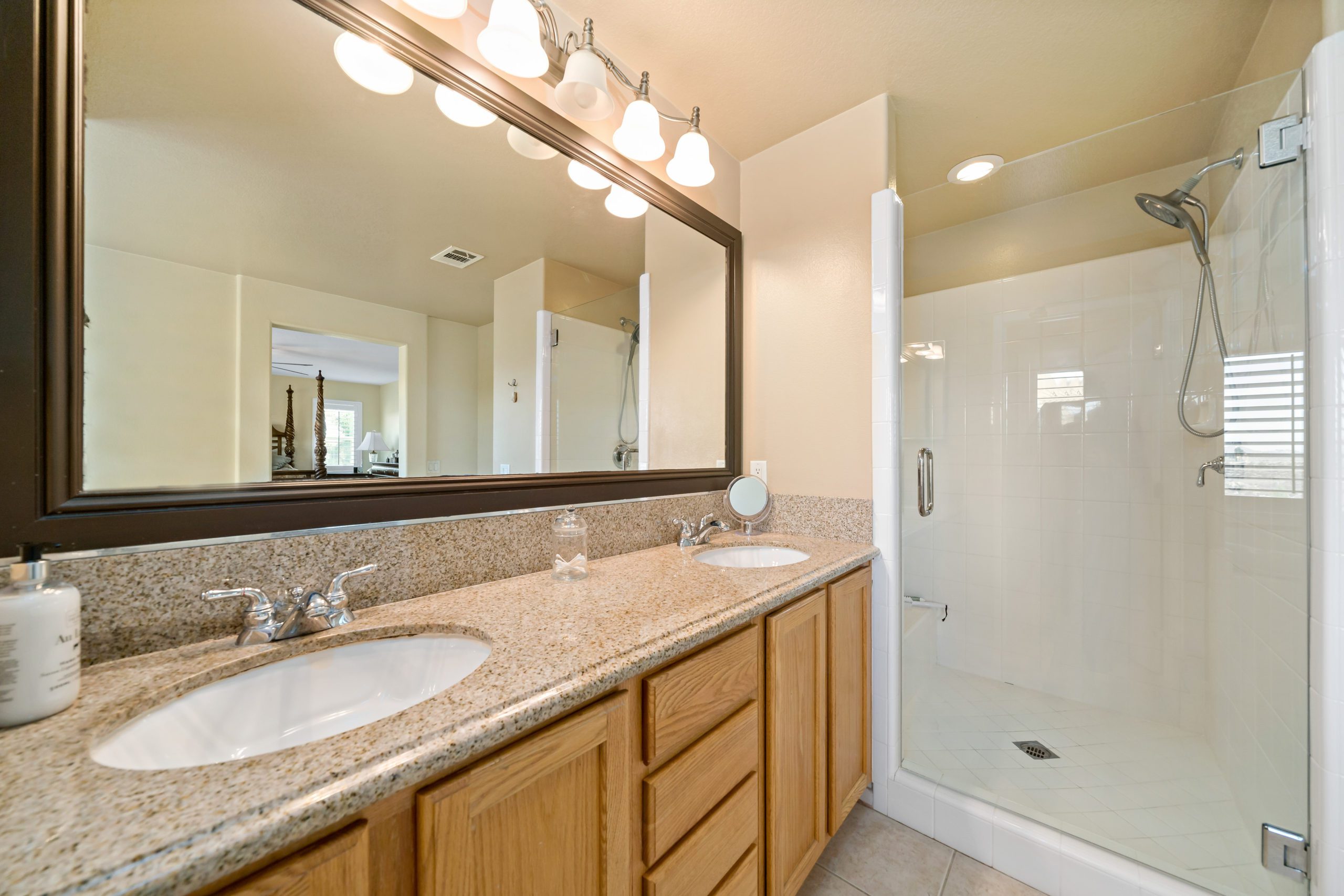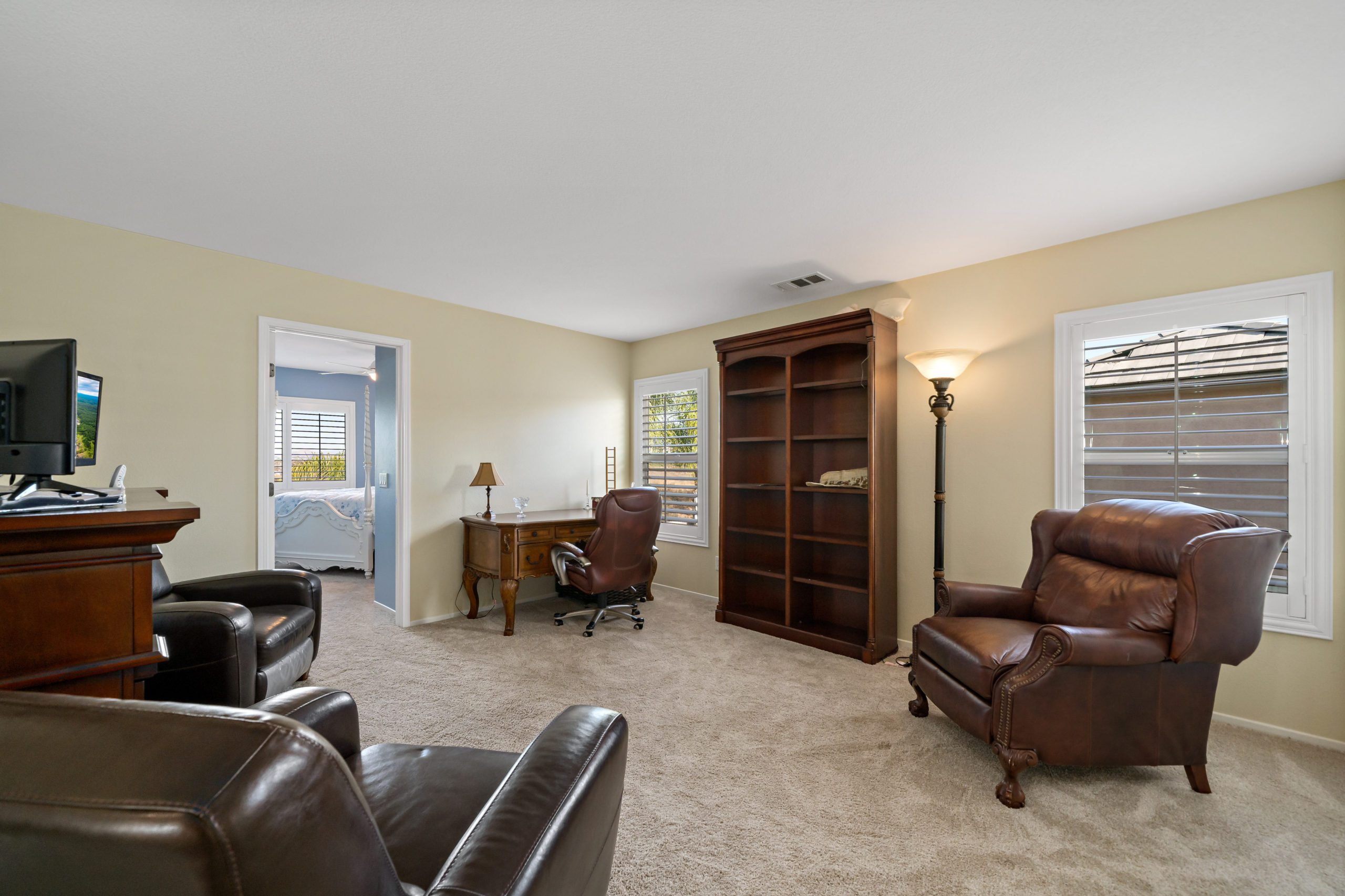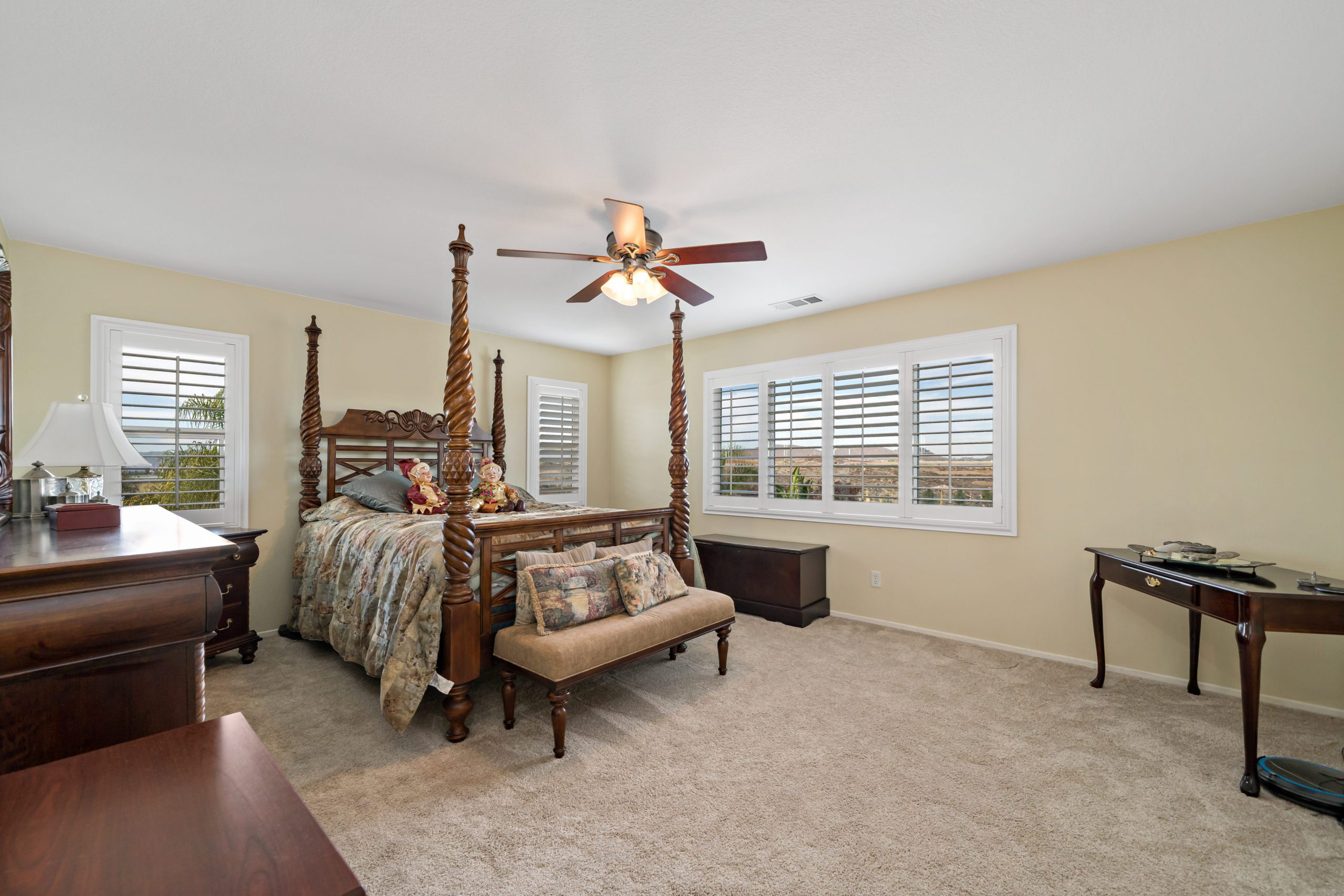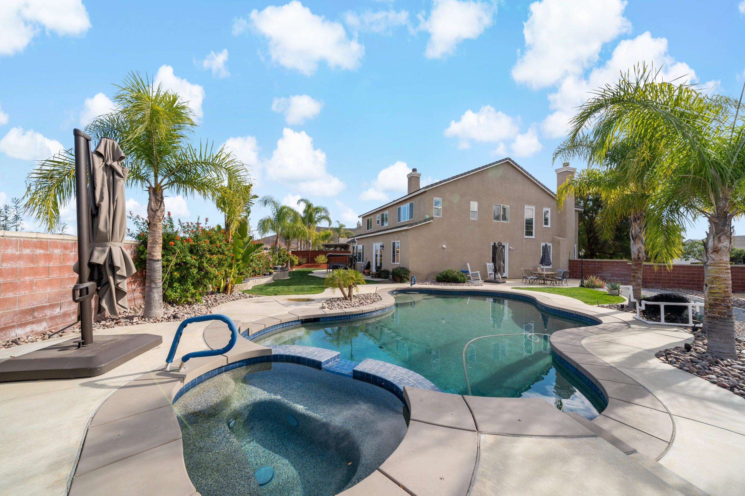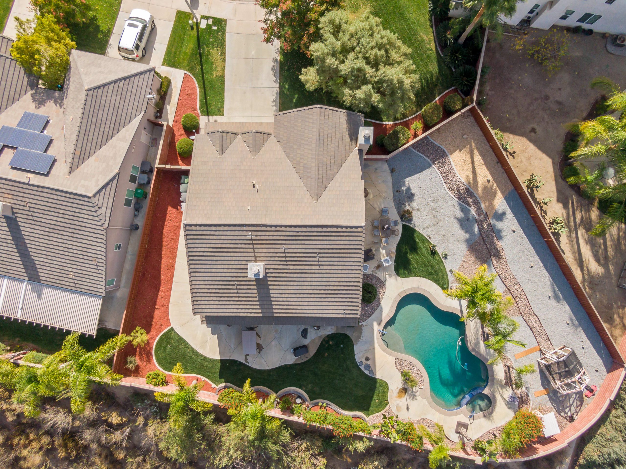 Spectacular VIEW and POOL home in the highly desirable Central Park community. Cul-de-sac location with this Pulte-built beauty featuring plenty of upgrades including granite counters, Plantation shutters, two fireplaces, tile flooring, new carpet and alarm system. Tasteful and neutral colors throughout. The dramatically tall ceilings upon entry let in plenty of natural light which flows from living room to dining room and on into the entertainer’s delight of a kitchen/family room/great room. The kitchen features a center island with additional sink, butler’s counter and stainless steel appliances. Downstairs bedroom and full bath. The master suite includes a jetted tub, separate walk-in shower, dual sinks and closet built-ins. Three additional bedrooms upstairs in addition to the inviting loft ideal for crafts, computer stations, games or home theatre. The backyard is one of the larger lots in Central Park with lots of privacy, no rear neighbors and a nearly panoramic view. Fruit trees, too! The garage has built in cabinets and epoxy coated flooring. Conveniently located to Temecula schools, interstates, local wineries and shopping. Plenty of community extras including pool, sport court, tot lots, tennis, clubhouse and hiking trails. Low taxes/low HOA. Call to tour today!Ā