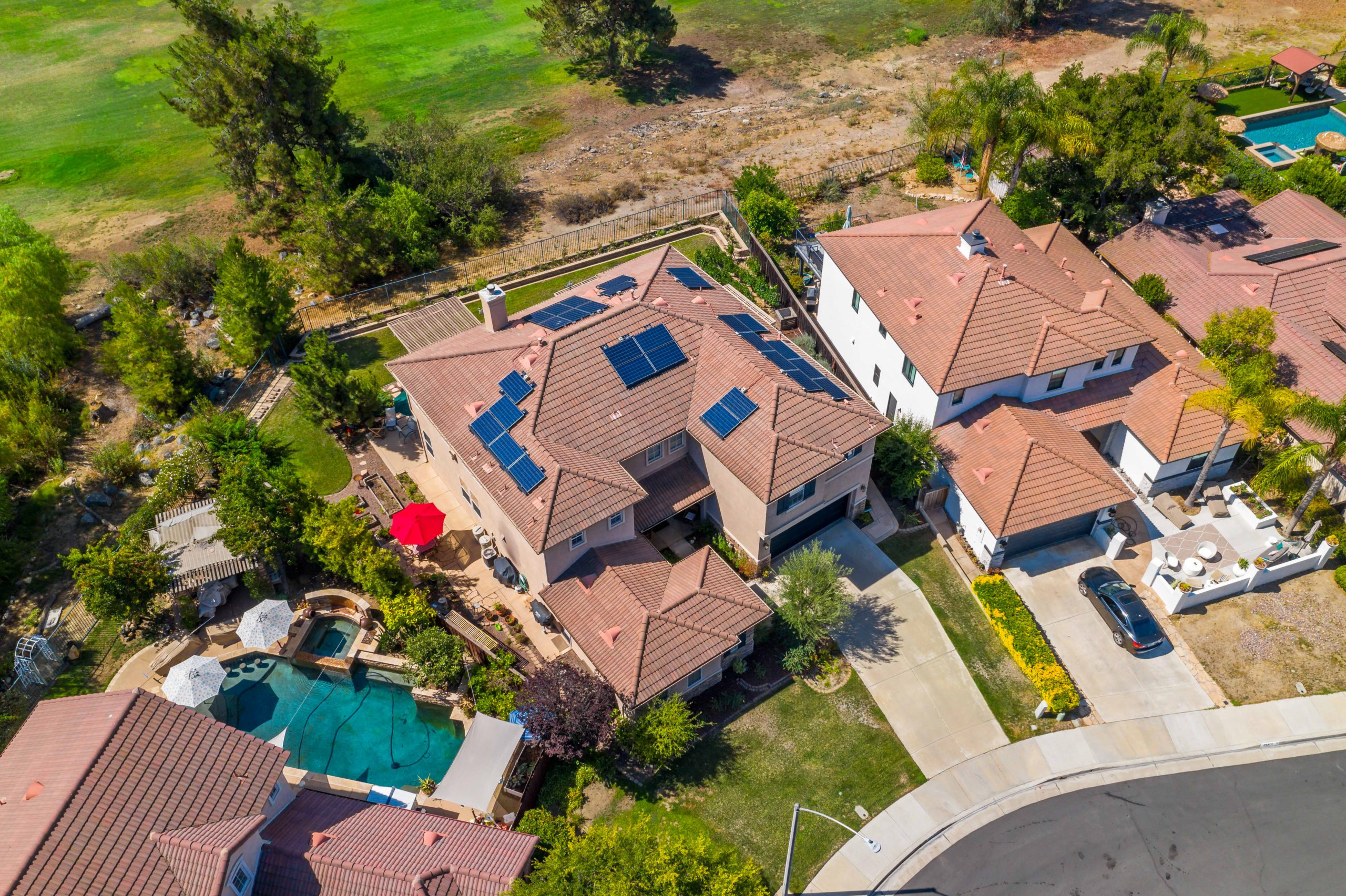 Stunning golf course VIEW home in The Greens conveniently located on the 13th green. This is one of the larger homes in this popular Golf Club of Rancho California community featuring 4 bedrooms and 4 bathrooms. From point of entry, the circular staircase and upper windows yielding to plenty of natural light are likely to impress. Enjoy the gourmet kitchen with oversized built-in refrigerator, stainless steel appliances, custom pantry with counter and built-ins, tasteful cherry stained cabinets, granite counters, sizeable center island/breakfast bar and butler’s pantry/wet bar including sink and wine fridge. Truly an entertainer’s delight from top to bottom. Enjoy the stacked stone wood burning fireplace-ideal for enjoying our chilly winter evenings. The backyard is the perfect escape for the avid gardener-there’s even a small vineyard, patio cover, craft/gardening shed and plenty of side area to expand. There are 3 full bathrooms upstairs. One is a Jack and Jill. The overly spacious master suite includes a two-sided fireplace, French door entry, walk-in closet, dual vanity sinks, walk-in shower and separate jetted corner tub. All bedrooms feature mirrored closet doors and ceiling fans. Plenty of upgrades including extra wide baseboards, cedar closet flooring, custom door trim with rosettes, upgraded carpet and padding, oversized tile flooring downstairs, newer wood flooring in the dining room/living room and a Quiet Cool fan plus transferrable solar through Vivant. 3-car garage. The downstairs separate office has a closet and can easily be converted into another bedroom. The downstairs bath is plumbed to add a shower/tub. Low taxes, no HOA. Close and convenient to award-winning Temecula wineries, Murrieta schools, interstates, shopping and dining. Total pride of ownership….this one won’t last!