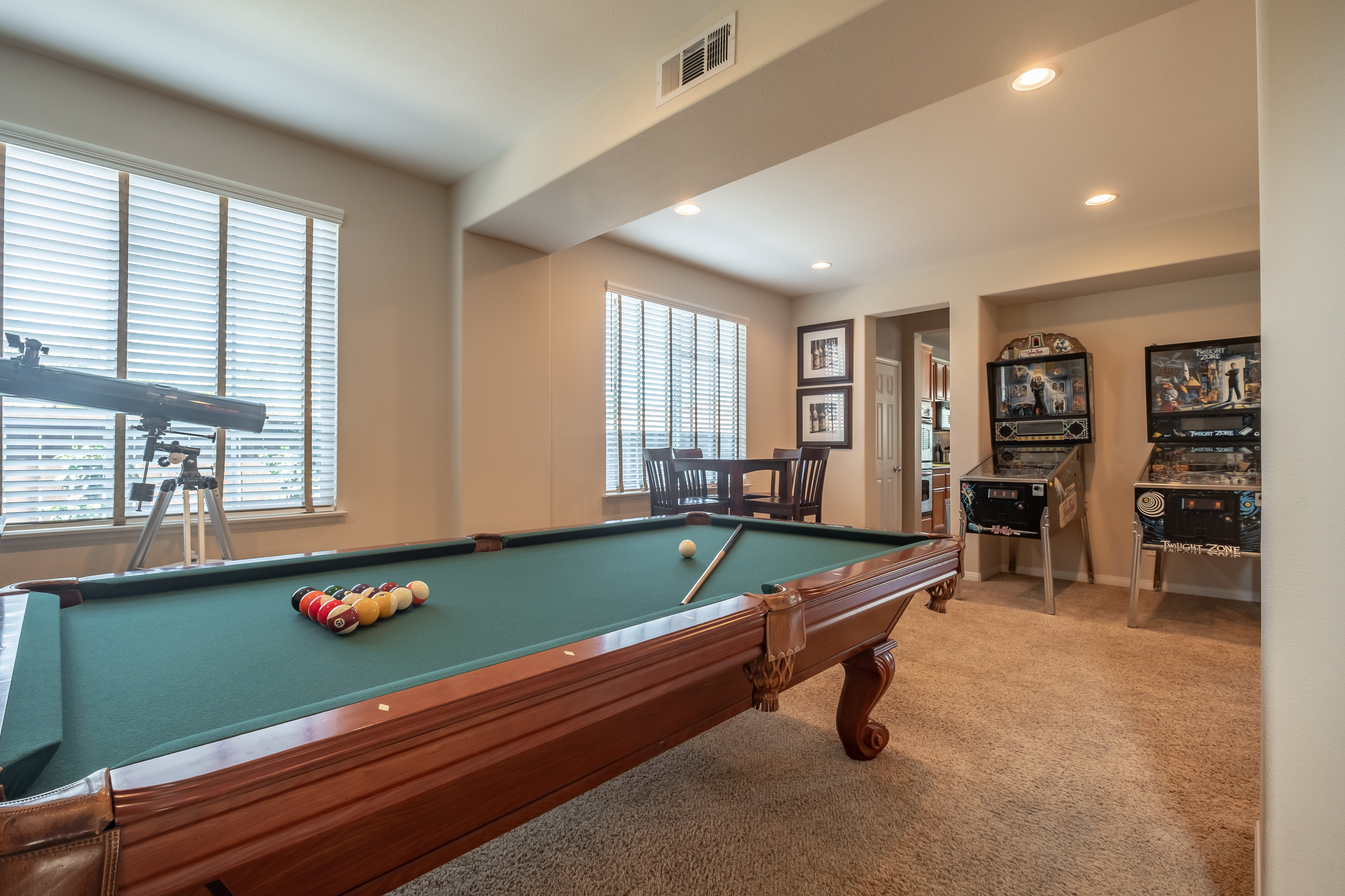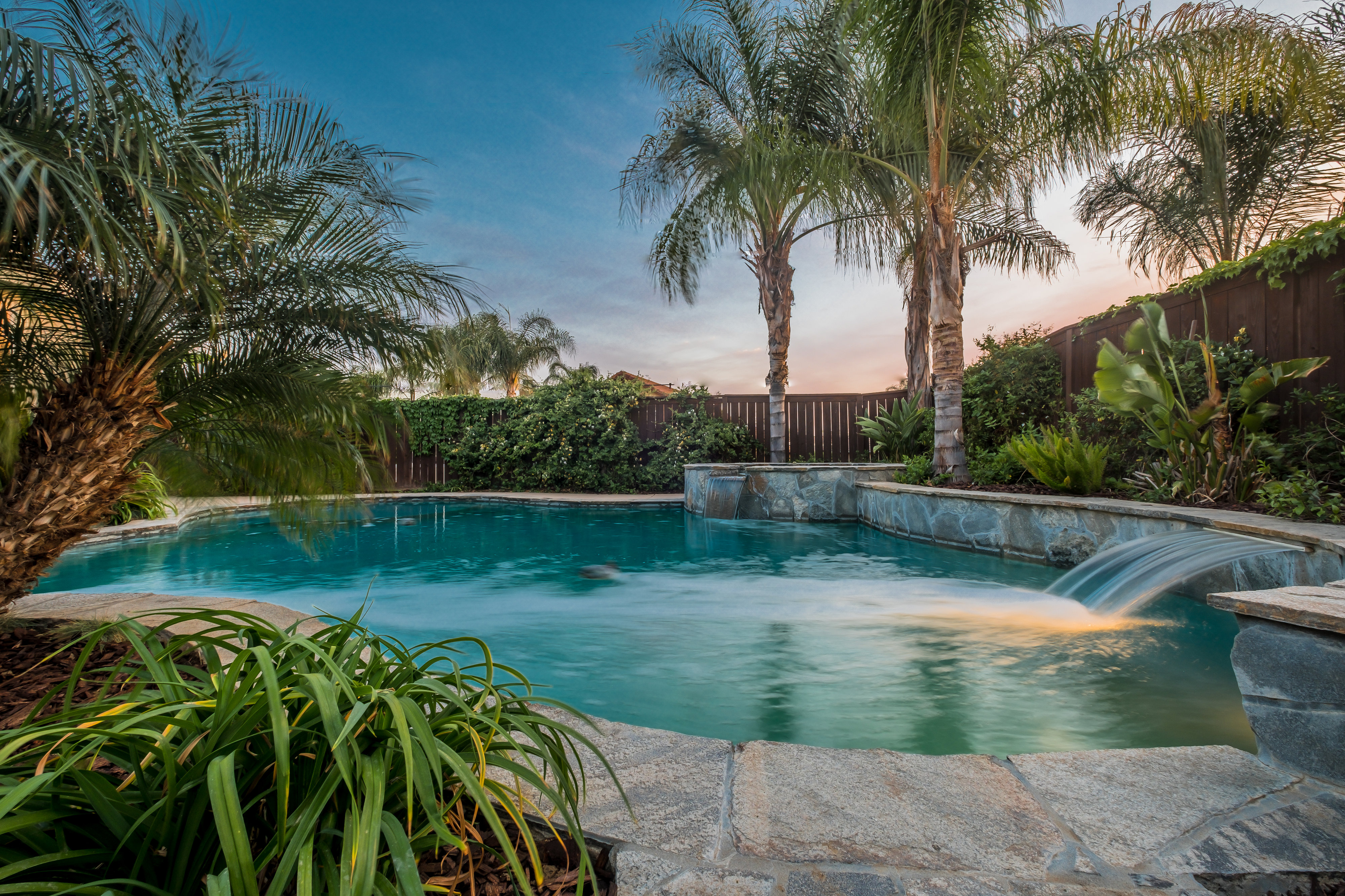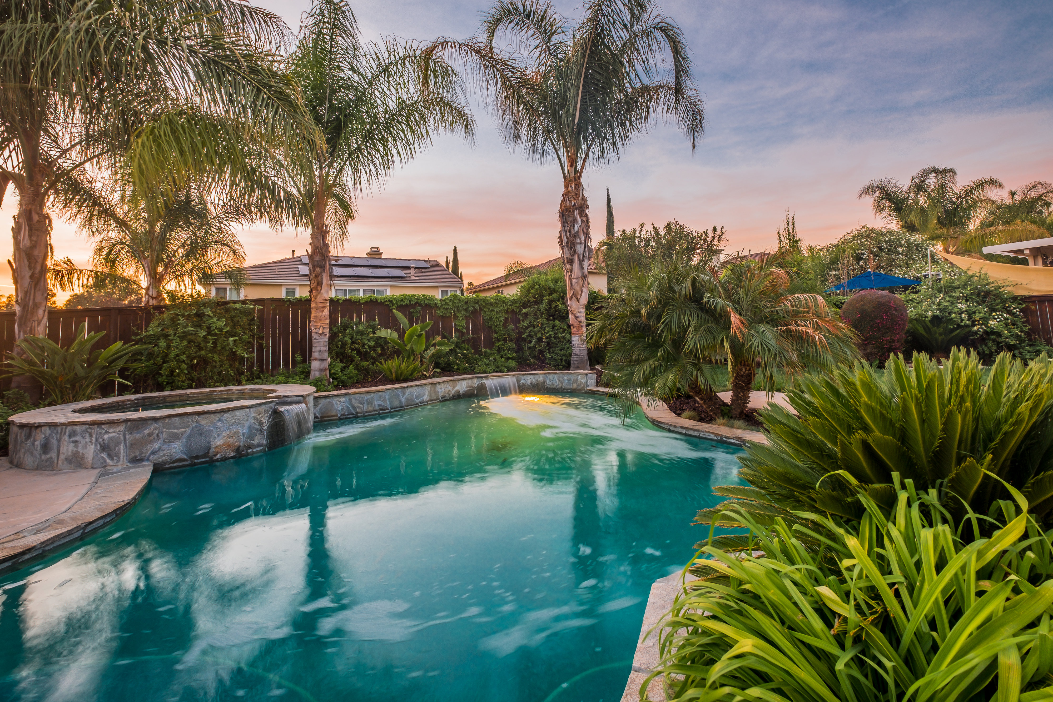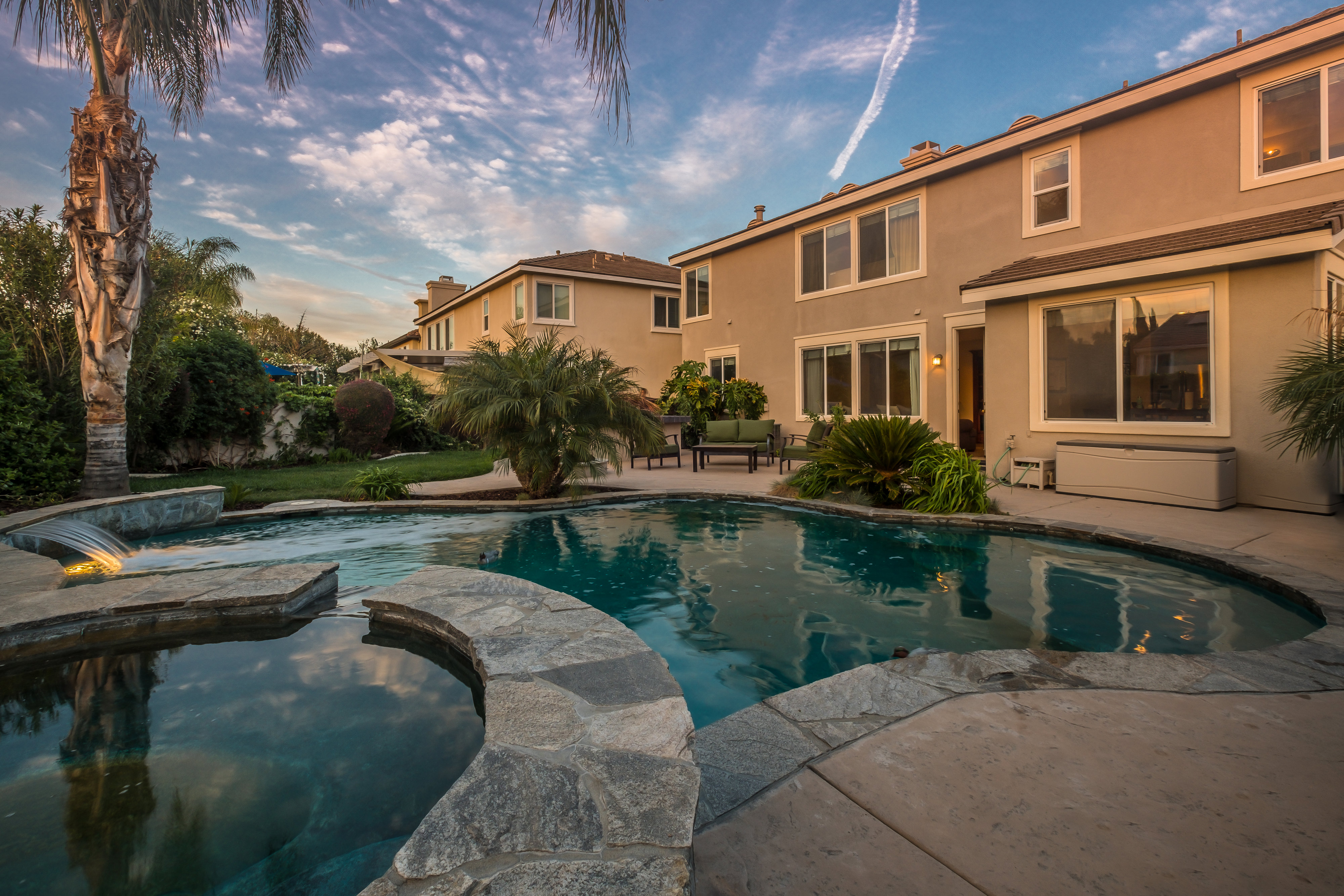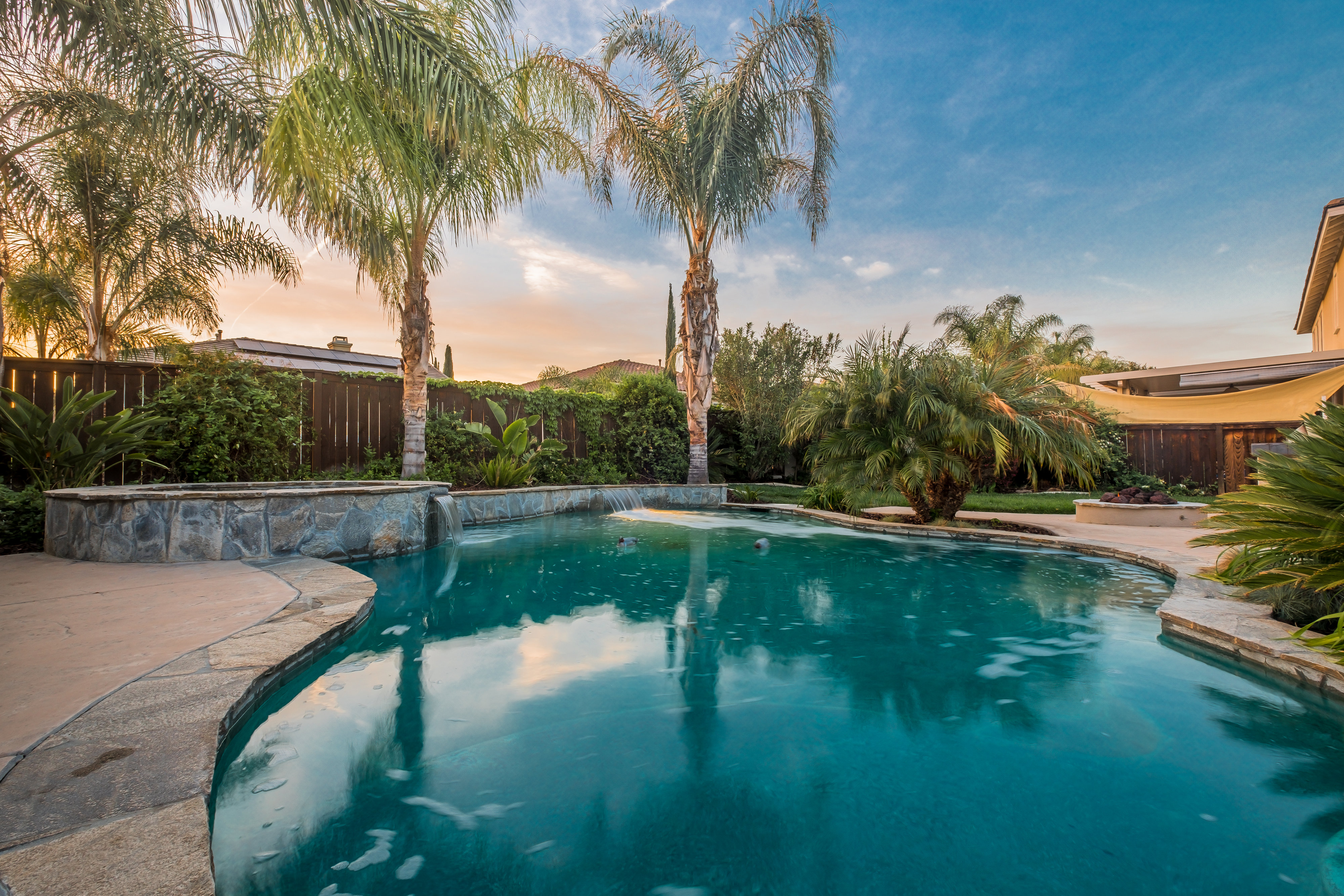 Stunning Murrieta Pool HomeĀ Turnkey pool home at the end of a cul-de-sac. Truly a feature-rich gem that openly flows from the moment of entry at the front door. The two-story foyer has an upper window that lets in plenty of natural light. The backyard is a tropical paradise from the lush landscape to the built-in barbeque, fire pit, spa and sparkling pool. The kitchen is an entertainer’s dream with granite counters, upgraded maple cabinets, double ovens, walk-in pantry, center island, eat-in dining area and oversized 20″ tile flooring. The kitchen opens up to the great room which features a fireplace and built-in entertainment center. There is even a downstairs bedroom, full bath, another 1/2 bath downstairs along with a sizeable office/den. The master suite is extremely spacious with a separate retreat to relax with the upstairs fireplace while enjoying our chilly Murrieta winter evenings. The master bath has separate shower, jetted soaking bathtub, 2 sinks and a very large walk-in closet. Upstairs laundry room with sink. Two of the three additional upstairs bedrooms have walk-in closets and ceiling fans along with a jack and jill bathroom-ideal for relatives and guests. 4-car tandem garage. Plenty of extra storage space. Walking distance to parks. Close and convenient to wineries, shopping, restaurants and award-winning Temecula schools. A definite must see today!Ā Stunning Murrieta Pool Home