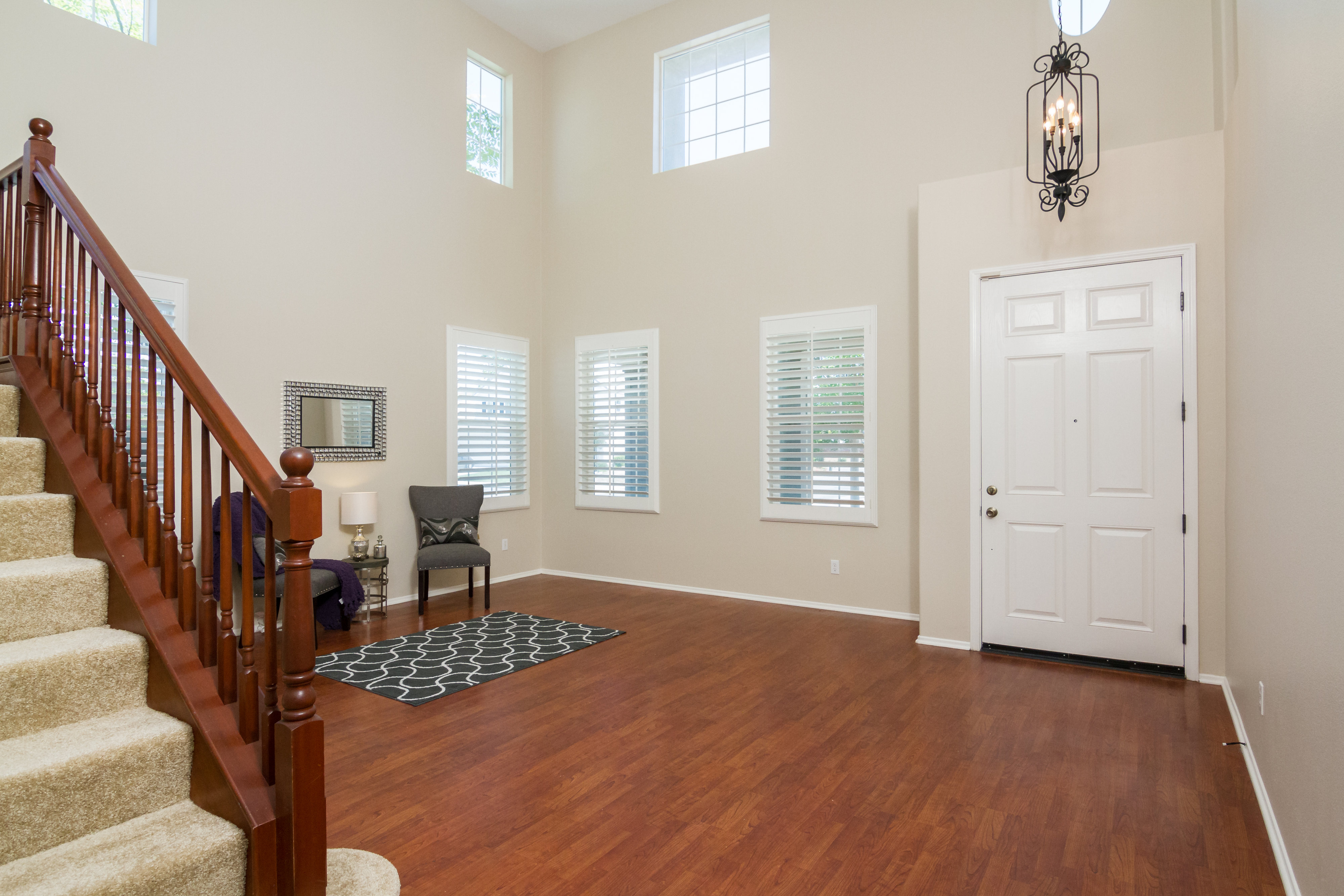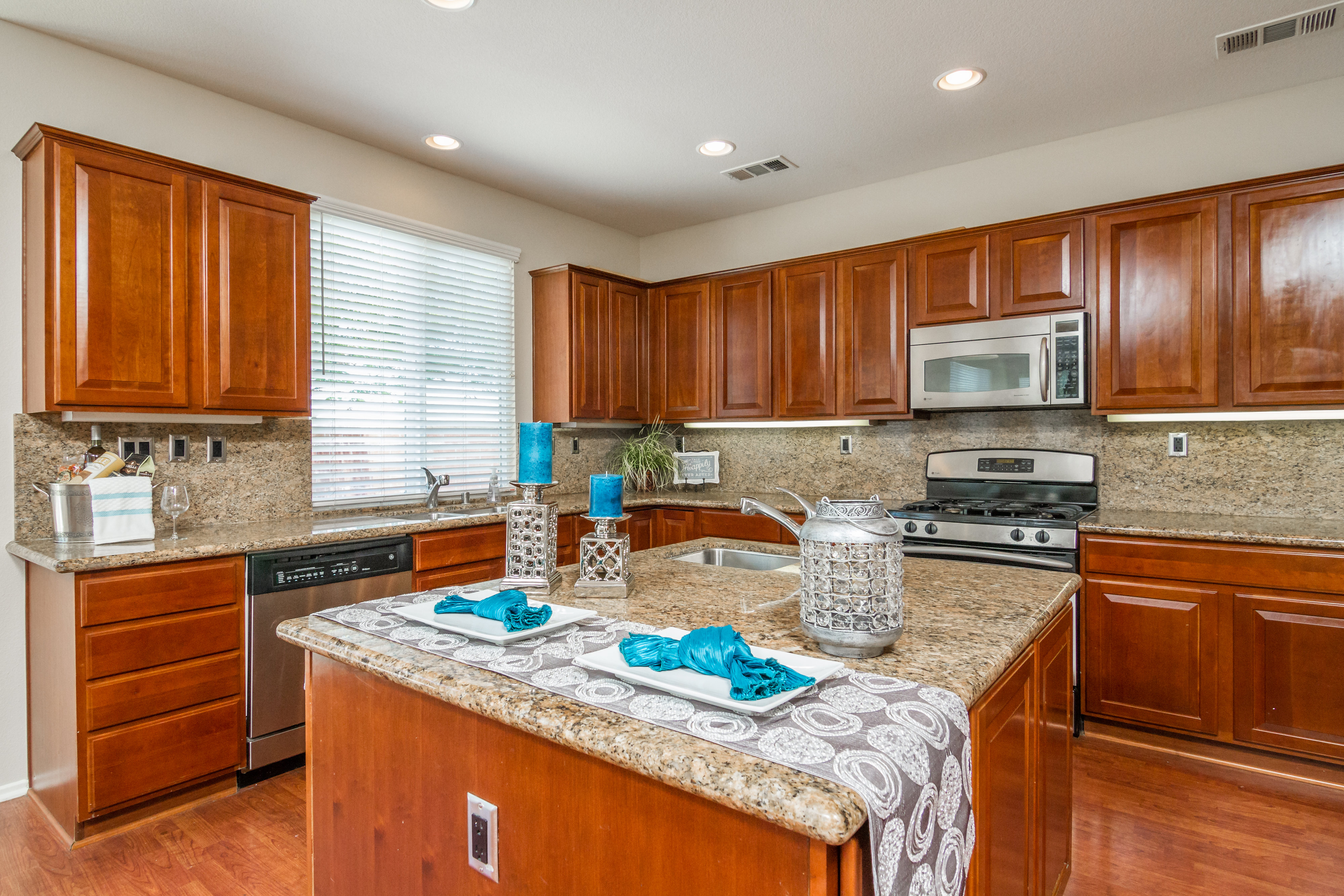 Stunning Pulte built Central Park home. Partial view from downstairs coupled with a spectacular view from the master bedroom. Truly an entertainer’s delight from the open entry complete with plantation shutters to the oversized kitchen complete with granite counters, center island, upgraded cabinetry and great room fireplace. Lovely curb appeal with this cul-de-sac home with no neighbors on one side. The backyard features professional hardscape and fruit trees. Oversized side yard is ideal for playground or hobbies. Ceiling fans throughout. The upper windows from this 2-story entry let in lots of beautiful light. The downstairs bedroom is ideal for guest privacy. The upstairs features a loft great for teens, craft projects or a home office. The oversized master suite features dual sinks, jetted tub, granite countertops and large walk-in closet. Freshly painted and ready for immediate move in. 5 BR / 3 BA. Exceptional community amenities including hiking trails, clubhouse, swimming pool, spa, tennis court, basketball court, volleyball, tot lots and hiking trails. Award winning Temecula schools. Low HOA and low taxes. Call for your tour today!