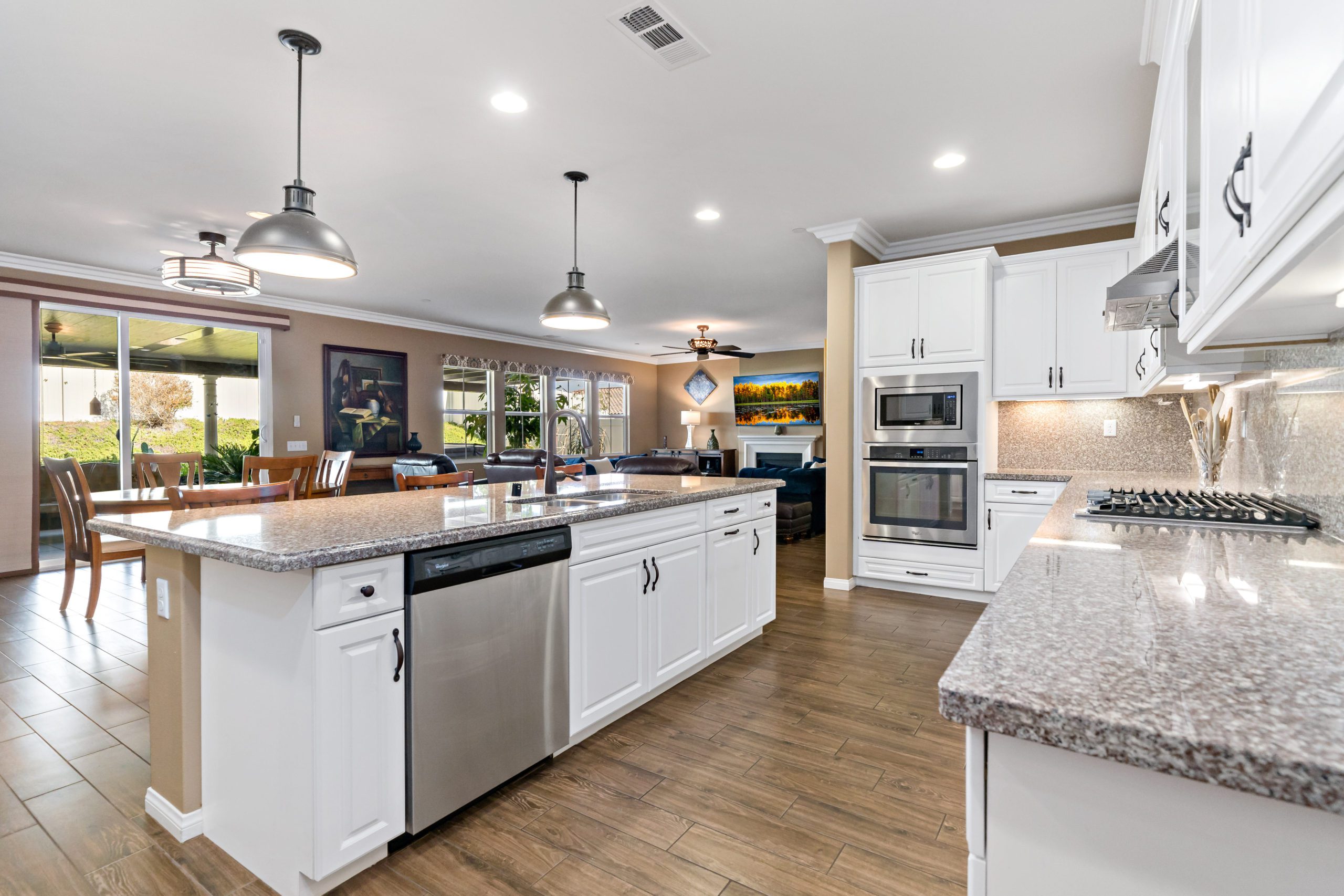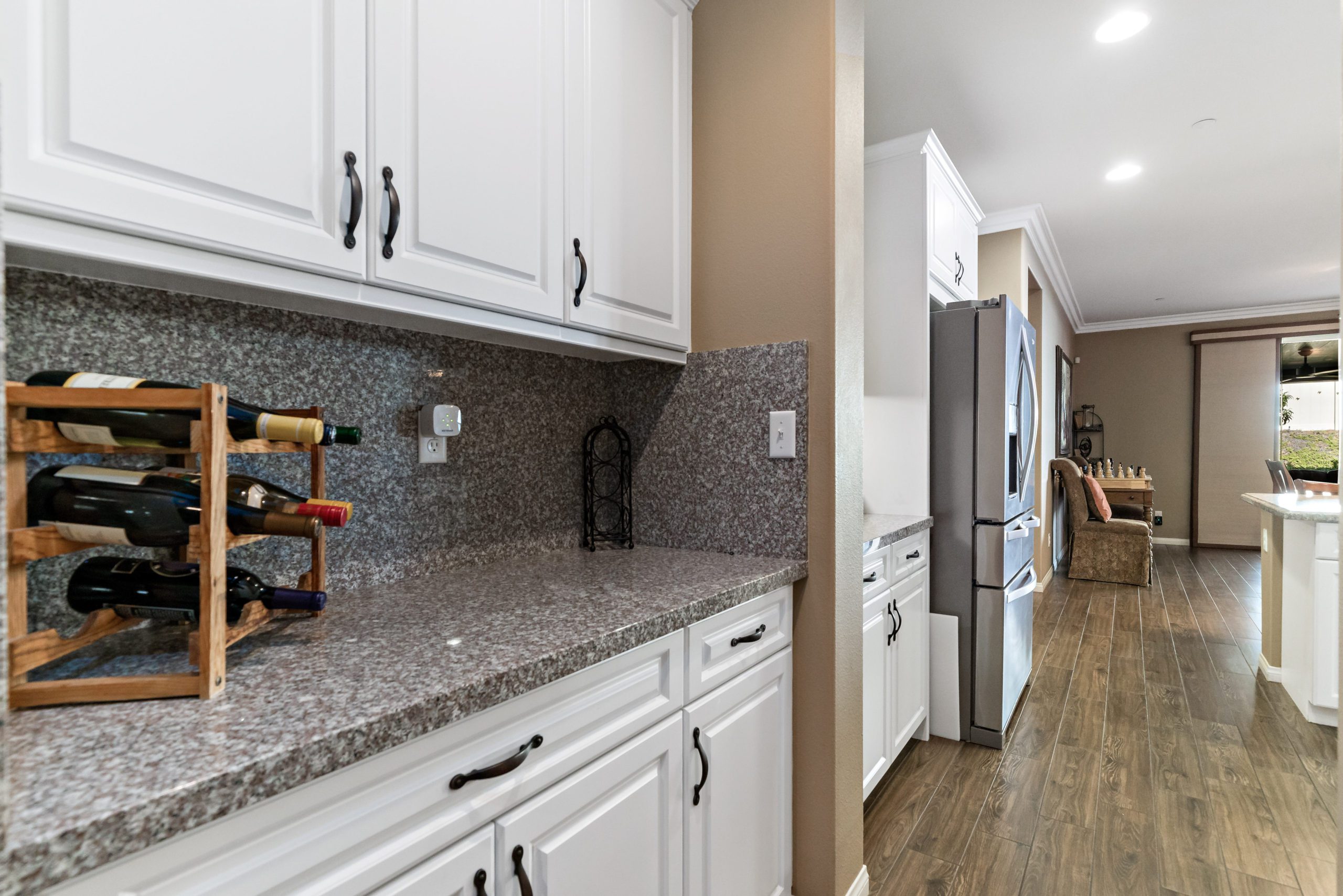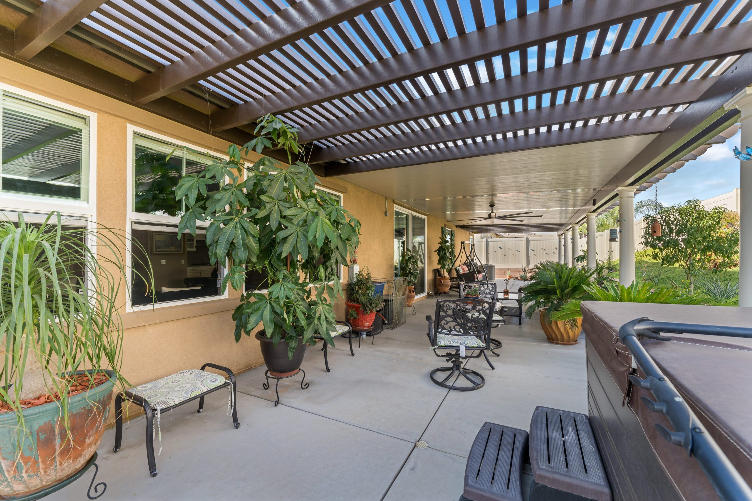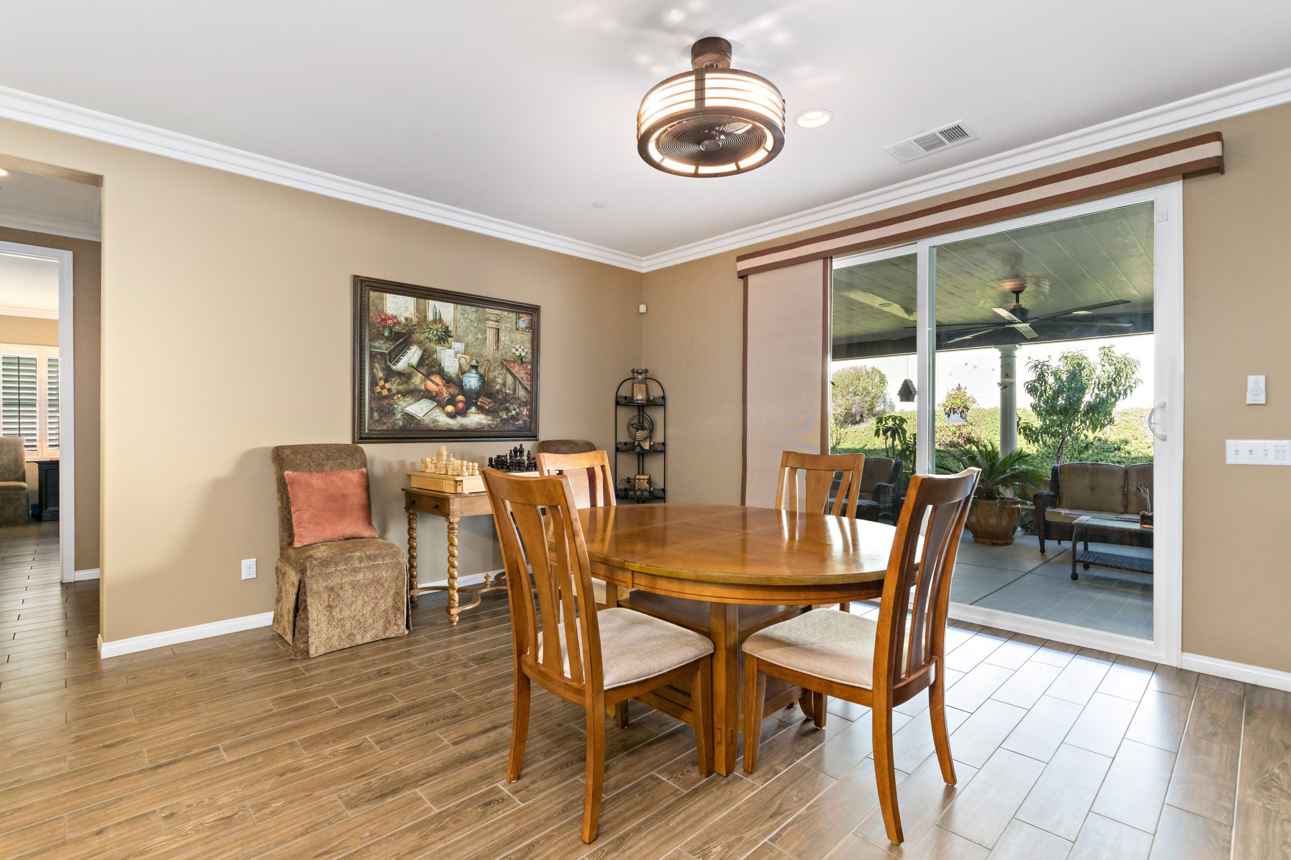 Stunning and immaculate single story home in the popular community of Mahogany Hills. Marvelous curb appeal with lighted custom walkway and wrought iron gated double archway entry. This lovely gem warmly and impressively greets even the pickiest of buyers. Open concept floor plan with tile plank flooring, upgraded baseboards and crown moulding in many rooms. The warm neutral tones, upgraded light fixtures and ceiling fans create an exceptionally warm and peaceful ambiance. The entertainer’s dream kitchen has a sizeable center island, eat-in kitchen, white cabinetry with handles/pulls, butler’s pantry, granite counters, stainless steel appliances and walk-in pantry. Separate dining room. The generously sized family room includes a fireplace ideal for enjoying our chilly winter evenings. The master suite has it’s own retreat area perfect for morning coffee and evening movies. The master bath has an upgraded soaking tub, walk-in shower, dual vanity sinks, gorgeous glass tile design with bronze fixtures and walk-in closet. The guest suite at the front of the home allows guests their own bathroom and complete privacy. The backyard allows for plenty of relaxation. Alumawood patio cover along with low maintenance landscape. There’s even a mountain view from the side and front. 3-car tandem garage with epoxy coated flooring. 6 paid for solar panels. Close proximity to community dog park, walking trails and top rated Lisa J Mails elementary school. Call to tour today!