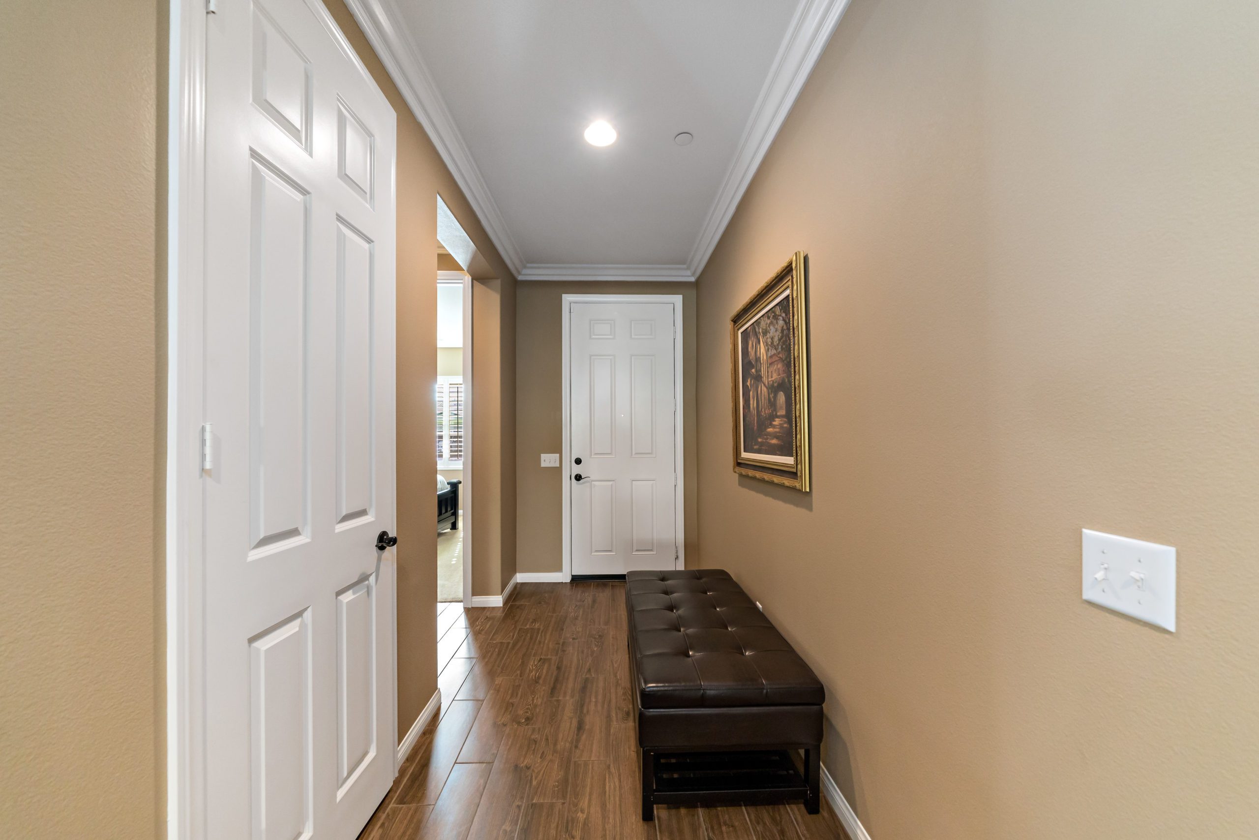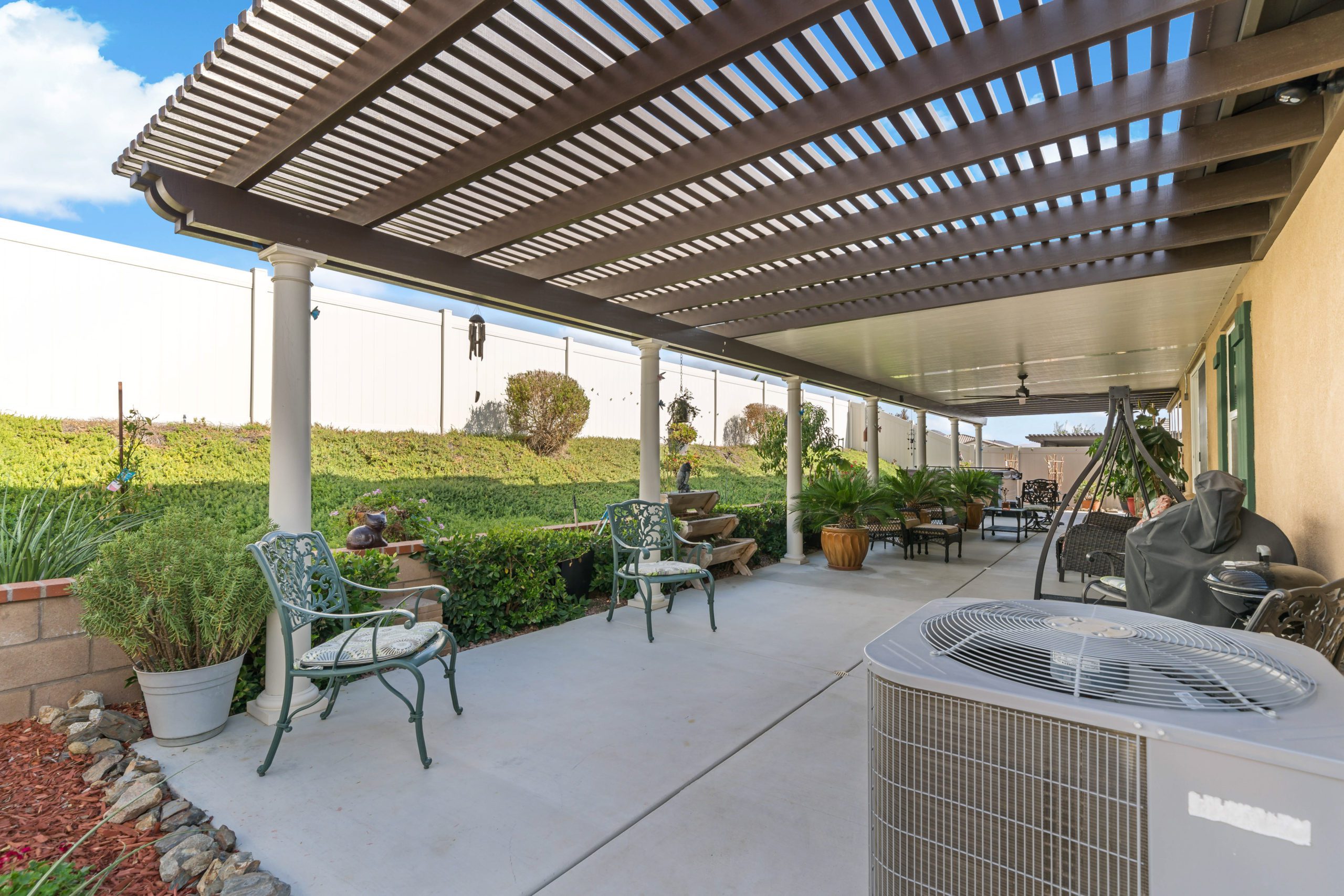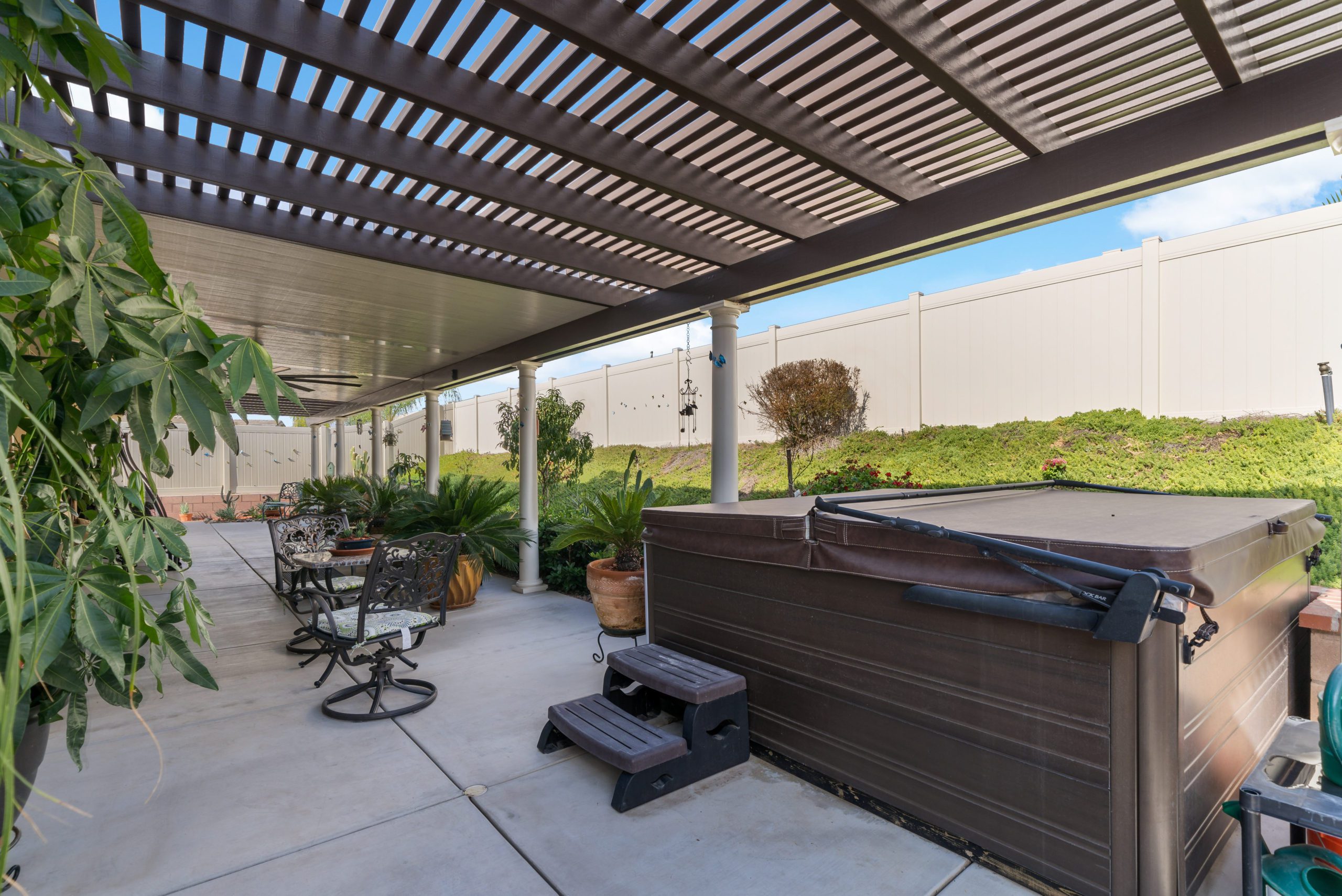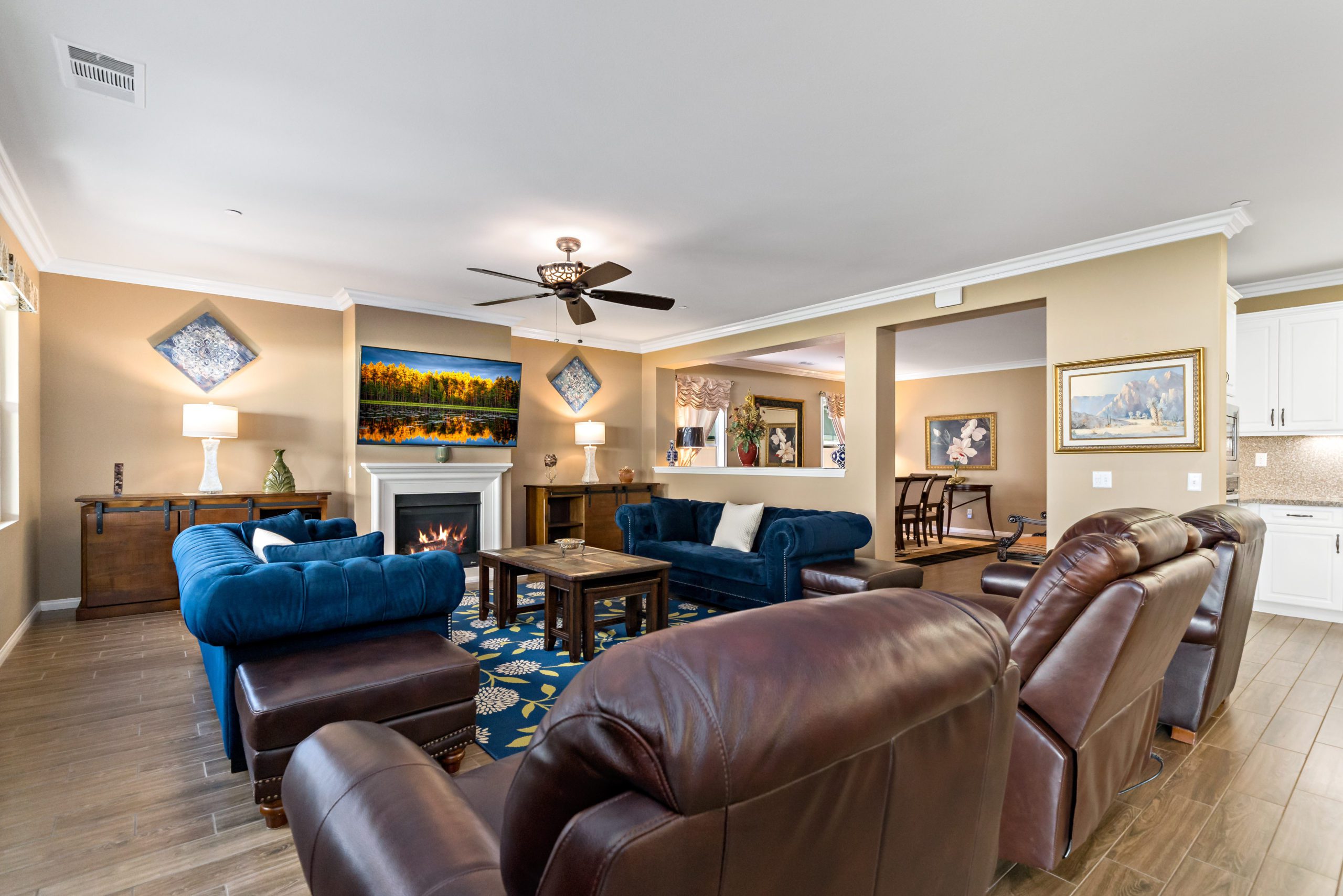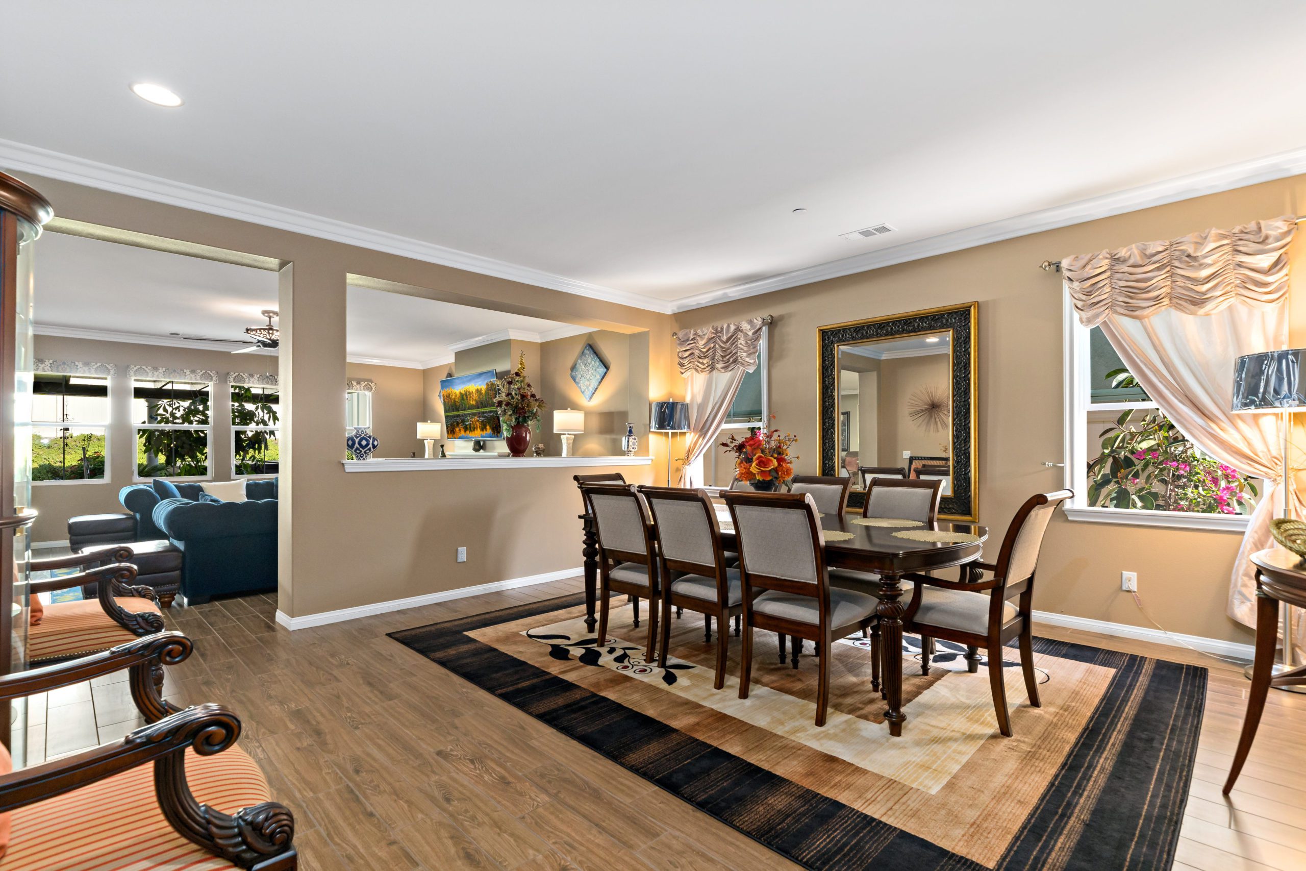 Stunning and immaculate single story home in the popular community of Mahogany Hills. Marvelous curb appeal with lighted custom walkway and wrought iron gated double archway entry. This lovely gem warmly and impressively greets even the pickiest of buyers. Open concept floor plan with tile plank flooring, upgraded baseboards and crown moulding in many rooms. The warm neutral tones, upgraded light fixtures and ceiling fans create an exceptionally warm and peaceful ambiance. The entertainer’s dream kitchen has a sizeable center island, eat-in kitchen, white cabinetry with handles/pulls, butler’s pantry, granite counters, stainless steel appliances and walk-in pantry. Separate dining room. The generously sized family room includes a fireplace ideal for enjoying our chilly winter evenings. The master suite has it’s own retreat area perfect for morning coffee and evening movies. The master bath has an upgraded soaking tub, walk-in shower, dual vanity sinks, gorgeous glass tile design with bronze fixtures and walk-in closet. The guest suite at the front of the home allows guests their own bathroom and complete privacy. The backyard allows for plenty of relaxation. Alumawood patio cover along with low maintenance landscape. There’s even a mountain view from the side and front. 3-car tandem garage with epoxy coated flooring. 6 paid for solar panels. Close proximity to community dog park, walking trails and top rated Lisa J Mails elementary school. Call to tour today!