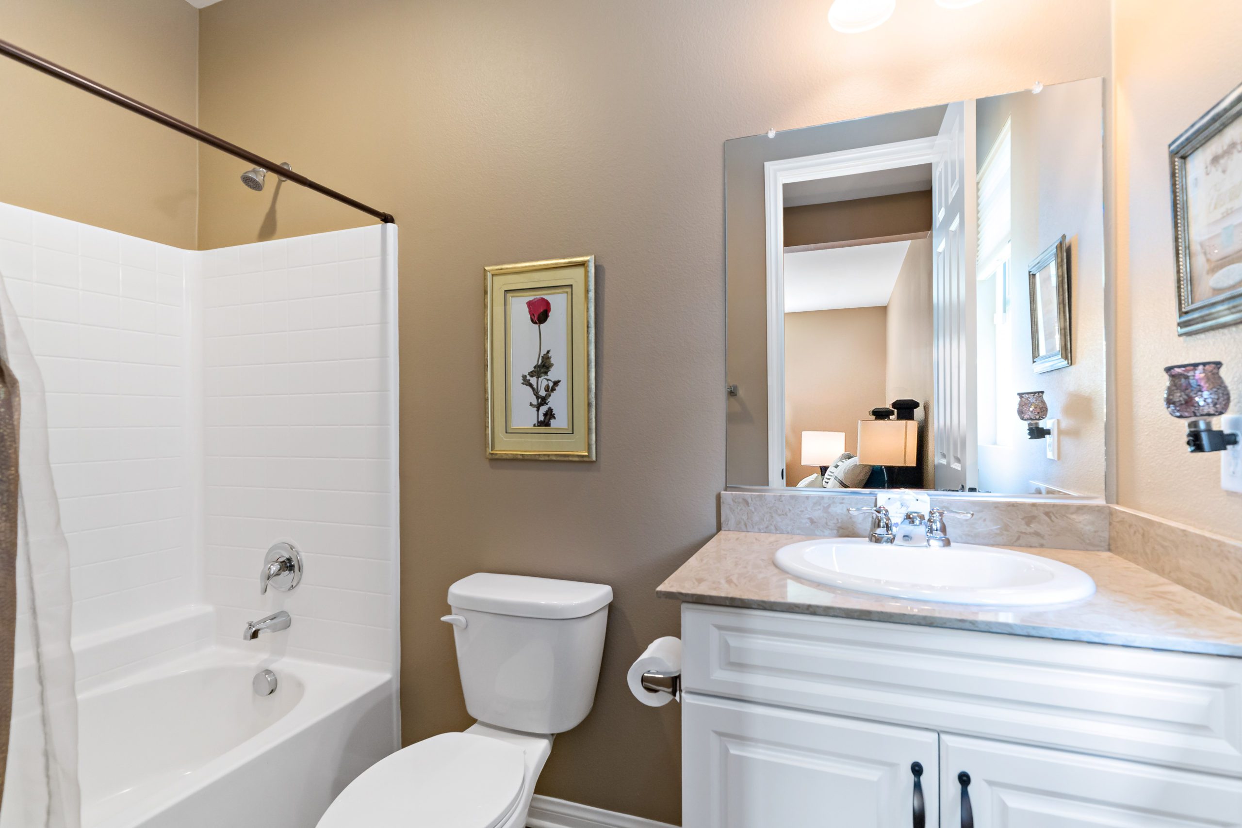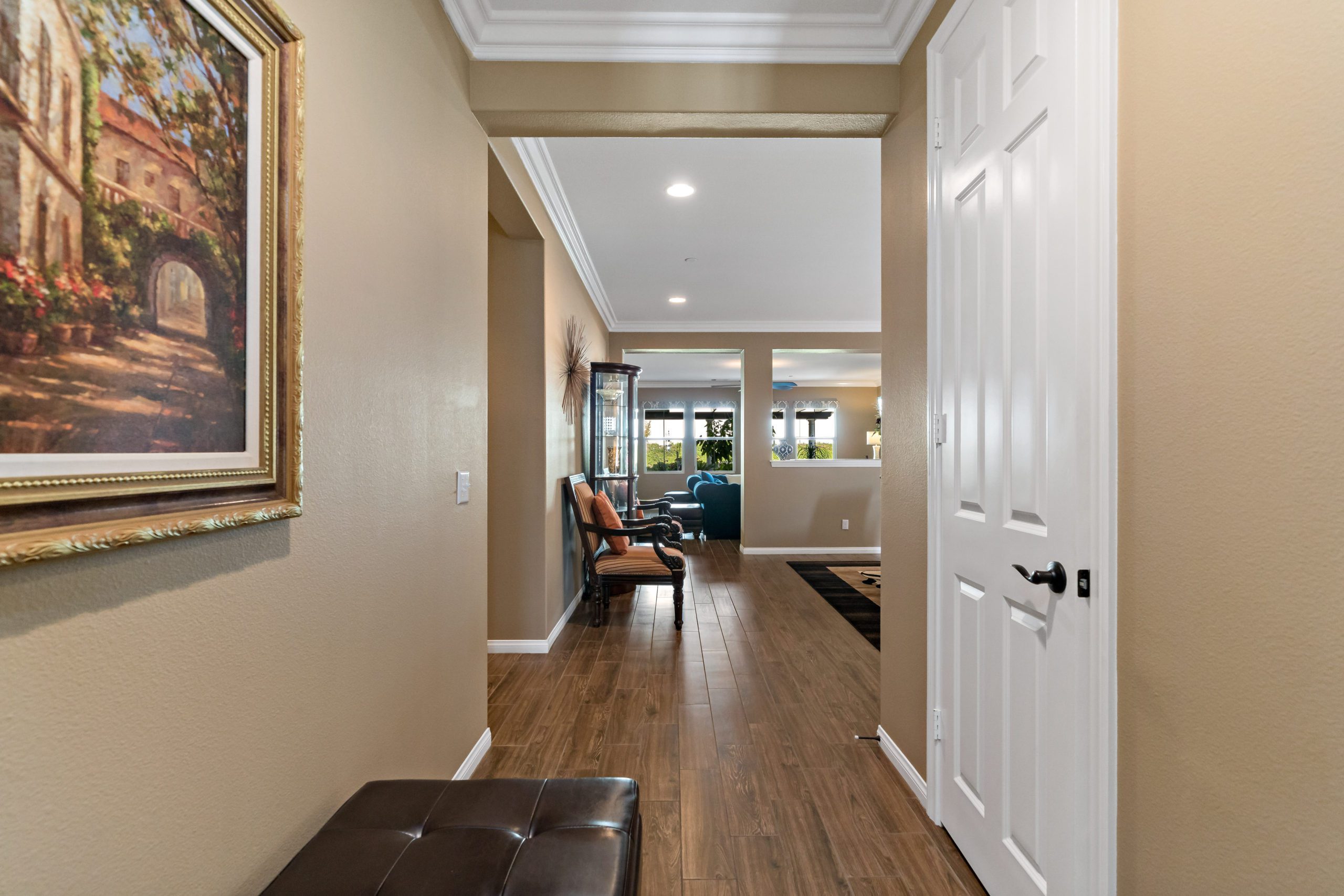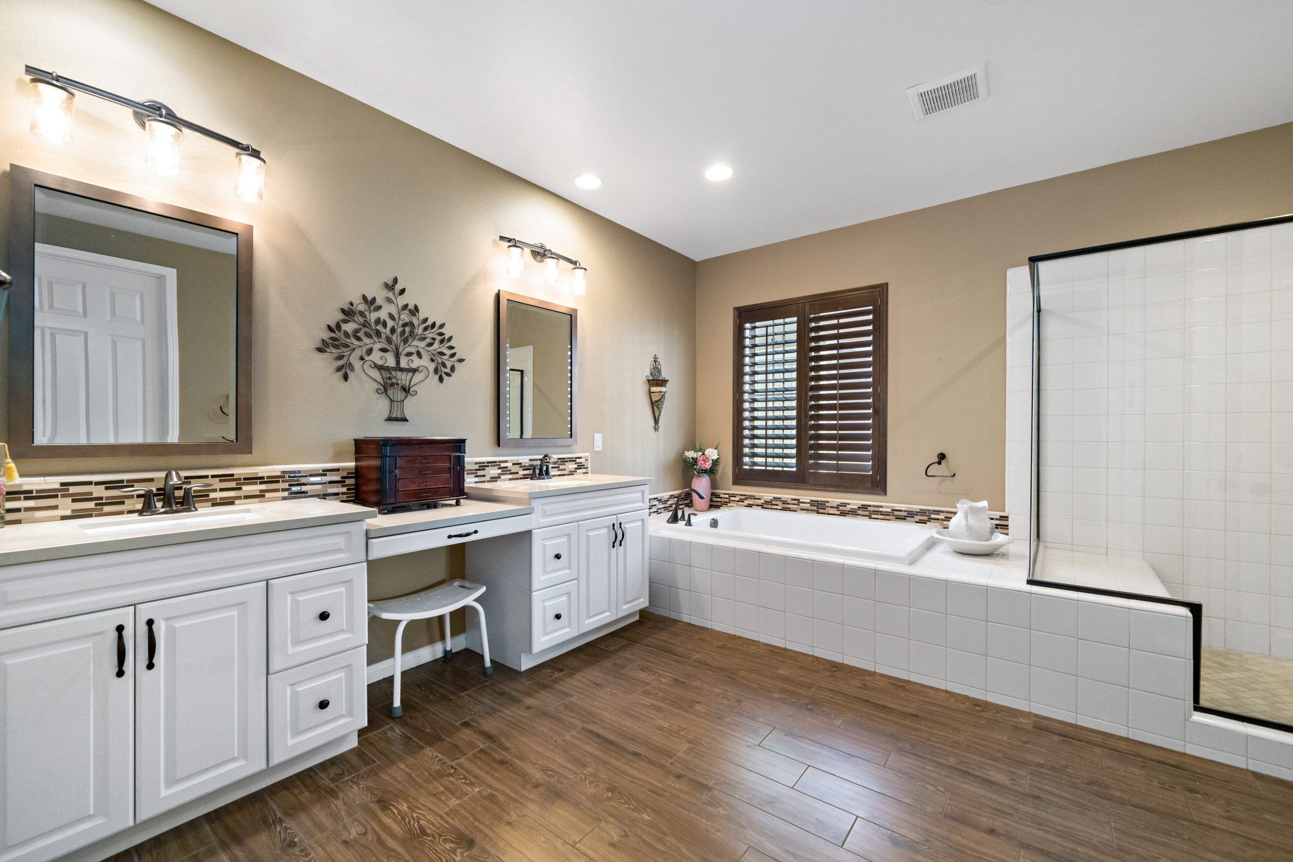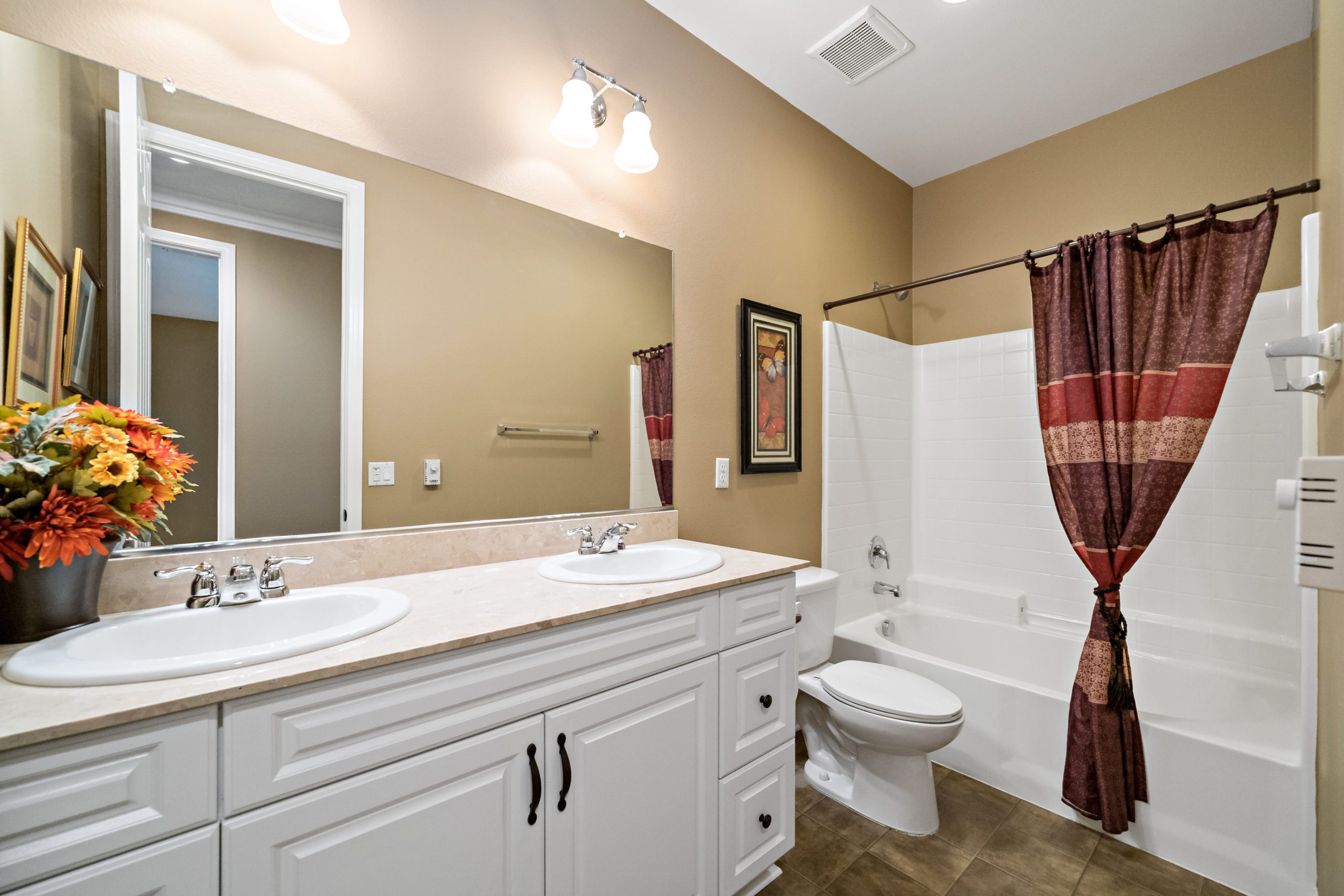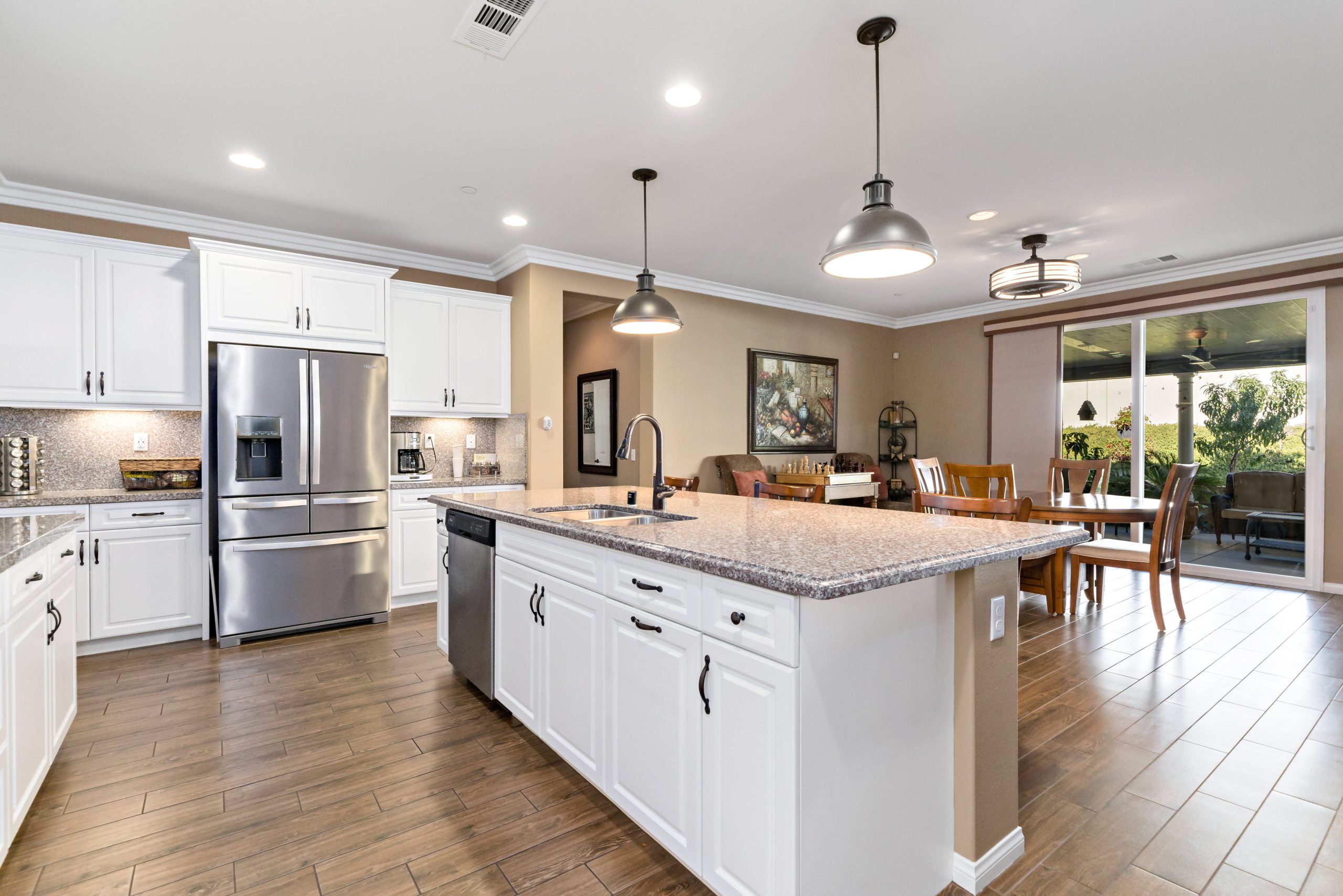Stunning and immaculate single story home in the popular community of Mahogany Hills. Marvelous curb appeal with lighted custom walkway and wrought iron gated double archway entry. This lovely gem warmly and impressively greets even the pickiest of buyers. Open concept floor plan with tile plank flooring, upgraded baseboards and crown moulding in many rooms. The warm neutral tones, upgraded light fixtures and ceiling fans create an exceptionally warm and peaceful ambiance. The entertainer’s dream kitchen has a sizeable center island, eat-in kitchen, white cabinetry with handles/pulls, butler’s pantry, granite counters, stainless steel appliances and walk-in pantry.