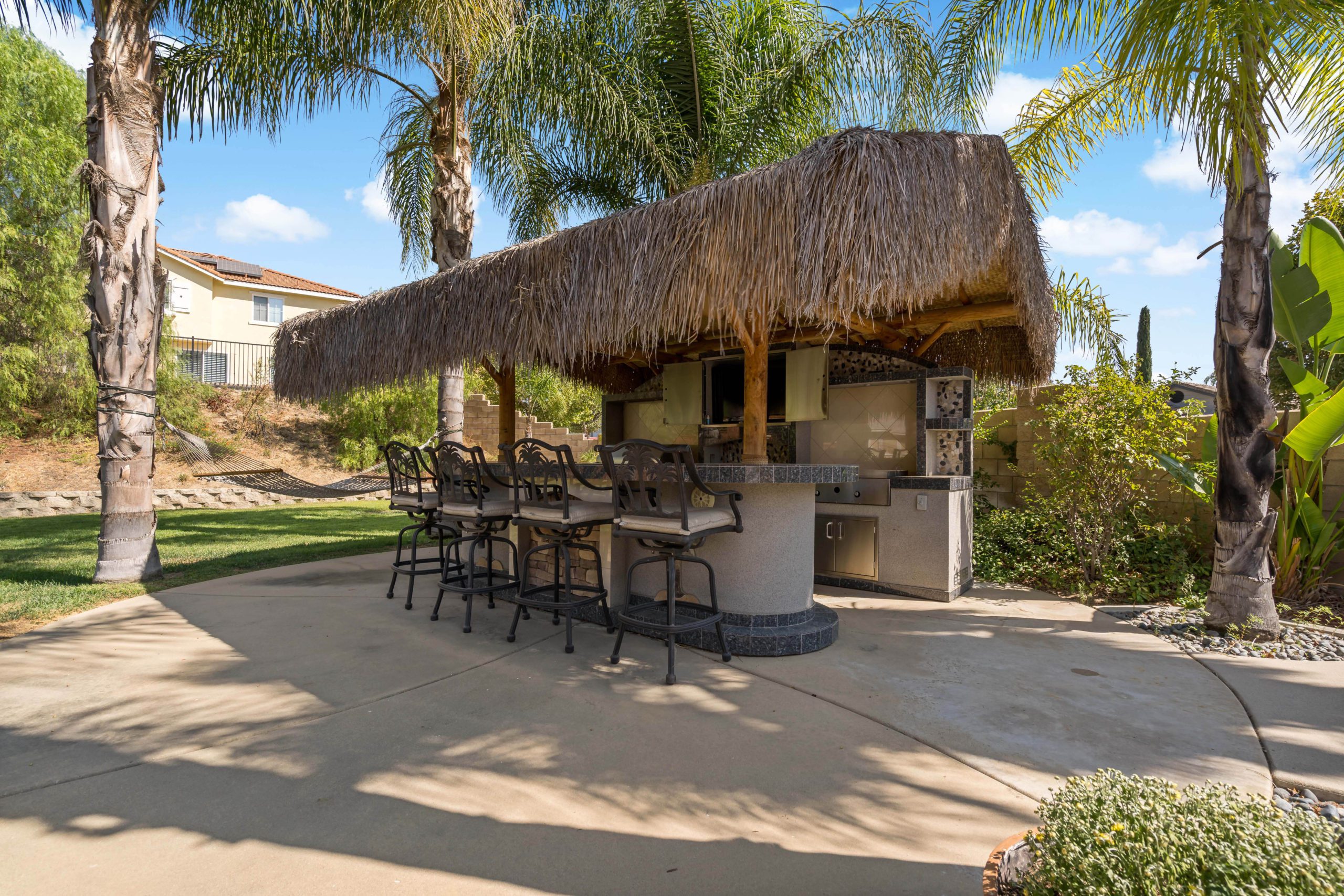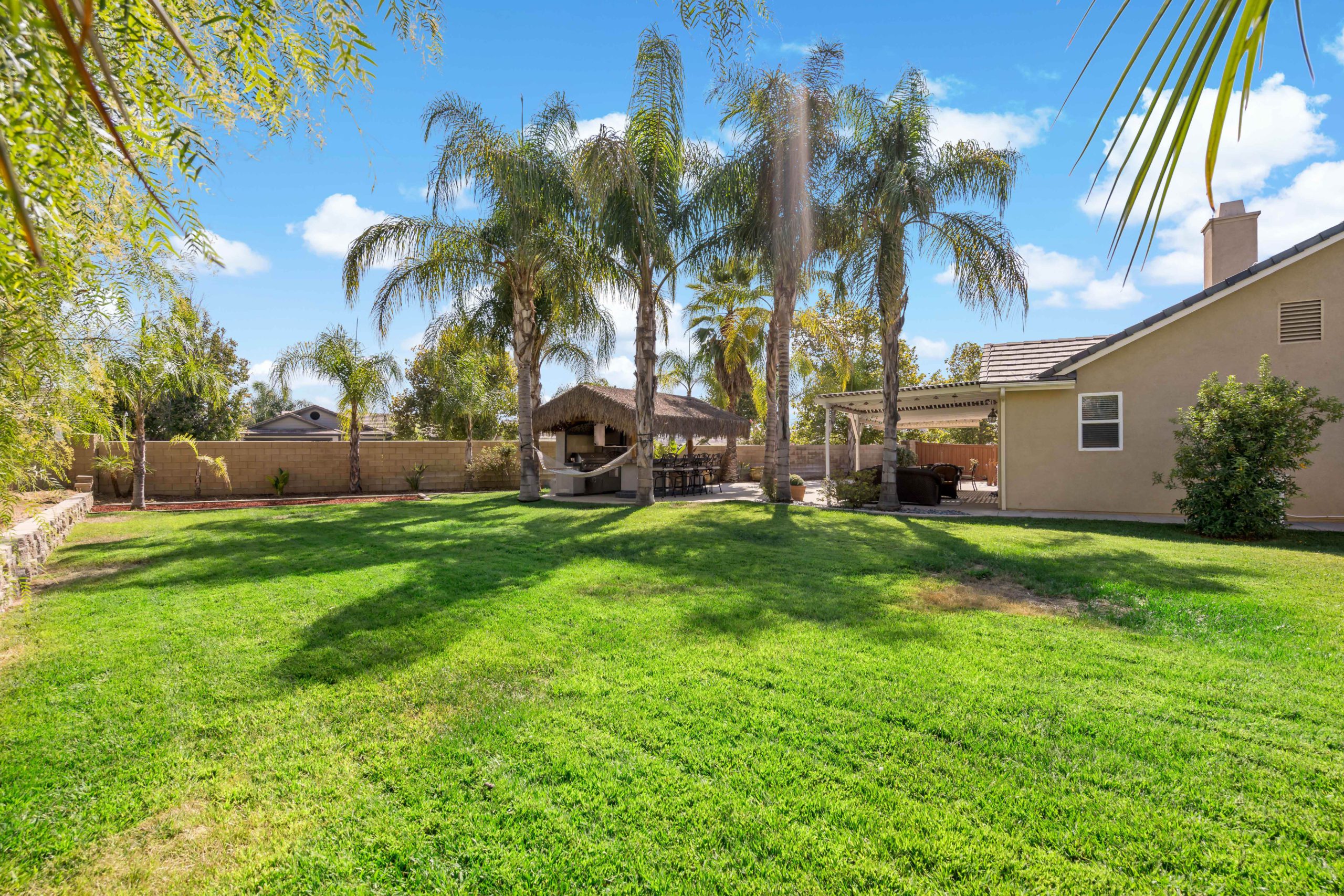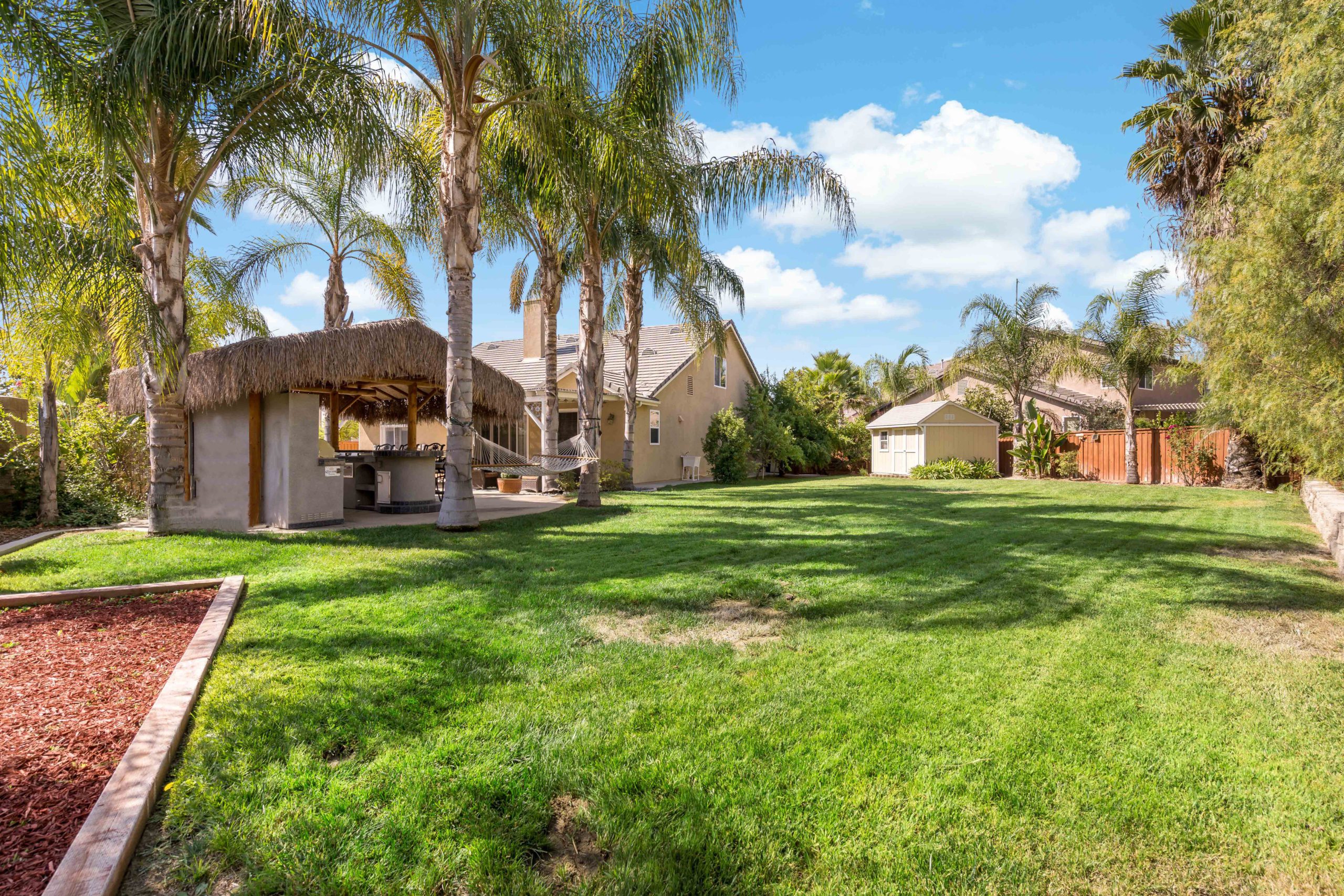 Truly a rare and remarkable gem in this home. Situated at the end of a cul-de-sac this Temecula entertainer’s paradise is ready to go! Two downstairs bedrooms including a generously sized master suite complete with French doors that open up to the backyard treasure. There is also a bonus room (non-permitted) downstairs that was previously the 3rd car garage. Upstairs are two more bedrooms with plenty of room to spread out. The kitchen has been completely remodeled and includes granite counters, glass tile backsplash, white cabinets, sizeable center island, walk-in pantry and stainless steel appliances. The open concept family room comes complete with built-ins and inviting fireplace. The double sliding glass doors from the great room further enhance the smooth flow of this layout which lead to the amazing backyard complete with Palapa, built in barbeque, flat grill, refrigerator and TV. There is even a relaxing firepit and also darling outdoor storage shed which matches the house. This is one of the larger lots in this popular community that can easily accommodate a large pool (has already been pre-plumbed). Award winning Temecula schools. Close and convenient to shopping, dining and local wineries. Call to tour today! Temecula entertainer’s paradise