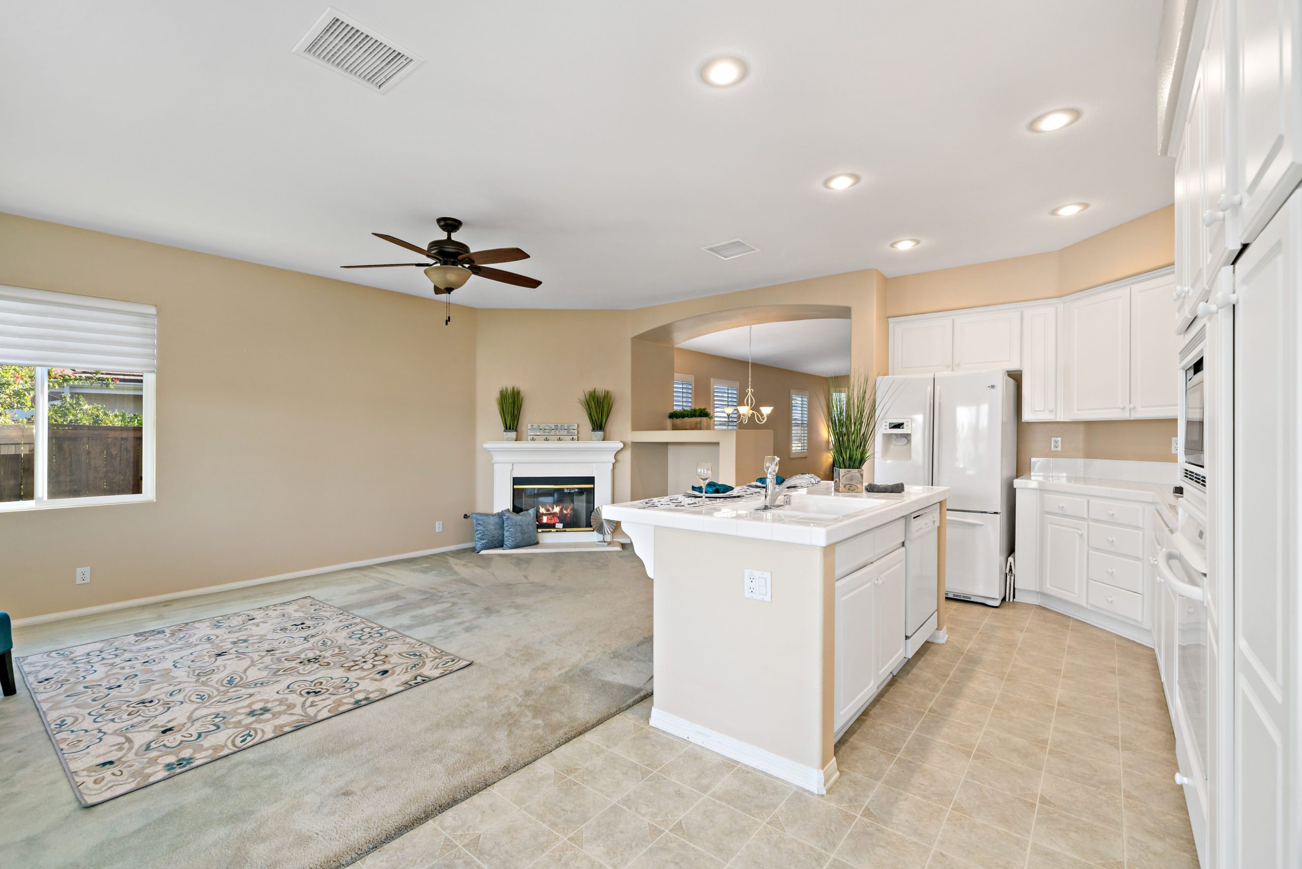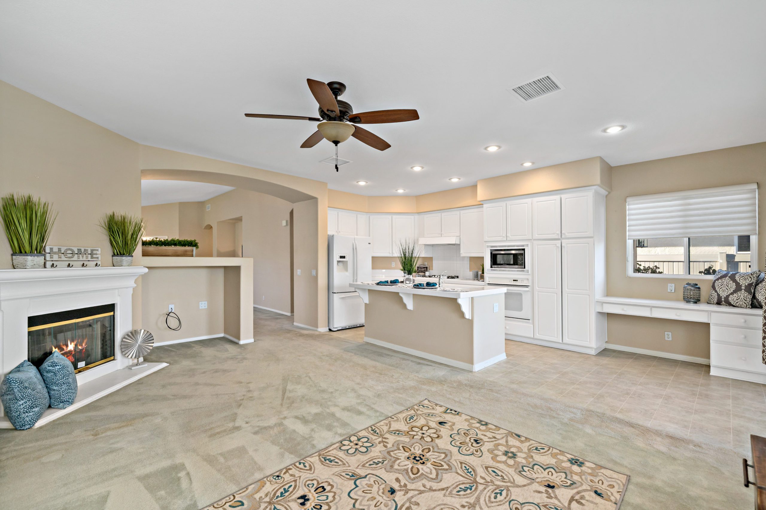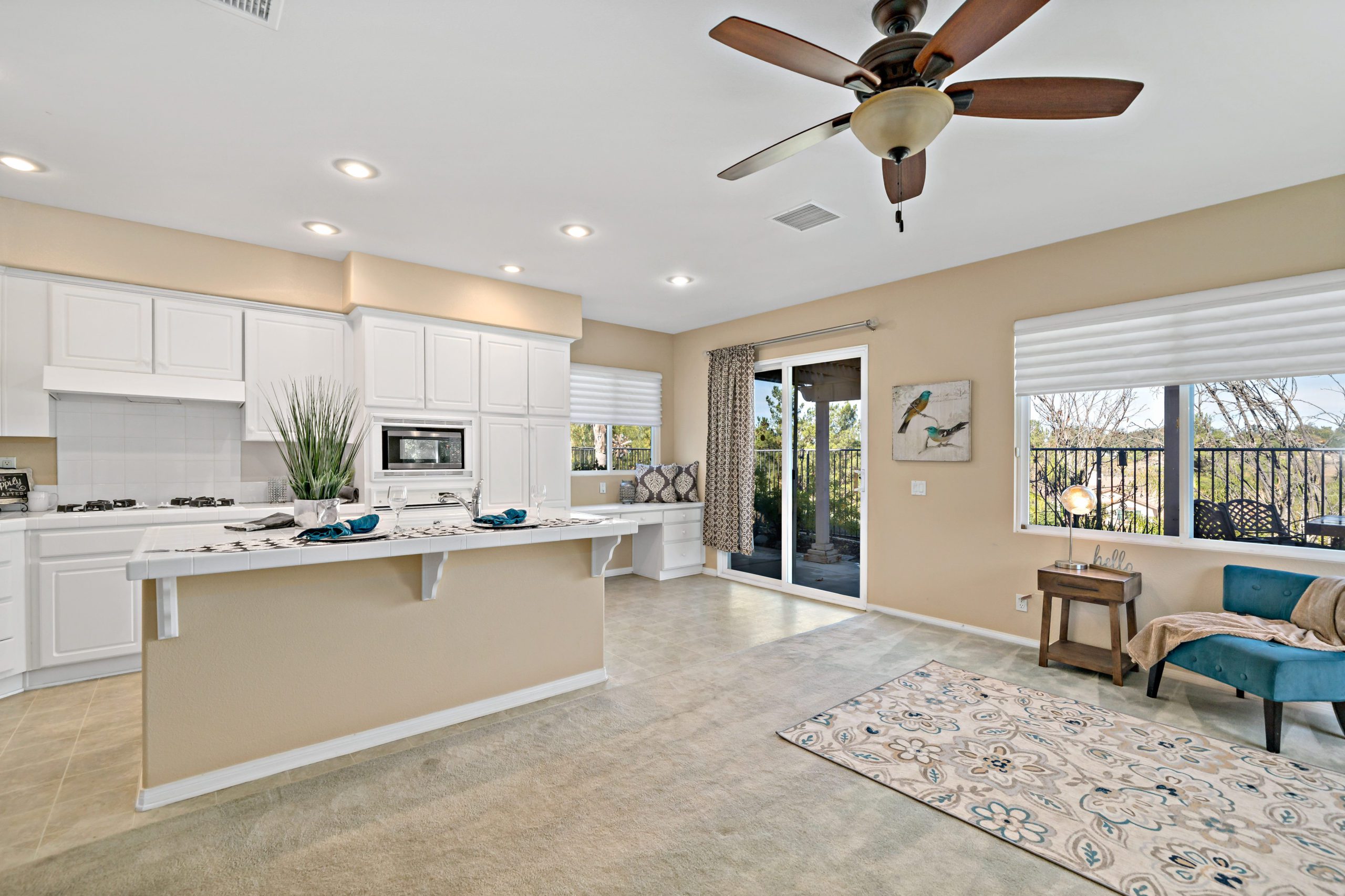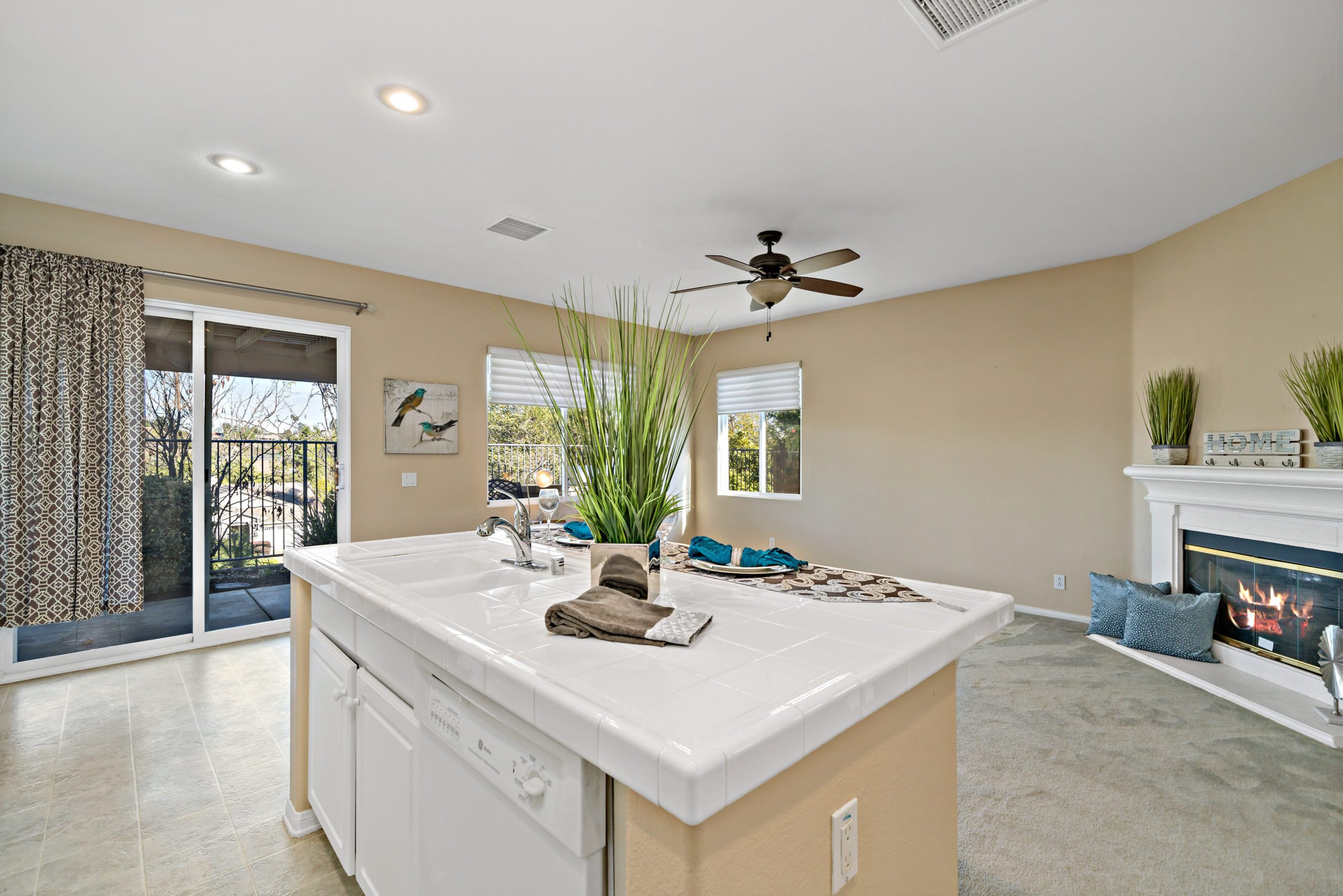 Temeku Hills golf course community. Enjoy this open concept beauty with a spacious living/dining room that flows smoothly into the kitchen/great room. The kitchen features a center island, eat-in area, built-in desk and white cabinetry. The great room has a corner fireplace-ideal for enjoying our chilly Temecula evenings. There are two bedrooms plus a front office/library which can easily be converted into a 3rd bedroom in this rare floor plan single level home. 2 full baths. The sizable master suite includes a large walk-in closet, separate shower and soaking tub. Plantation shutters in most rooms. Newer air conditioner, water heater and garbage disposal. Complete with outdoor barbeque, too! This home is situated in close proximity to Temeku’s clubhouse. The Temeku Hills neighborhood offers plenty of amenities including clubhouse, pools, tennis courts, gym and meeting rooms. Low taxes/low HOA. Close and convenient to area wineries, shopping and dining. Award winning Temecula schools. Call to schedule your tour!
