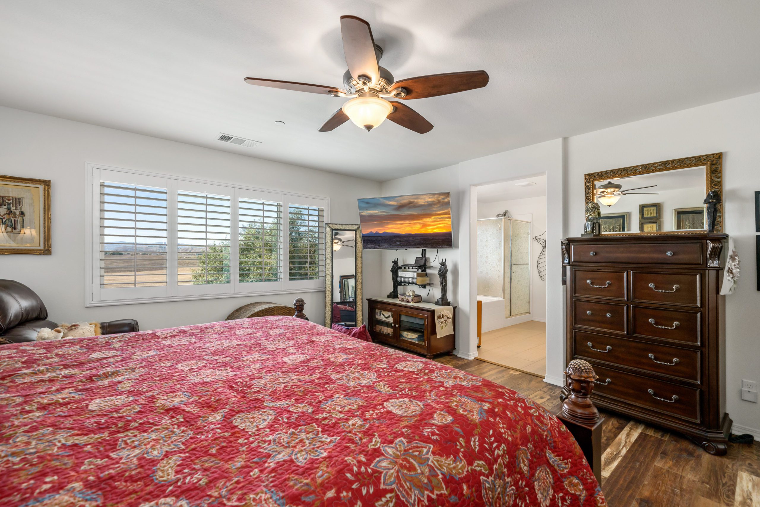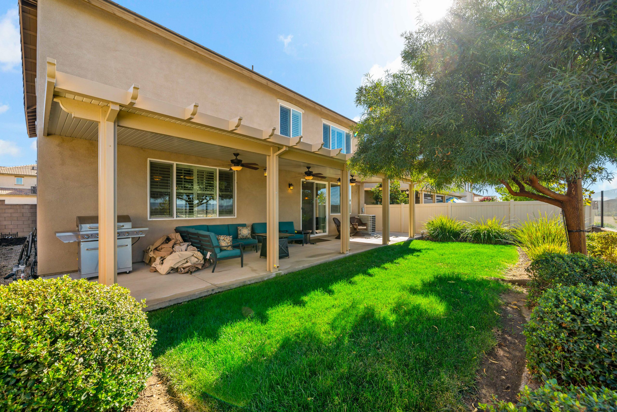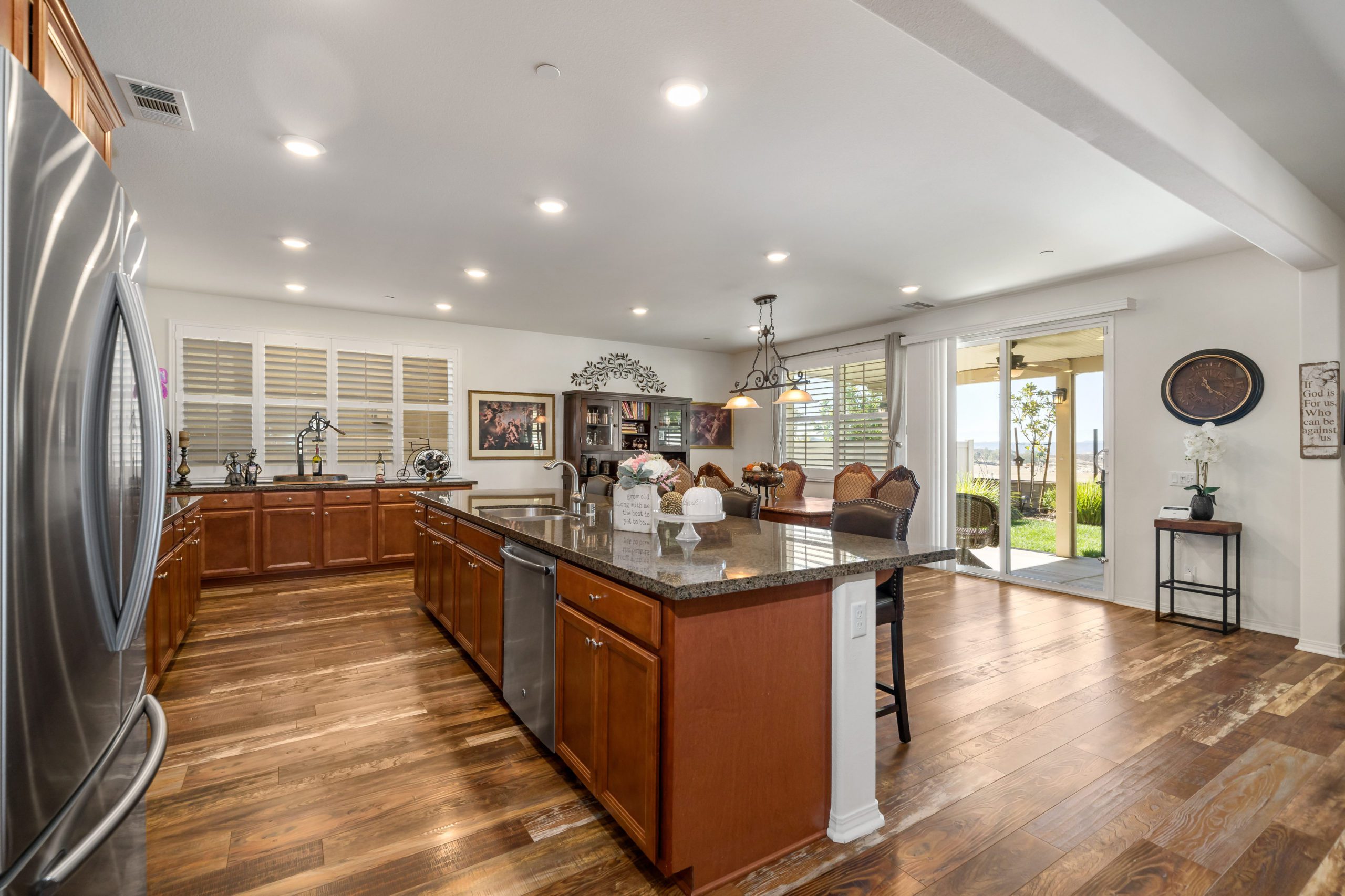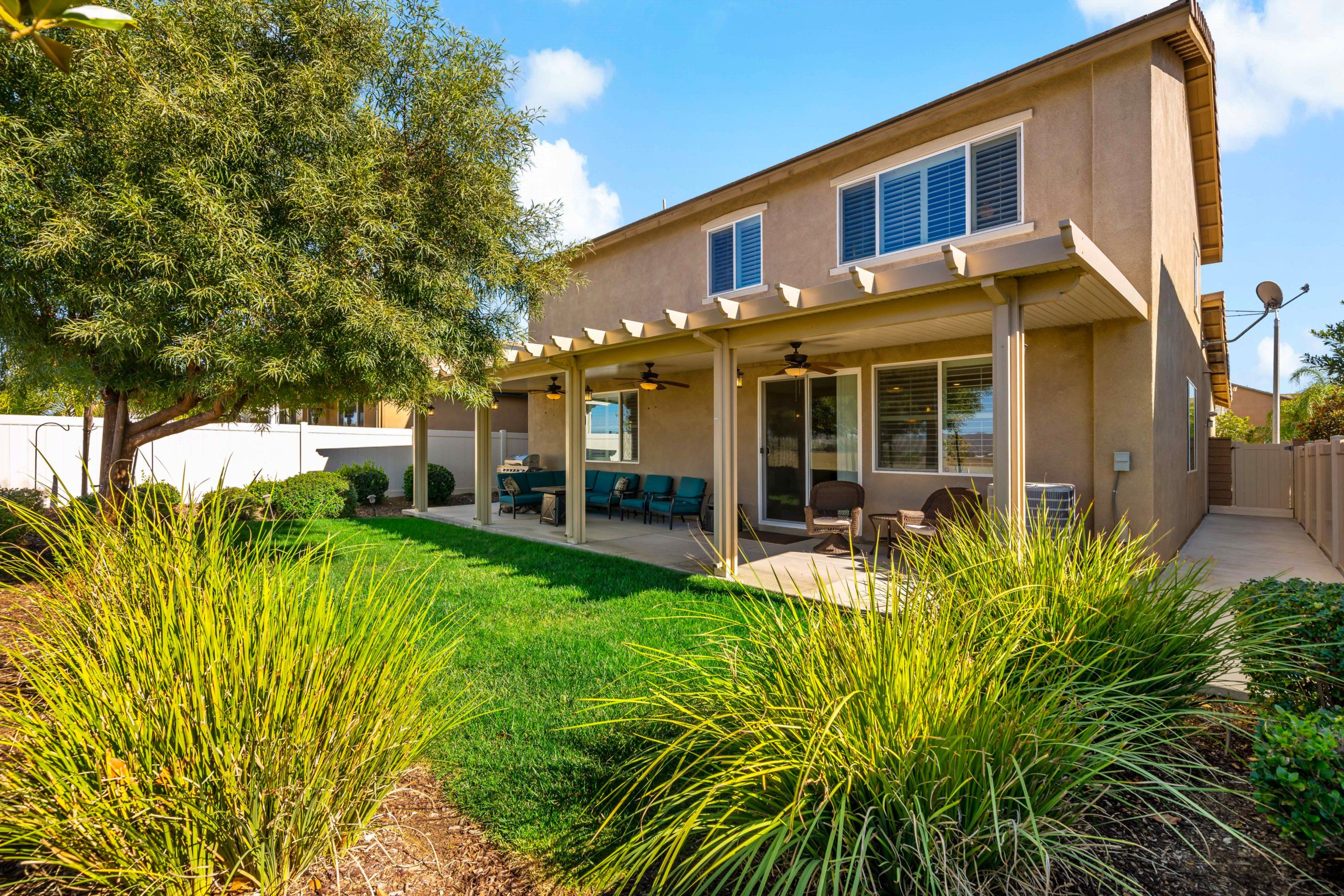 Welcome to the popular master planned community of Rancho Bella Vista. This home is truly over the top from the tremendous upgrades to the spectacular VIEWS from the backyard. From the moment of entry the unique, richly exotic Global Reclaim Worldly Hue flooring throughout will impress even the pickiest of buyers! The open concept kitchen that nicely flows through to the great room is an entertainer’s delight with gorgeous granite counters, side buffet, oversized center island, large walk-in pantry, double ovens and 5-burner stove. The great room features a beautiful corner fireplace. The downstairs is complete with a bedroom and bathroom. The upstairs is a masterfully designed gem fully equipped with loft, laundry room, oversized storage and 3 more bedrooms in addition to the master suite. The master suite includes a roomy walk-in closet, separate tub, shower and dual vanity sinks. Ceiling fans throughout. The very low maintenance backyard comes with Alumawood patio cover, 3 fans, built-in lighting and lovely view glass-ideal for enjoying our spectacular evening sunsets! 15 solar panels. Low taxes and low HOA. Close proximity to Honey Pine Community Park and award winning Temecula schools. Close and convenient to shopping, dining, local wineries and interstates. This is a must see. Call to schedule tour.