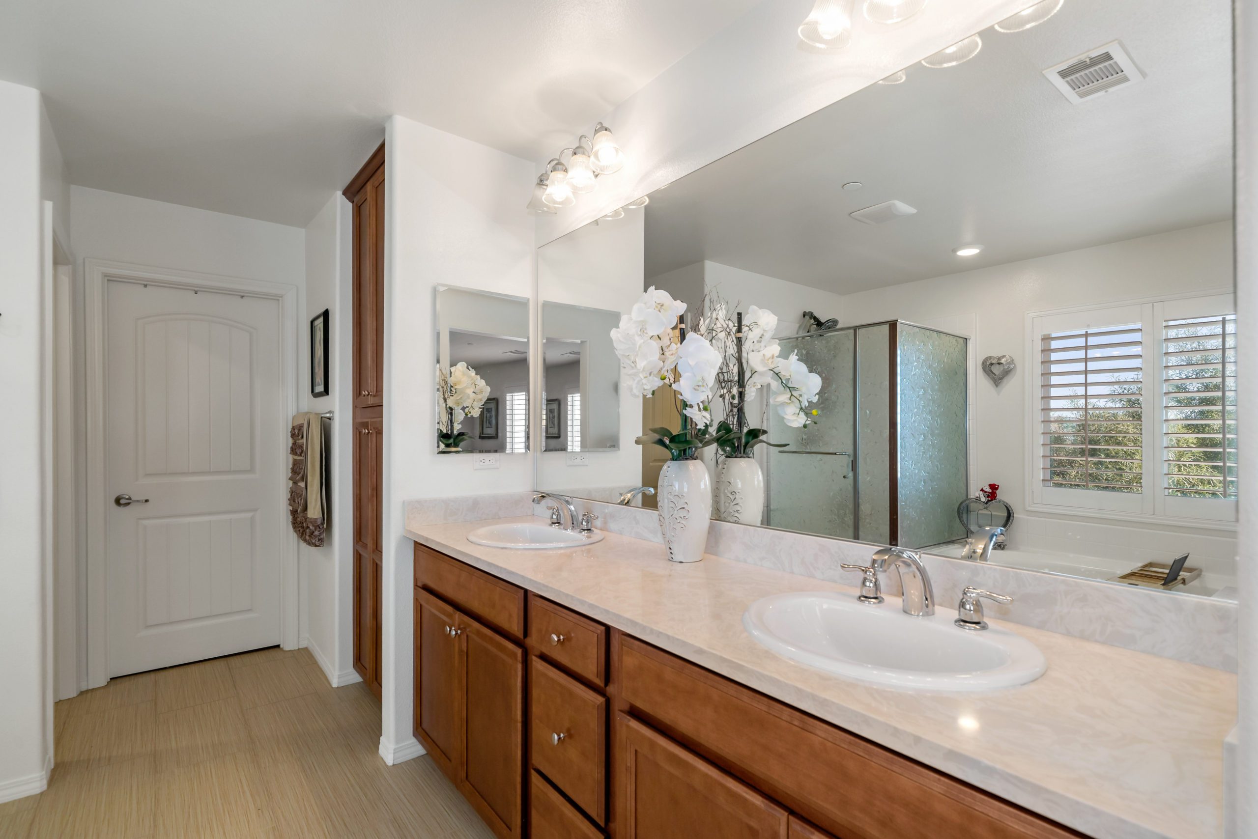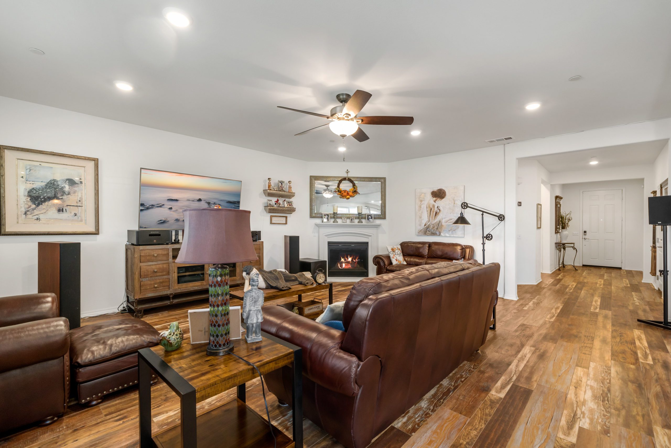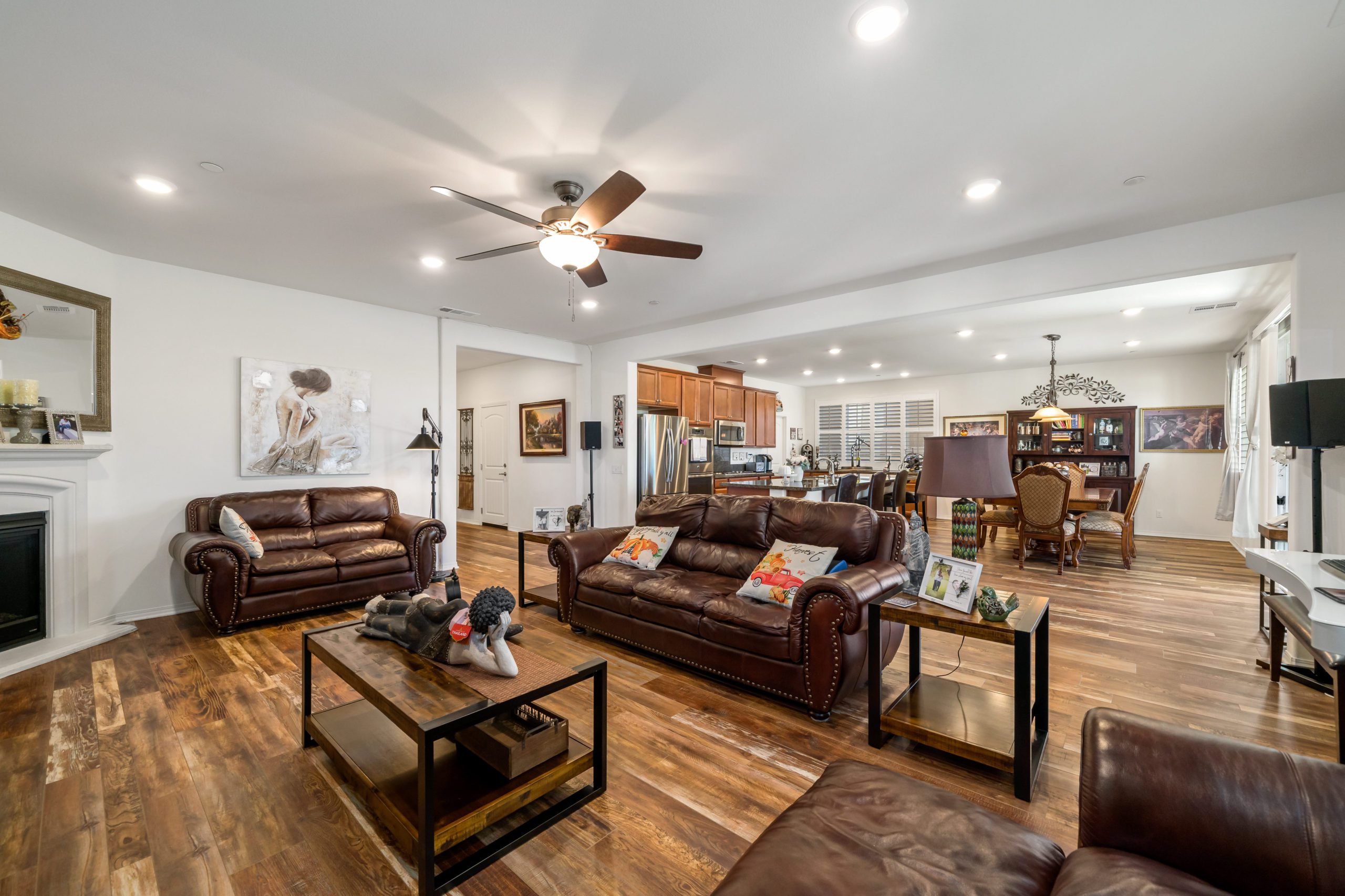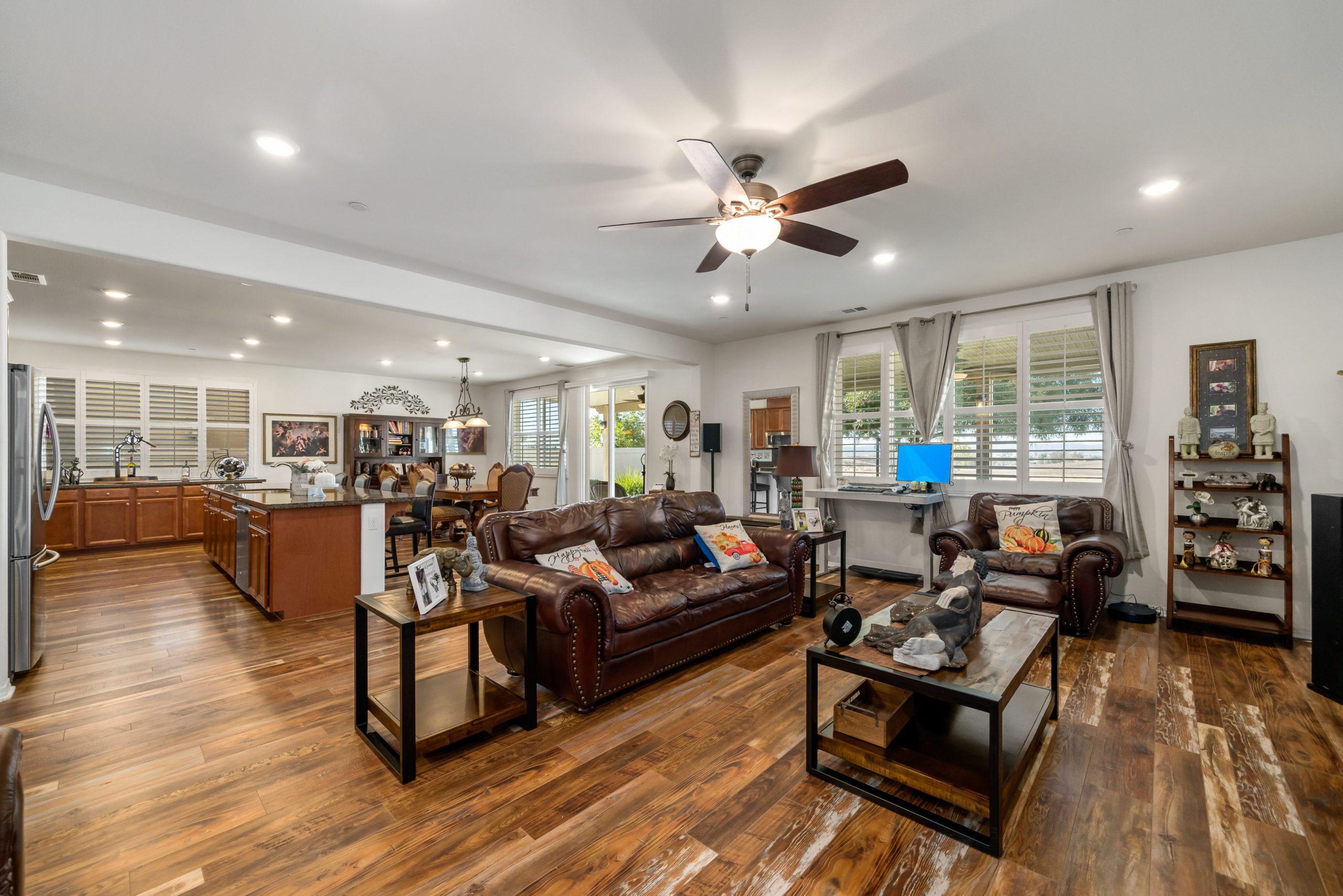 Welcome to the popular master planned community of Rancho Bella Vista. This home is truly over the top from the tremendous upgrades to the spectacular VIEWS from the backyard. From the moment of entry the unique, richly exotic Global Reclaim Worldly Hue flooring throughout will impress even the pickiest of buyers! The open concept kitchen that nicely flows through to the great room is an entertainer’s delight with gorgeous granite counters, side buffet, oversized center island, large walk-in pantry, double ovens and 5-burner stove. The great room features a beautiful corner fireplace. The downstairs is complete with a bedroom and bathroom. The upstairs is a masterfully designed gem fully equipped with loft, laundry room, oversized storage and 3 more bedrooms in addition to the master suite. The master suite includes a roomy walk-in closet, separate tub, shower and dual vanity sinks. Ceiling fans throughout. The very low maintenance backyard comes with Alumawood patio cover, 3 fans, built-in lighting and lovely view glass-ideal for enjoying our spectacular evening sunsets! 15 solar panels. Low taxes and low HOA. Close proximity to Honey Pine Community Park and award winning Temecula schools. Close and convenient to shopping, dining, local wineries and interstates. This is a must see. Call to schedule tour.